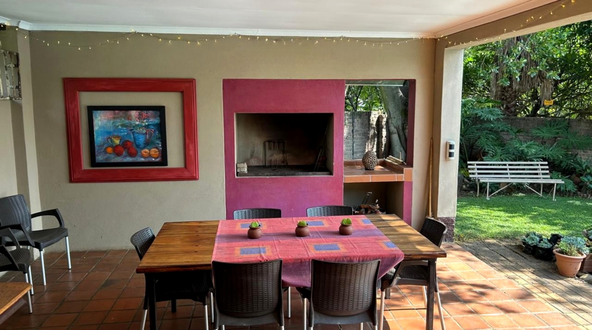 The standout feature? A fantastic entertainment area with a patio, built-in braai, and sparkling pool — ideal for relaxed weekends and hosting guests.