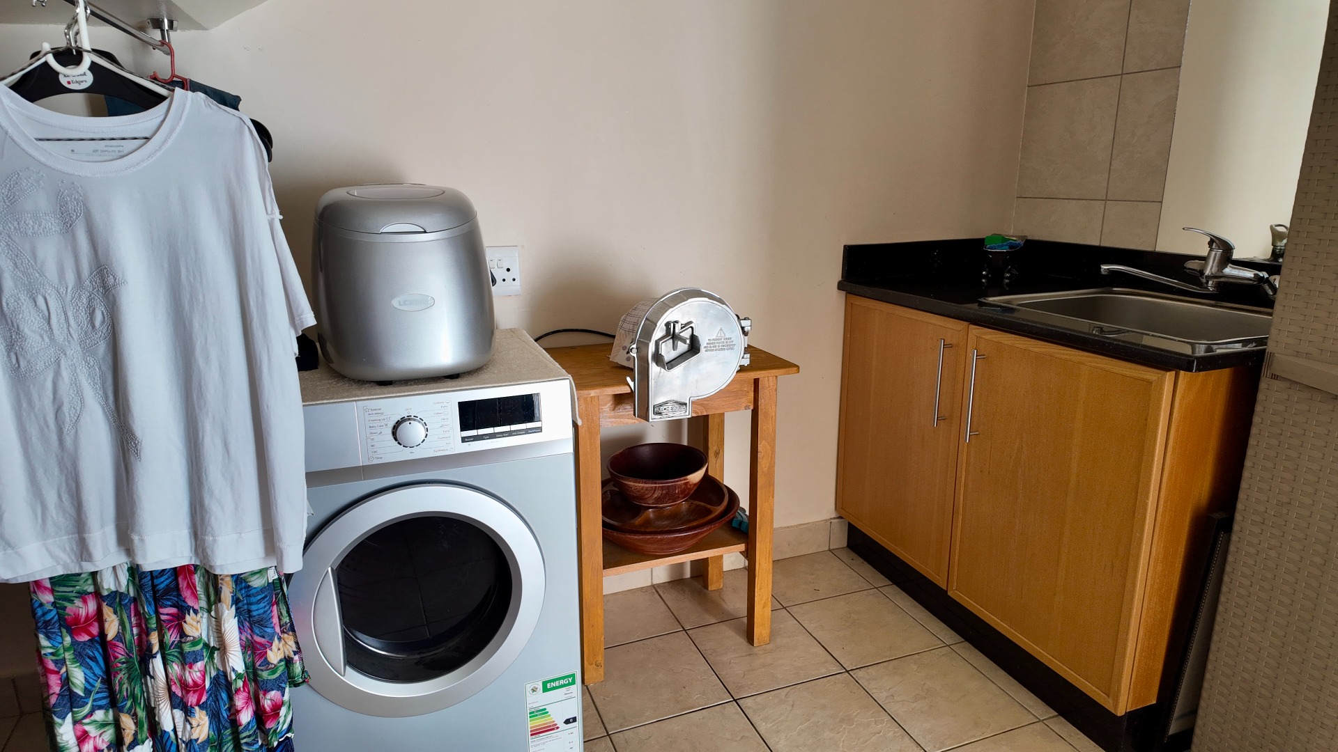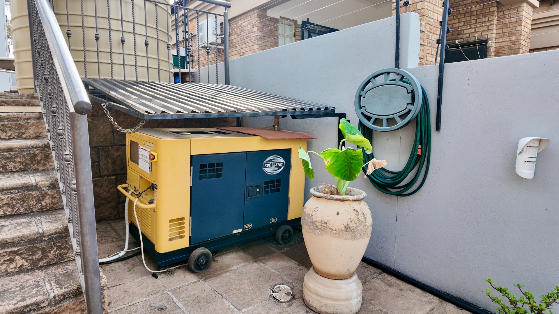 Beams, around property. Harvesting tank, 2 store rooms, generator for added comfort if power is off. Air conditioners.