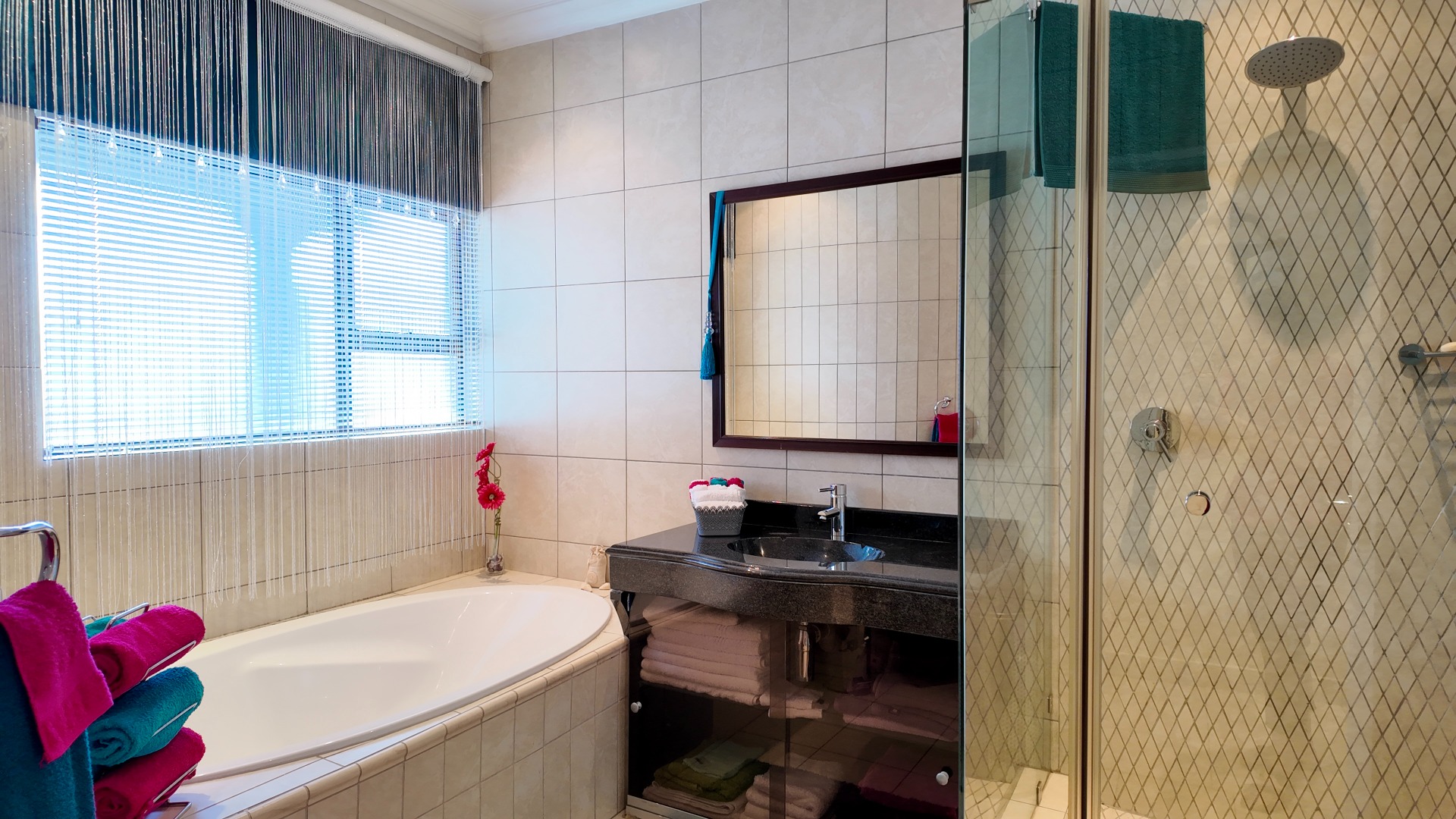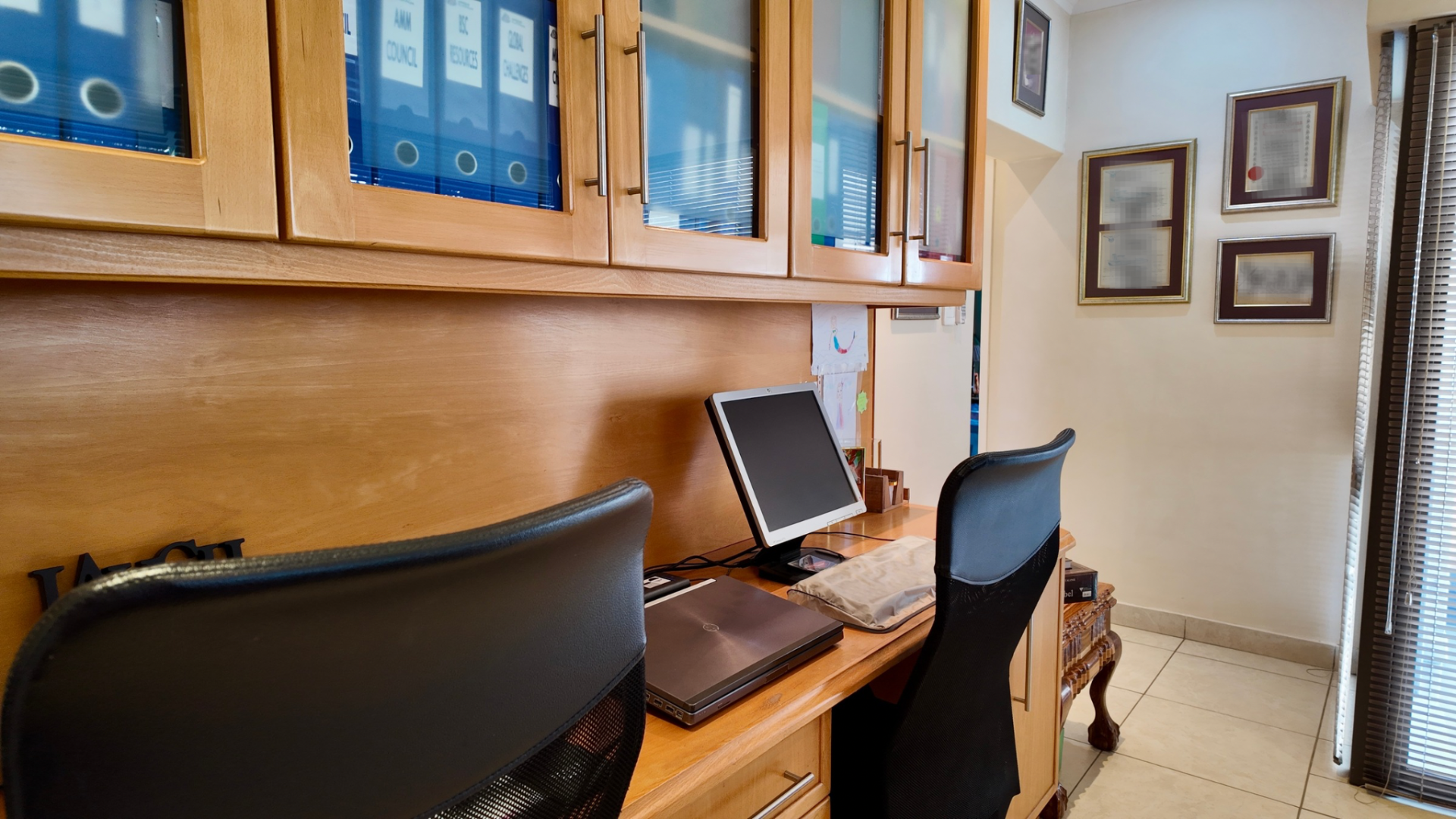 Home office or fifth bedroom with bathroom separately contained, easy to convert to bachelor flat.