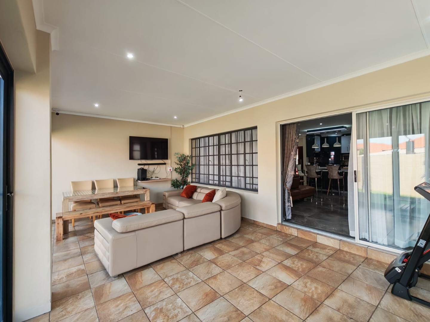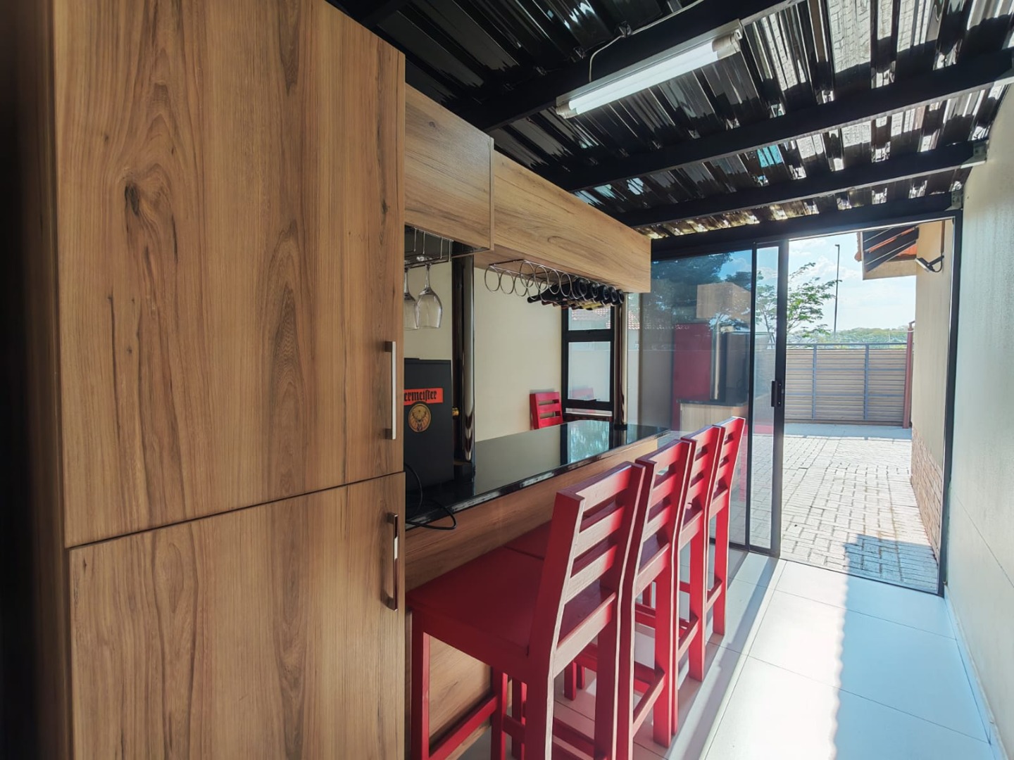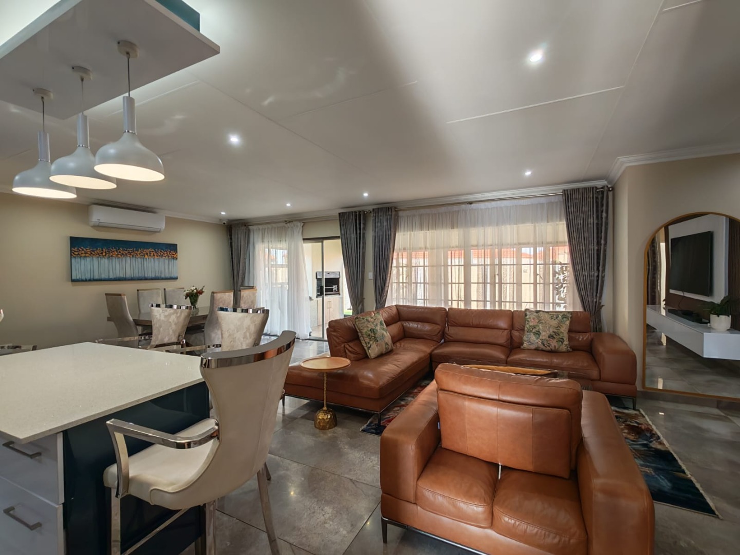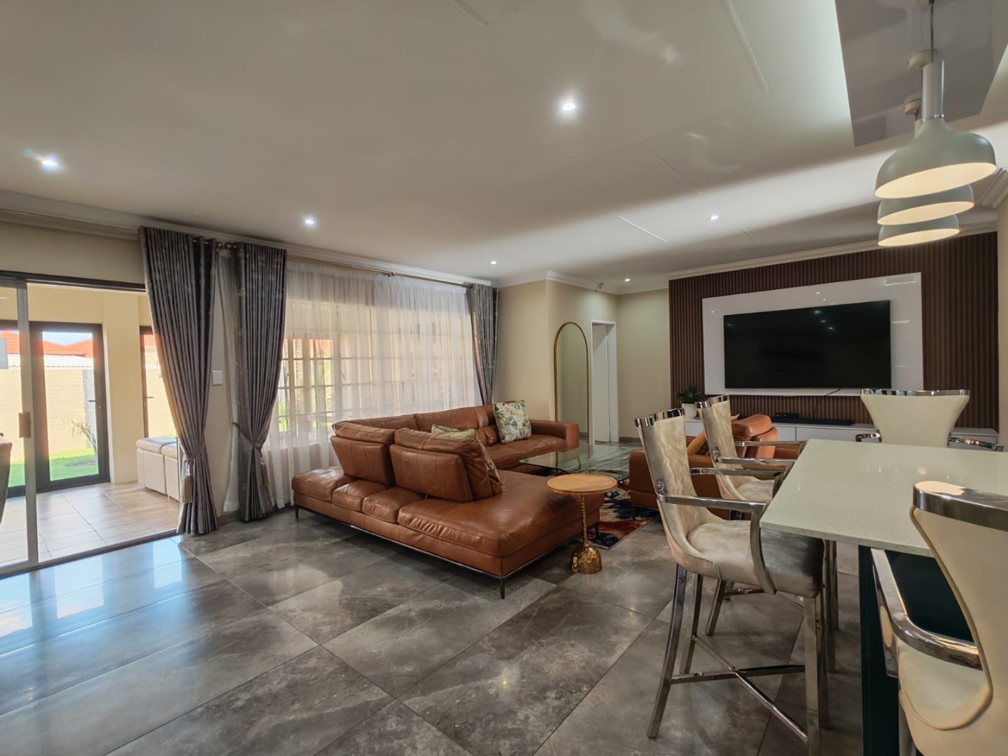Step inside this stylish, modern home and you’re welcomed by a bar area that flows seamlessly into the open-plan living, dining, and kitchen spaces — perfect for both entertaining and everyday family life. The entertainment area with a built-in braai invites you to host gatherings all year round.