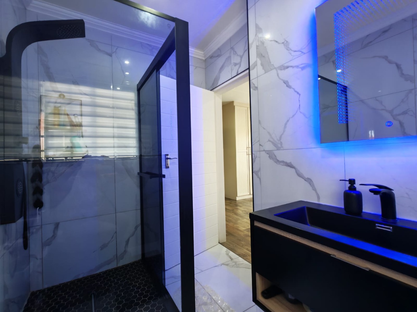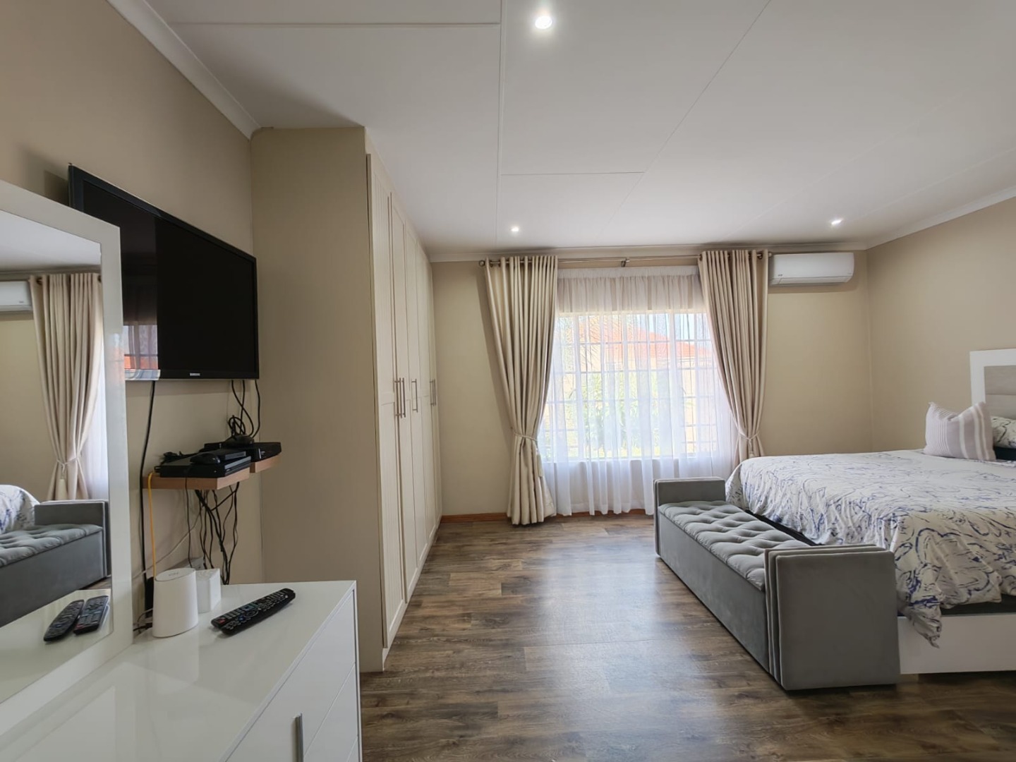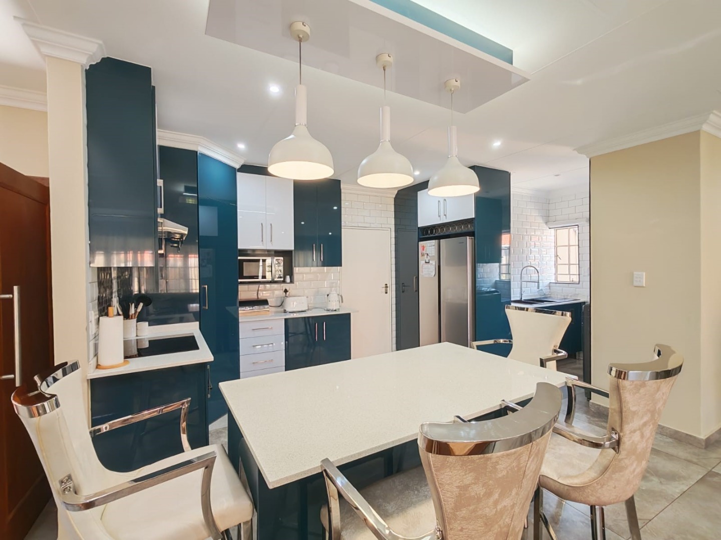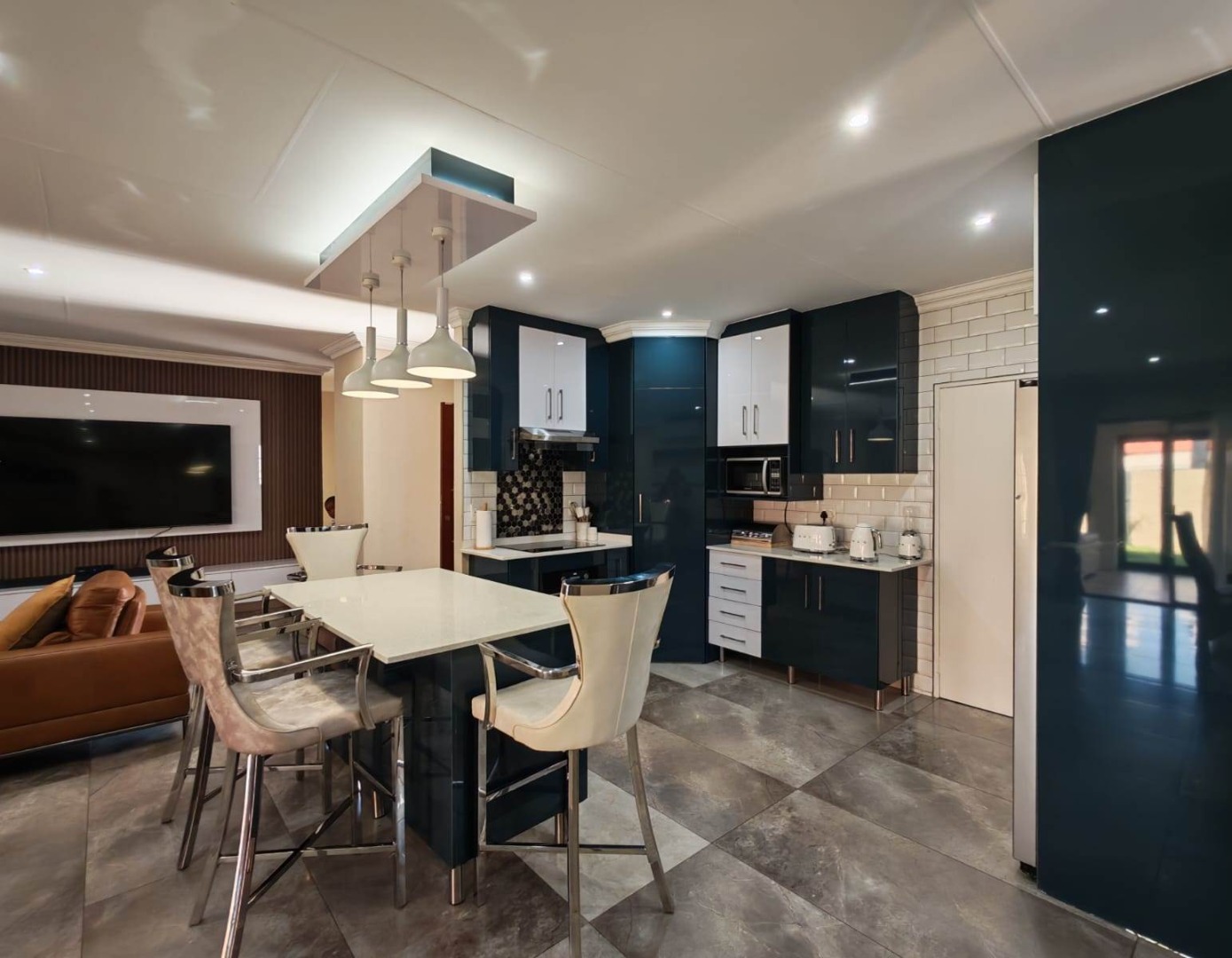 Step inside this stylish, modern home and you’re welcomed by a bar area that flows seamlessly into the open-plan living, dining, and kitchen spaces — perfect for both entertaining and everyday family life. The entertainment area with a built-in braai invites you to host gatherings all year round.
