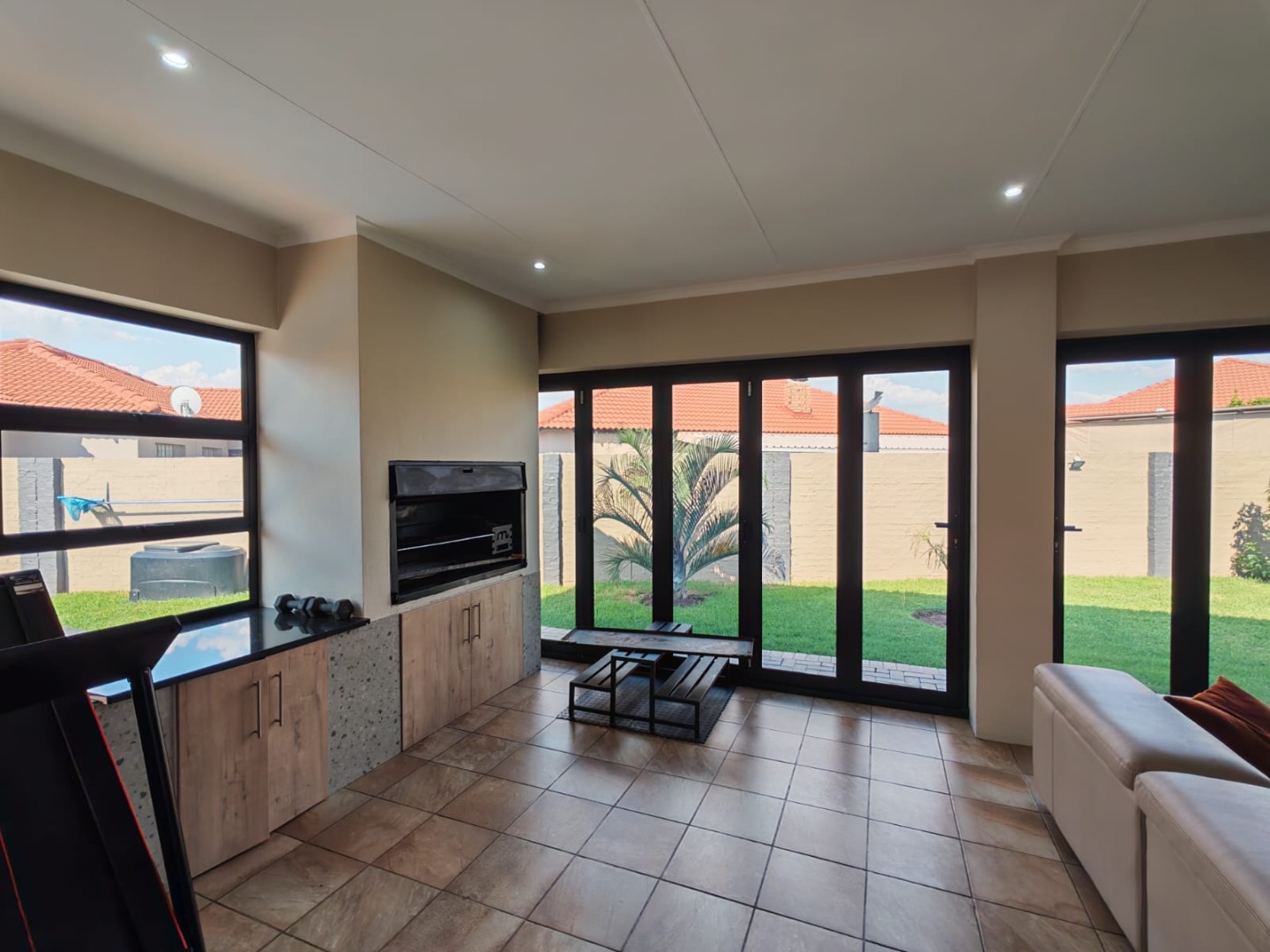 • Entertainment area with built-in braai.