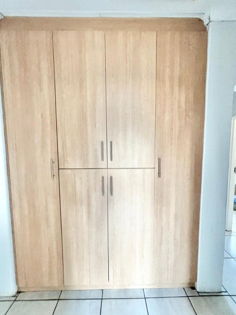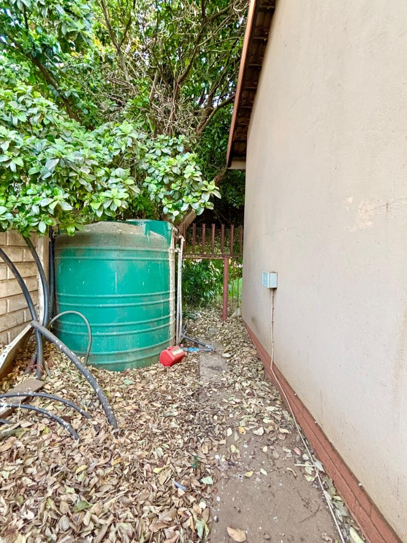 Outdoor living is facilitated by a garden, paving, and a built-in braai, ideal for enjoyment. Four dedicated parking spaces ensure convenience. Security is prioritised with burglar bars, an access gate, and a perimeter fence. Modern amenities include fibre connectivity and water tanks, contributing to convenience and sustainability.