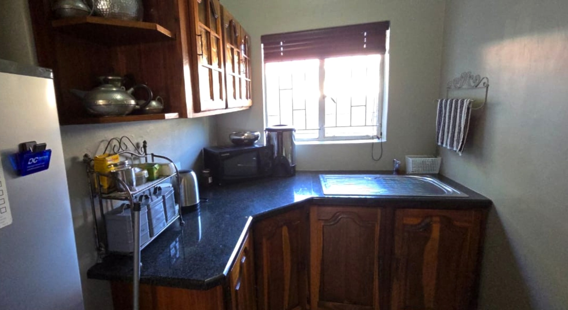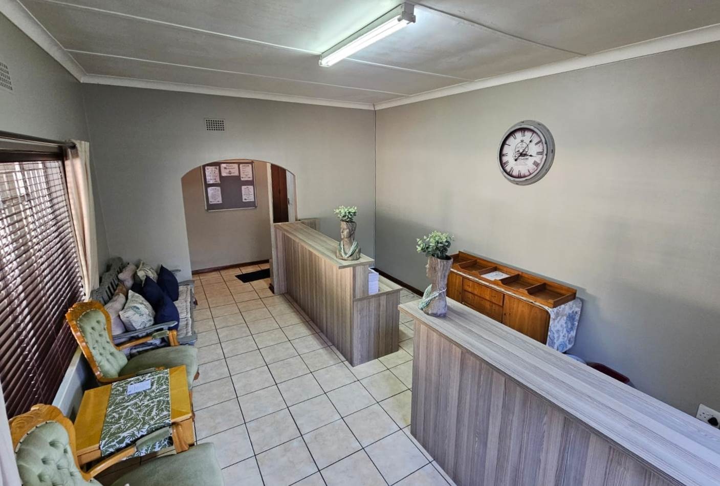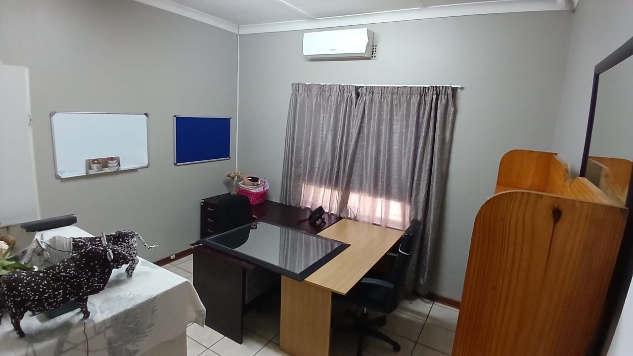 The exterior of the property is neat and functional, with paved areas and a well-maintained garden that creates a professional and welcoming environment. Additional features include a JoJo water tank, alarm system, and access-controlled gate for added security and practicality.