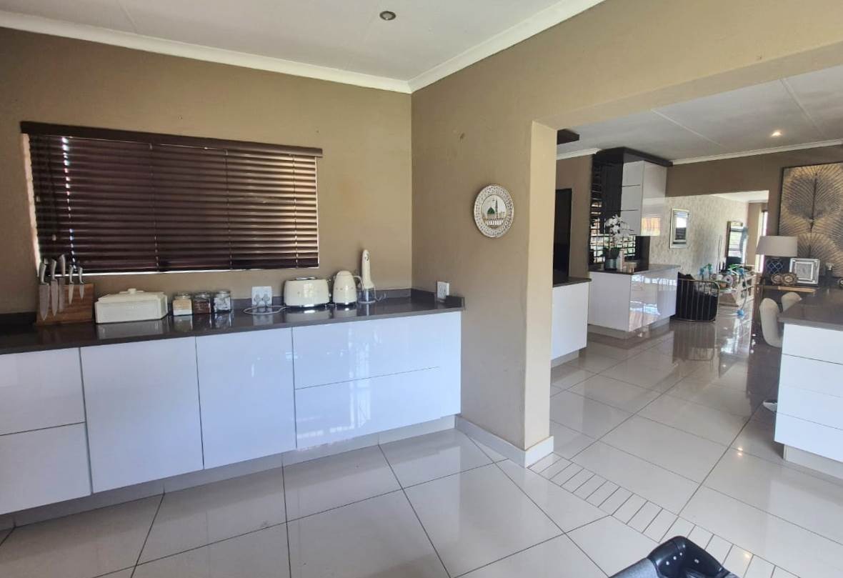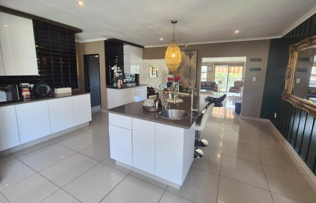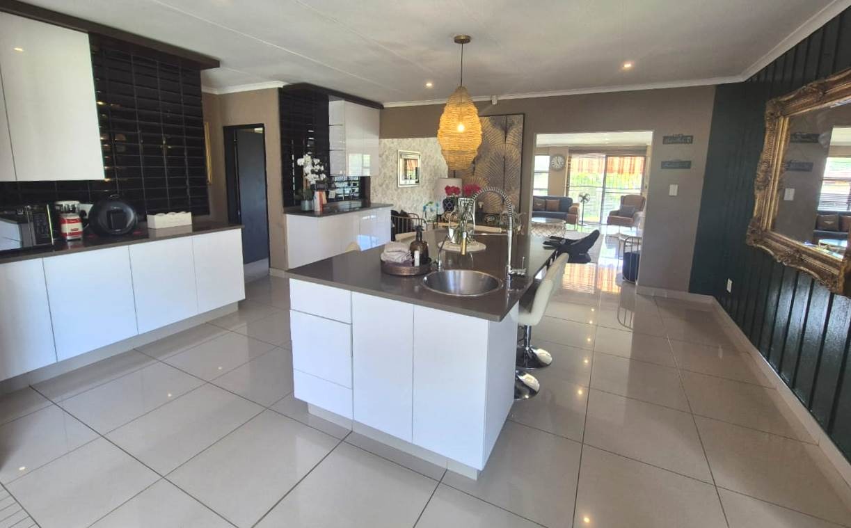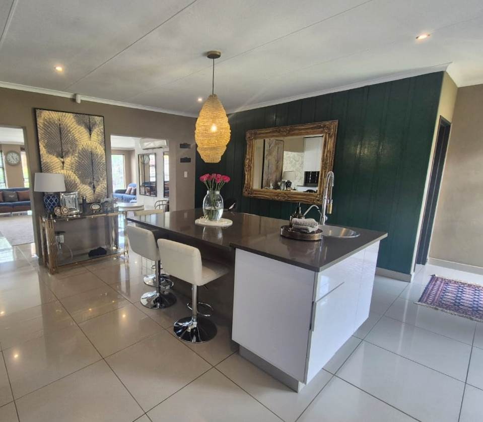 Outdoors, you’ll find a private haven designed for enjoyment and relaxation — a sparkling swimming pool, an inviting patio with a built-in braai, and a cozy boma area ideal for evenings under the stars.