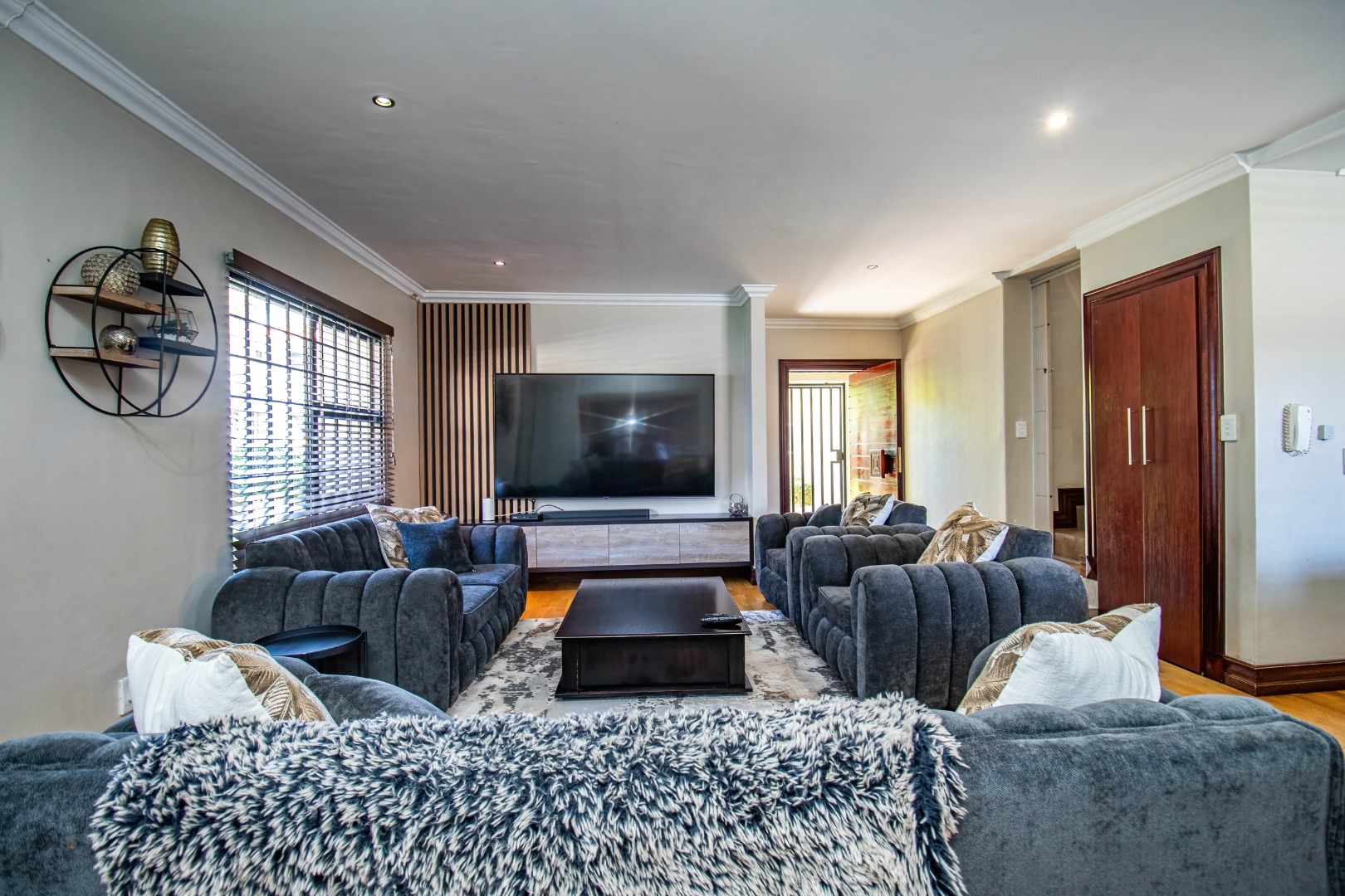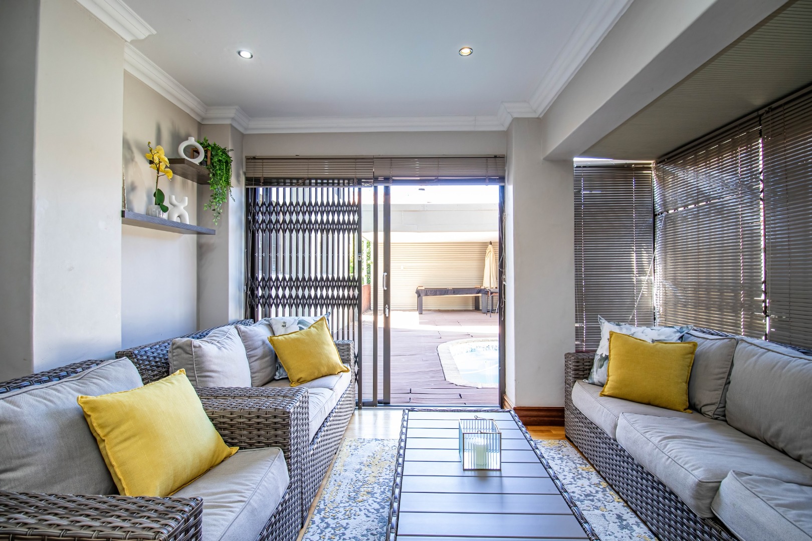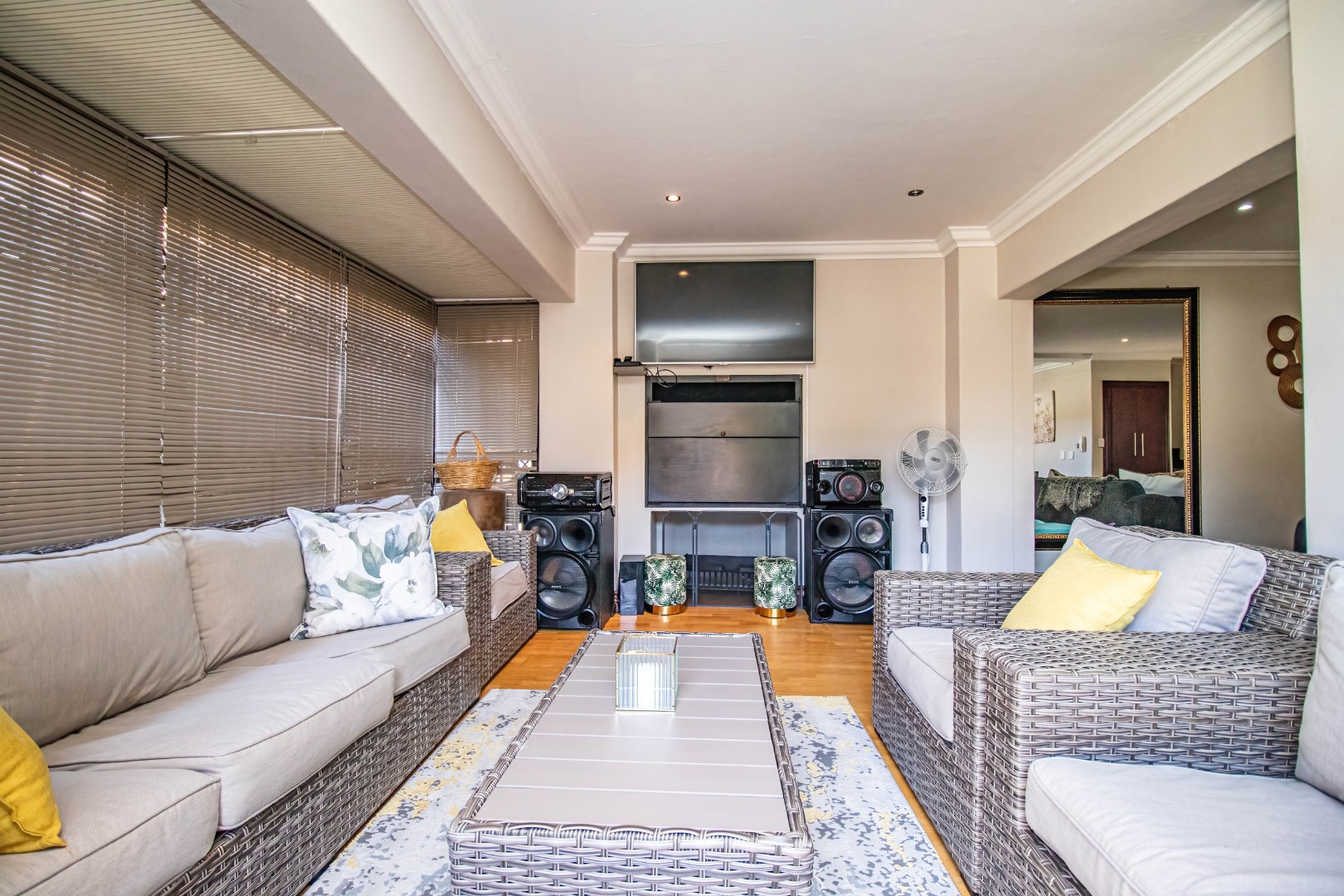 Spacious, modern living areas flow seamlessly onto a patio with a built-in braai overlooking a sparkling pool — perfect for family gatherings and entertaining.