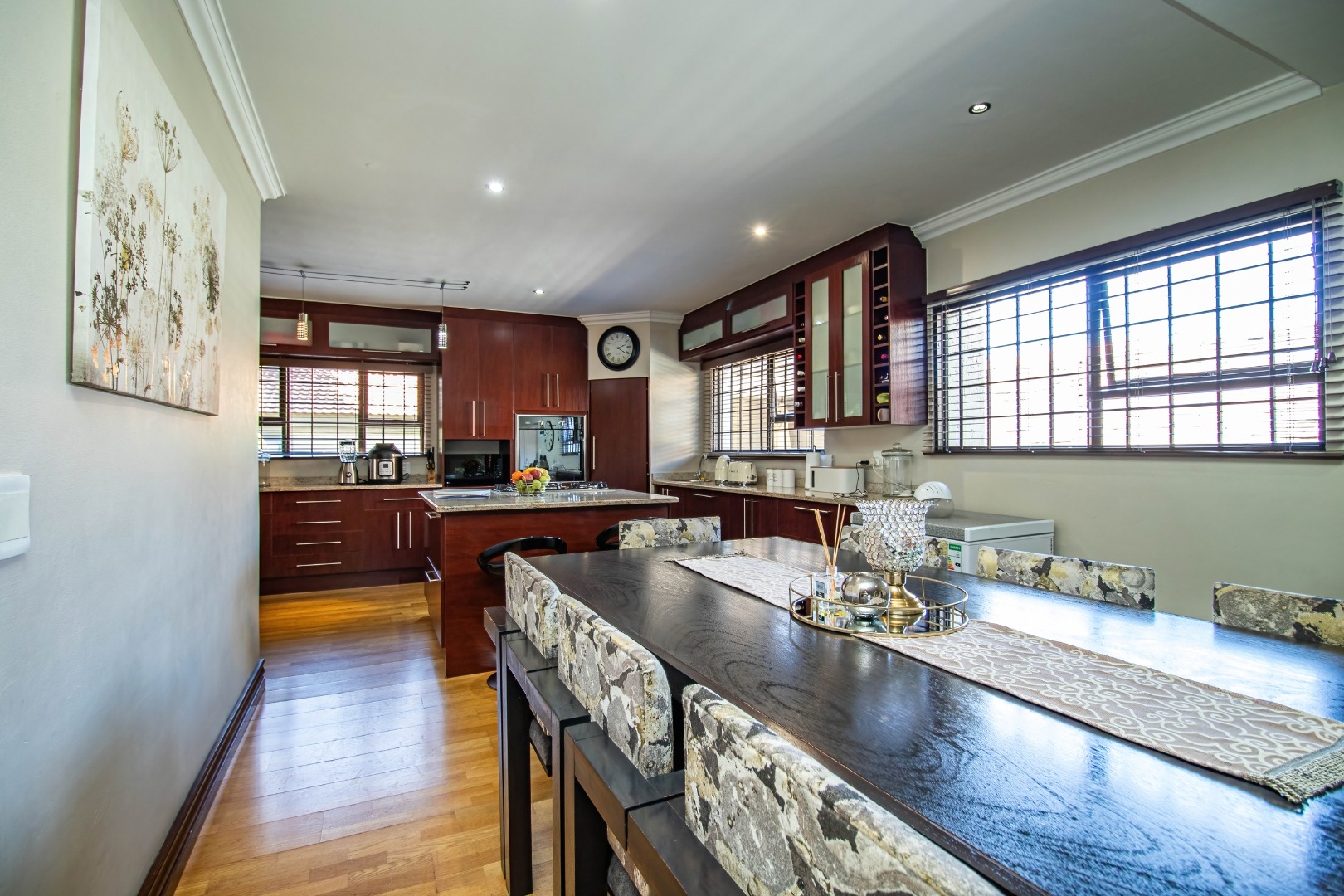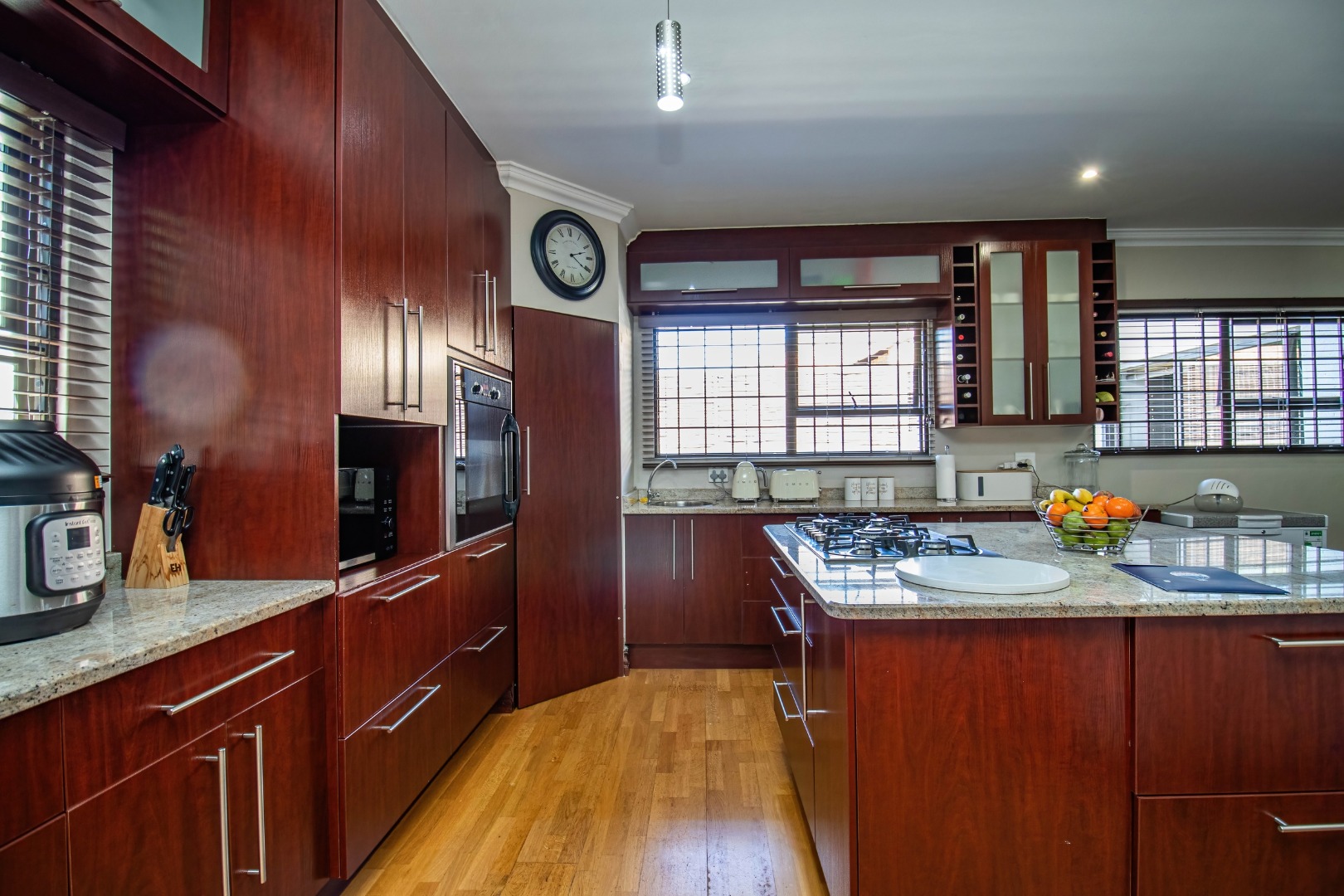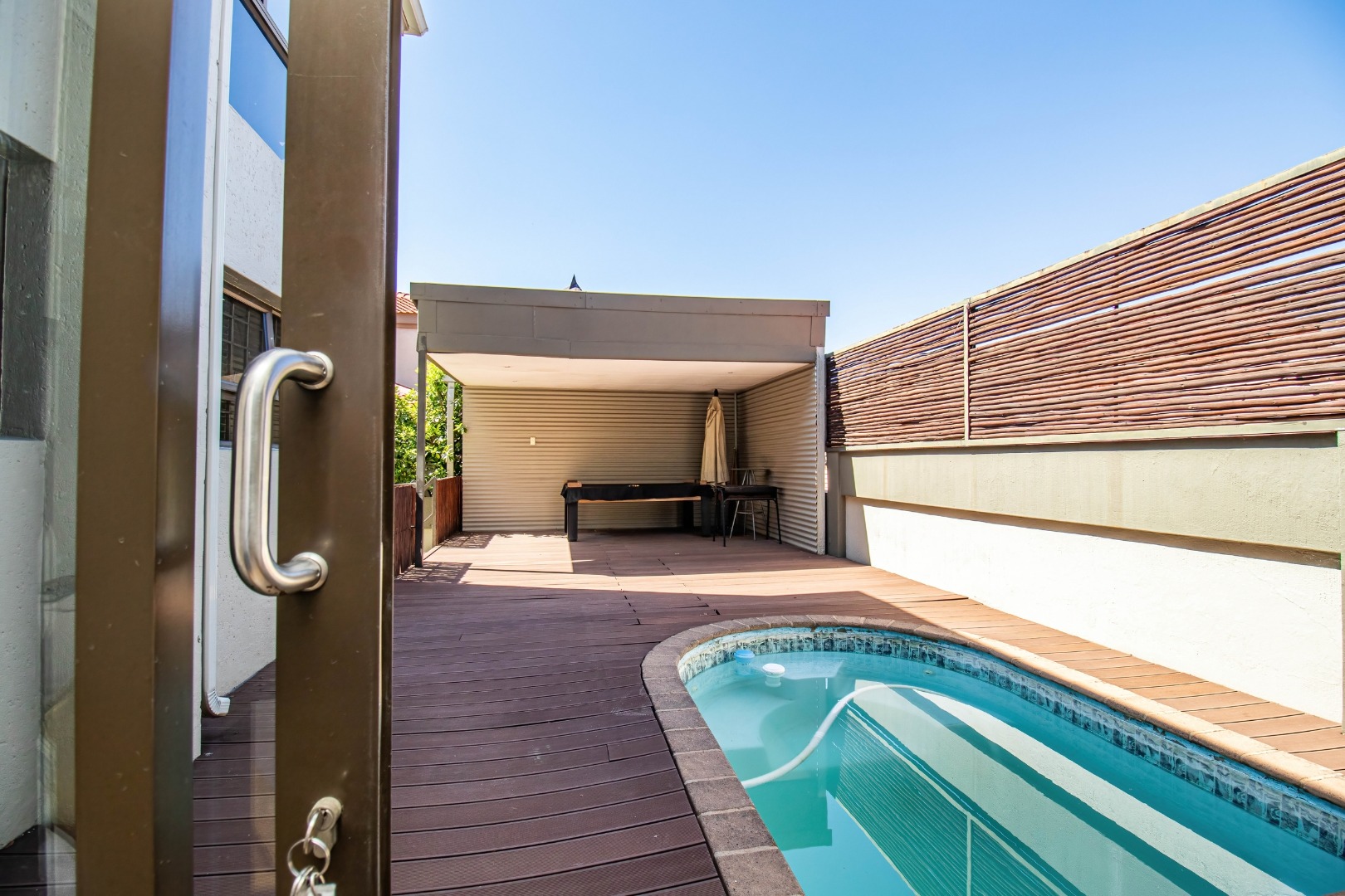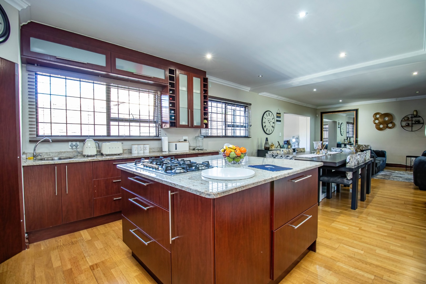 Spacious, modern living areas flow seamlessly onto a patio with a built-in braai overlooking a sparkling pool — perfect for family gatherings and entertaining.