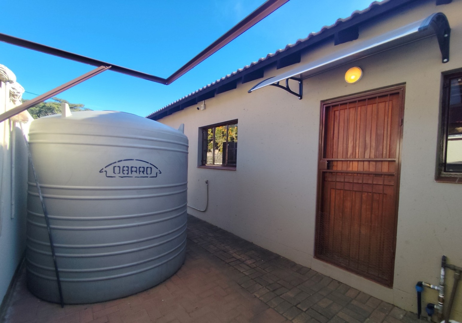 A strong borehole with 3-system filter, a 10,000 litre Jo-Jo tank with pressure pump...