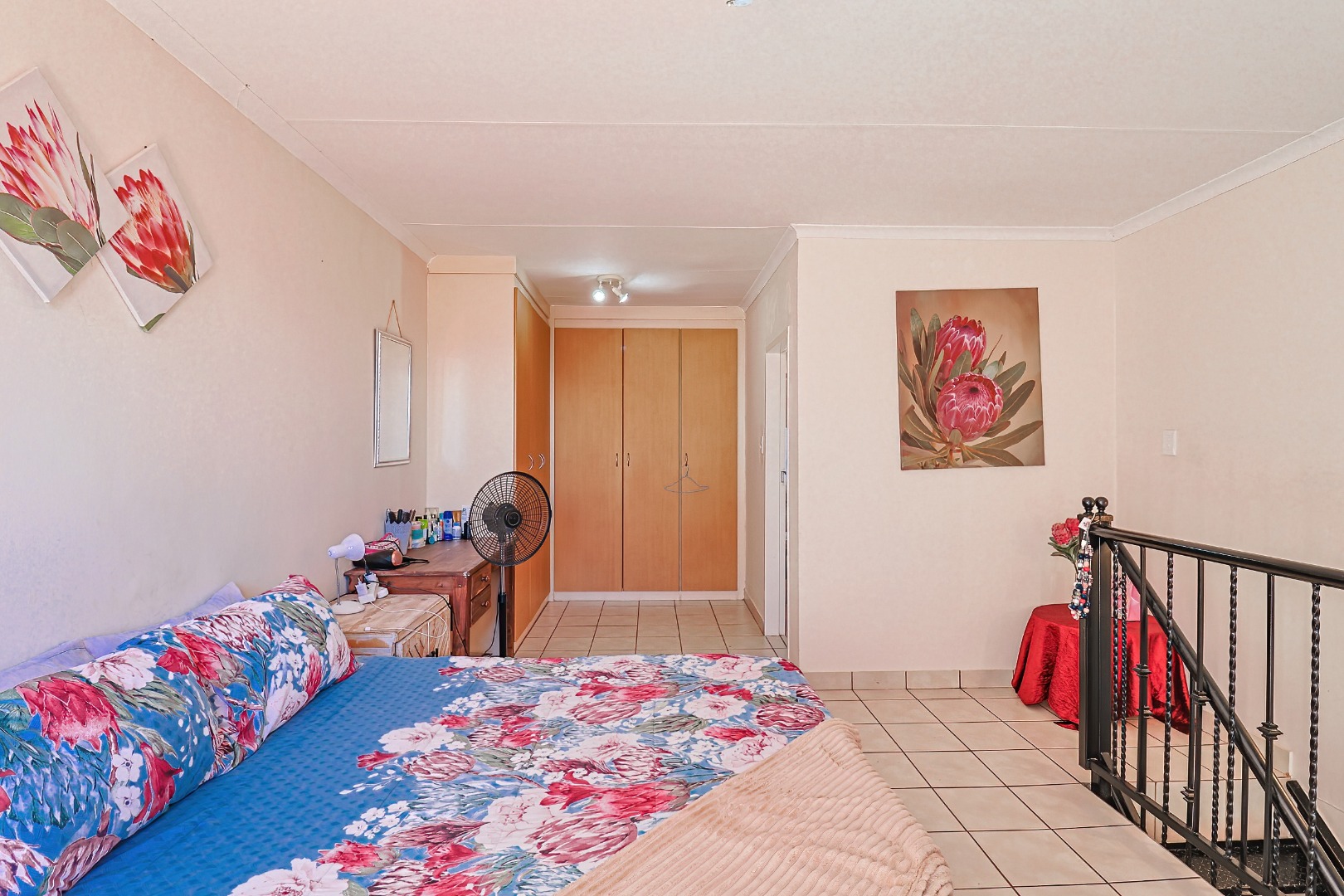 Downstairs, you’ll find comfortable living areas, while upstairs offers a well-sized en-suite bedroom with built-in cupboards, creating a private and relaxed retreat.