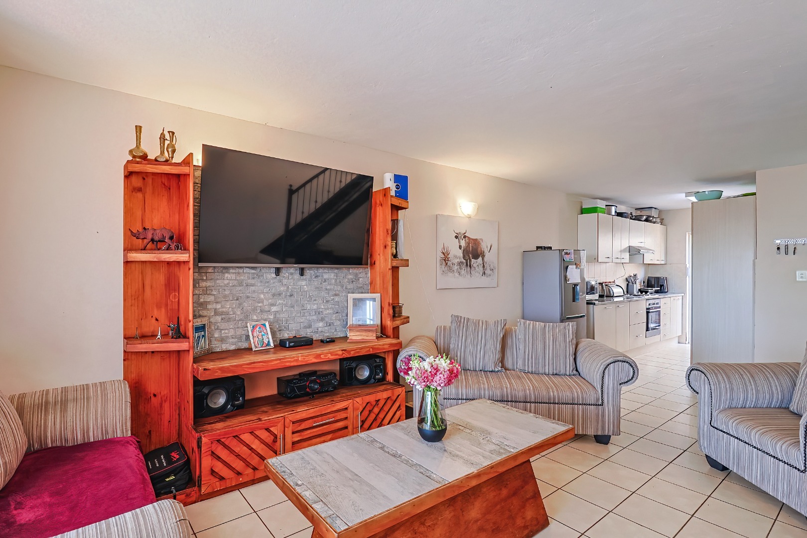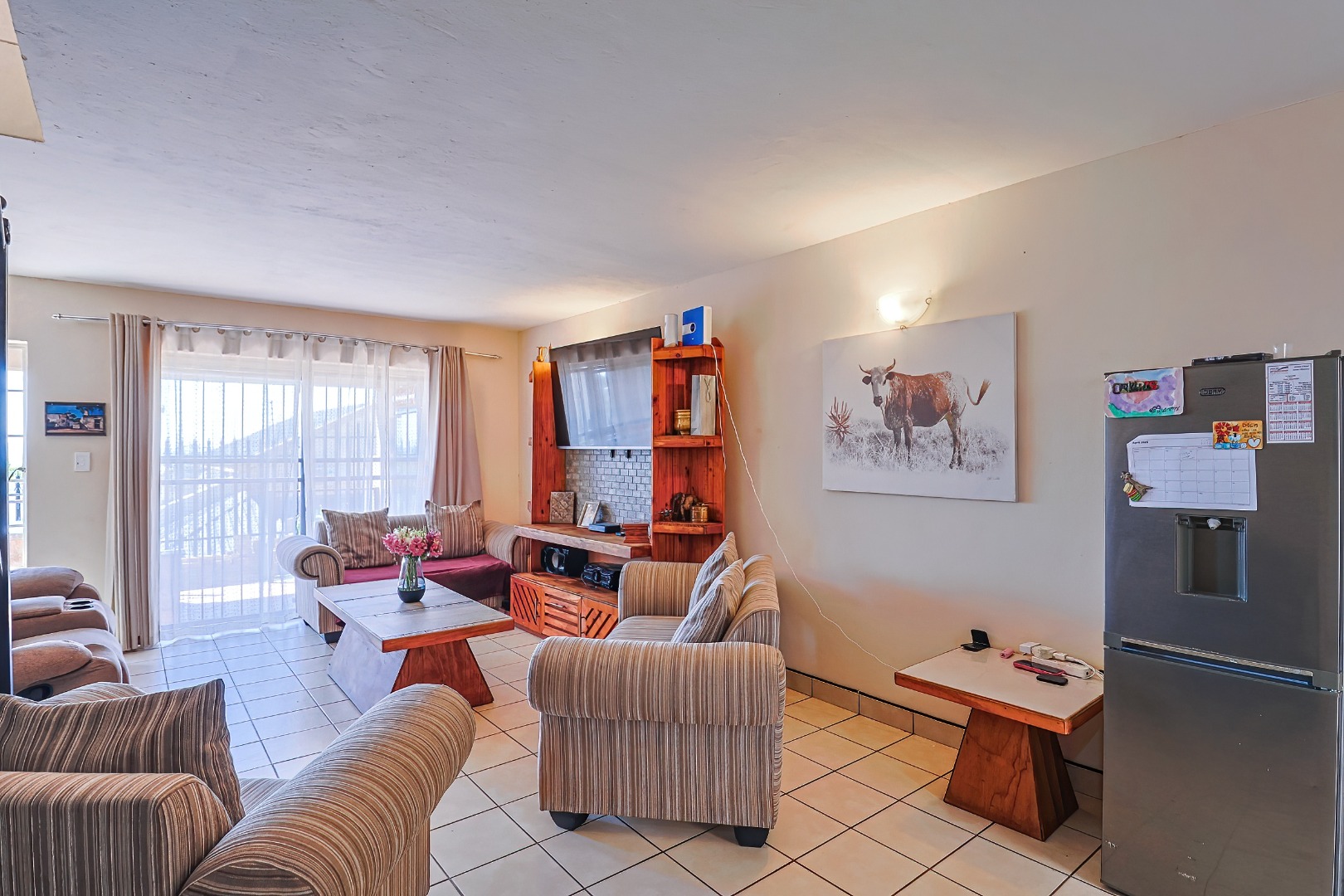 The home welcomes you with a spacious open-plan layout, where the lounge and kitchen flow seamlessly together, creating a warm and functional living area. Large windows and sliding doors allow for beautiful natural light throughout the home.