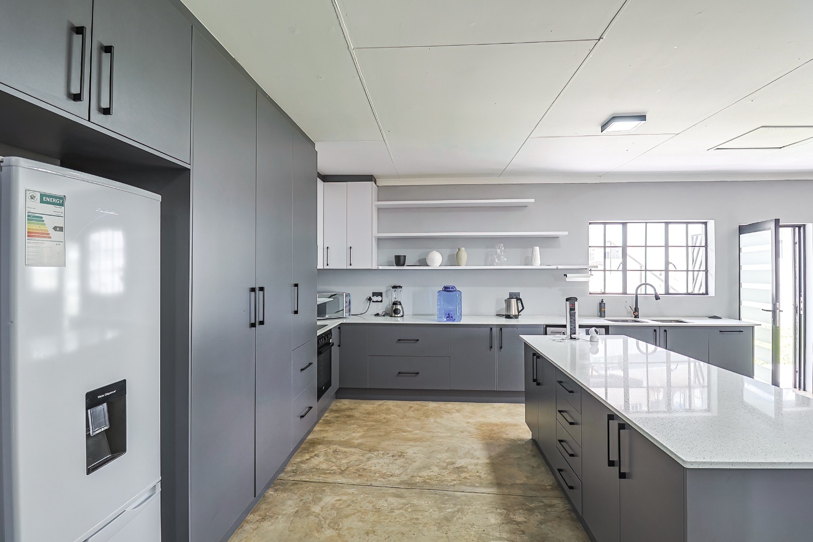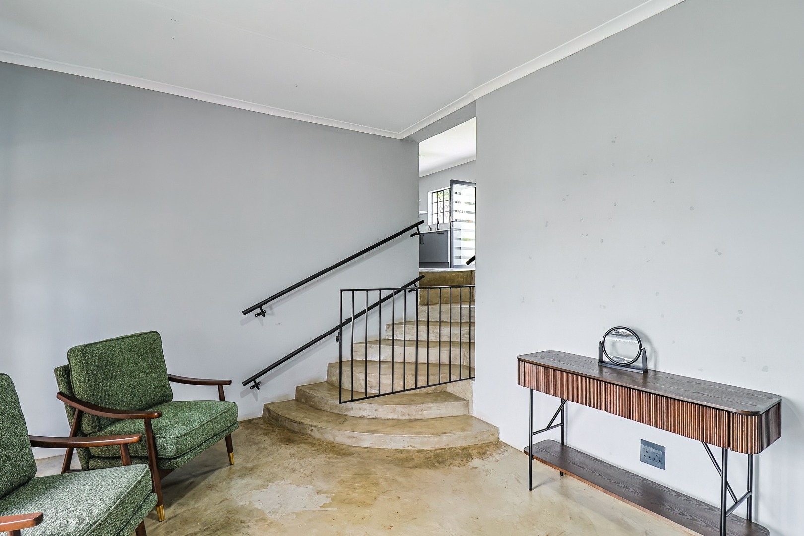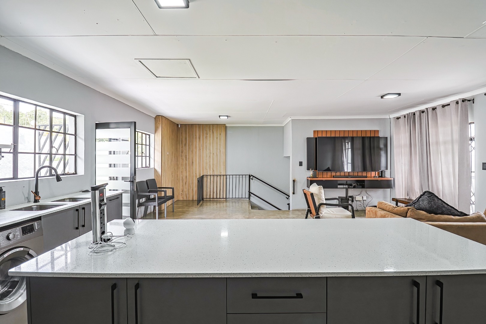 Modern open-plan kitchen flowing into light-filled living areas...