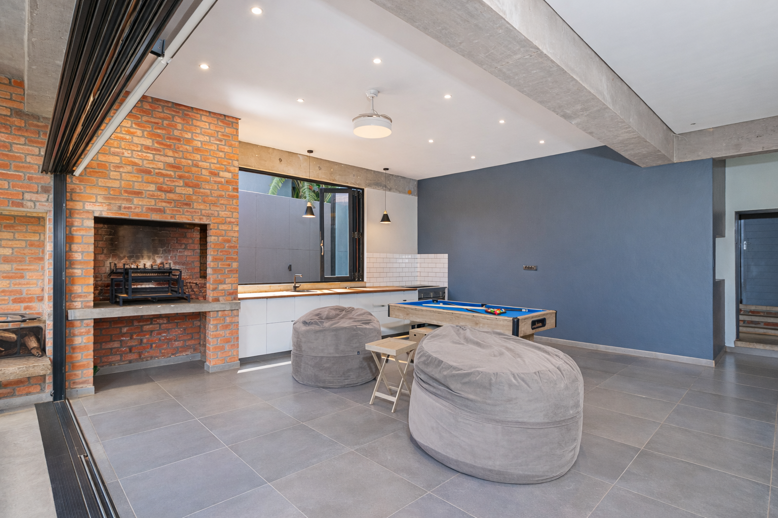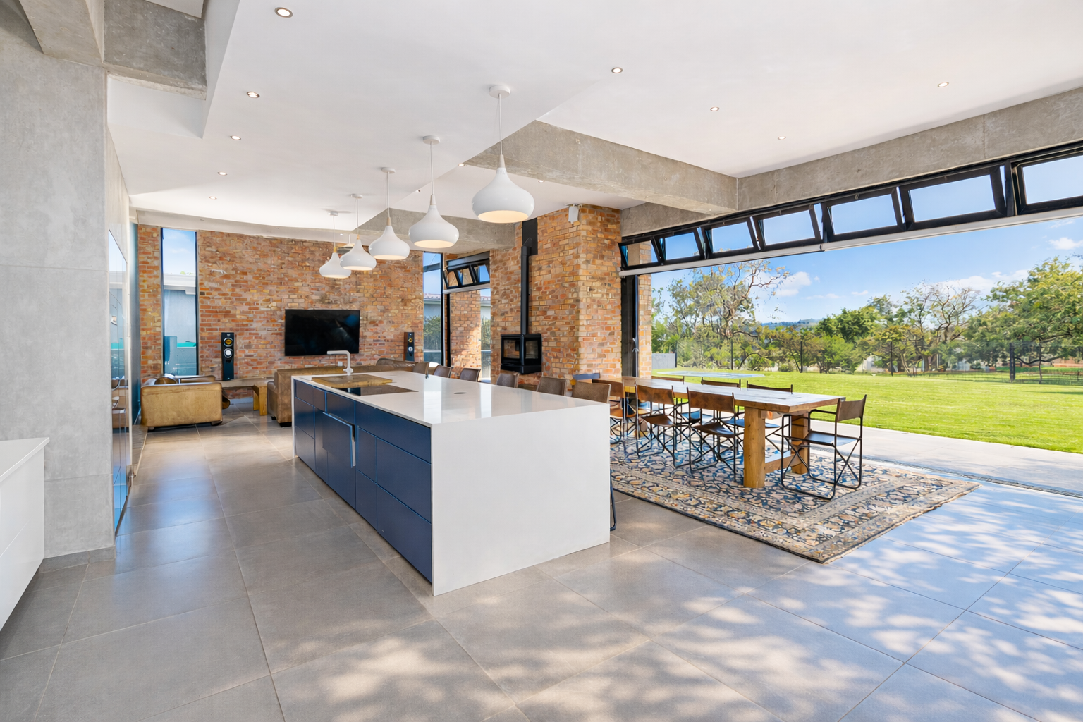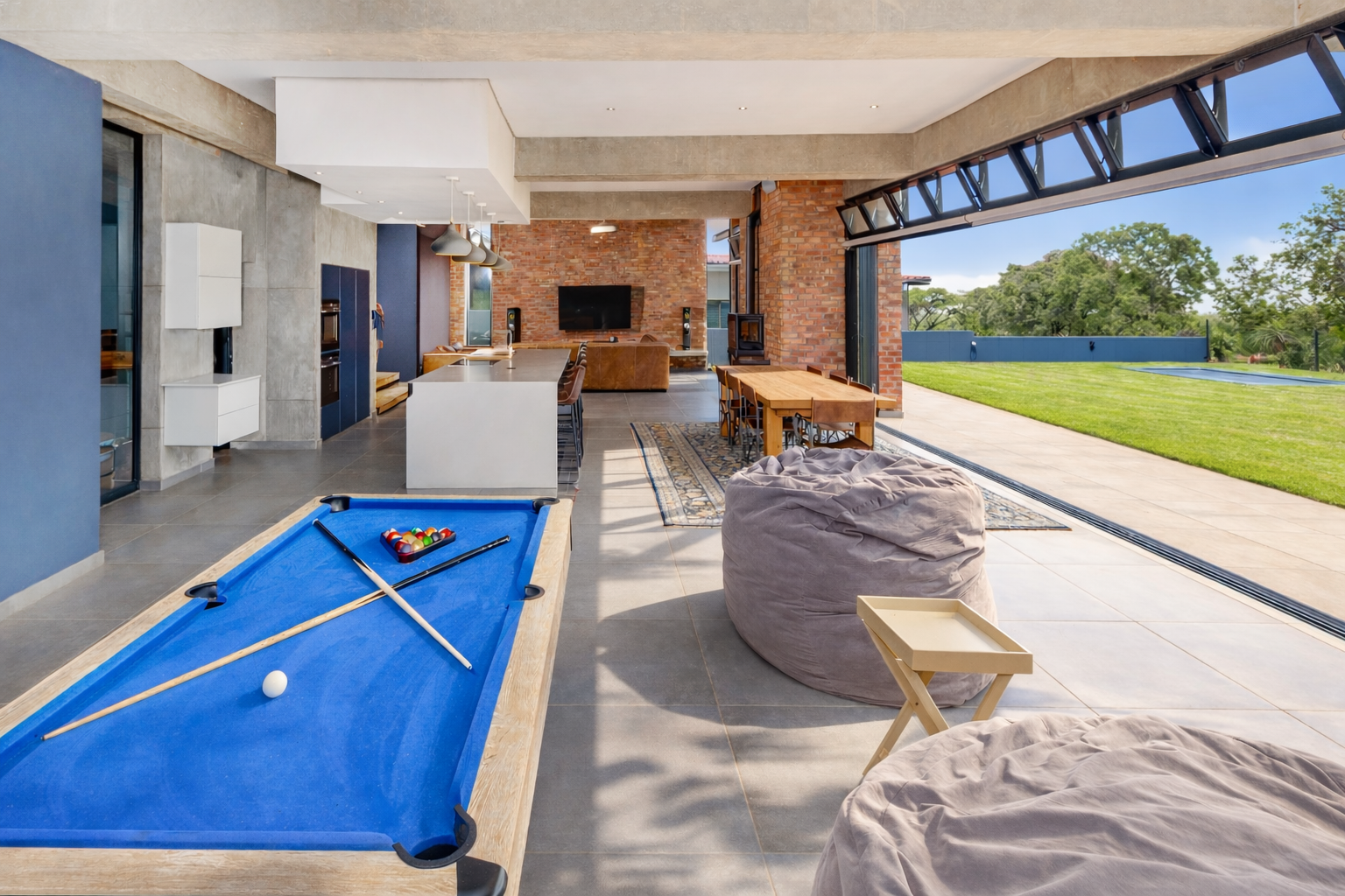 The home offers expansive open-plan living areas, seamlessly flowing into a stylish kitchen and entertainment space. Folding doors open the entire living area onto the pool and braai area, creating an effortless indoor-outdoor lifestyle with serene park views — ideal for both entertaining and everyday family living. ONE LEVEL FROM LAWN TO LOUNGE.