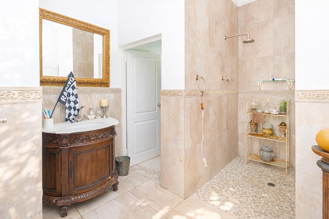 Upstairs you will find four additional bedrooms, three bathrooms, a comfortable pyjama lounge and a balcony where you can relax and enjoy beautiful sunsets.