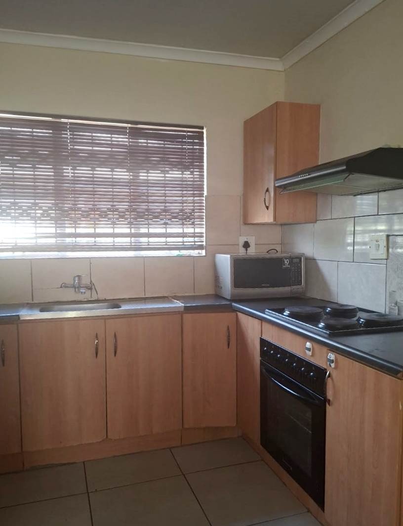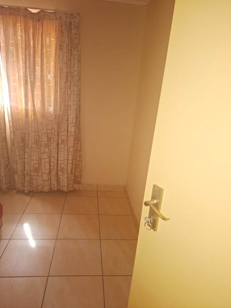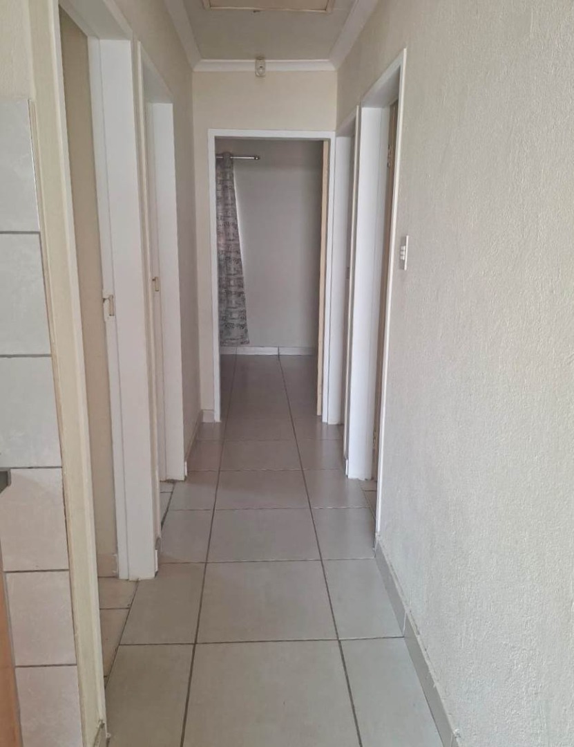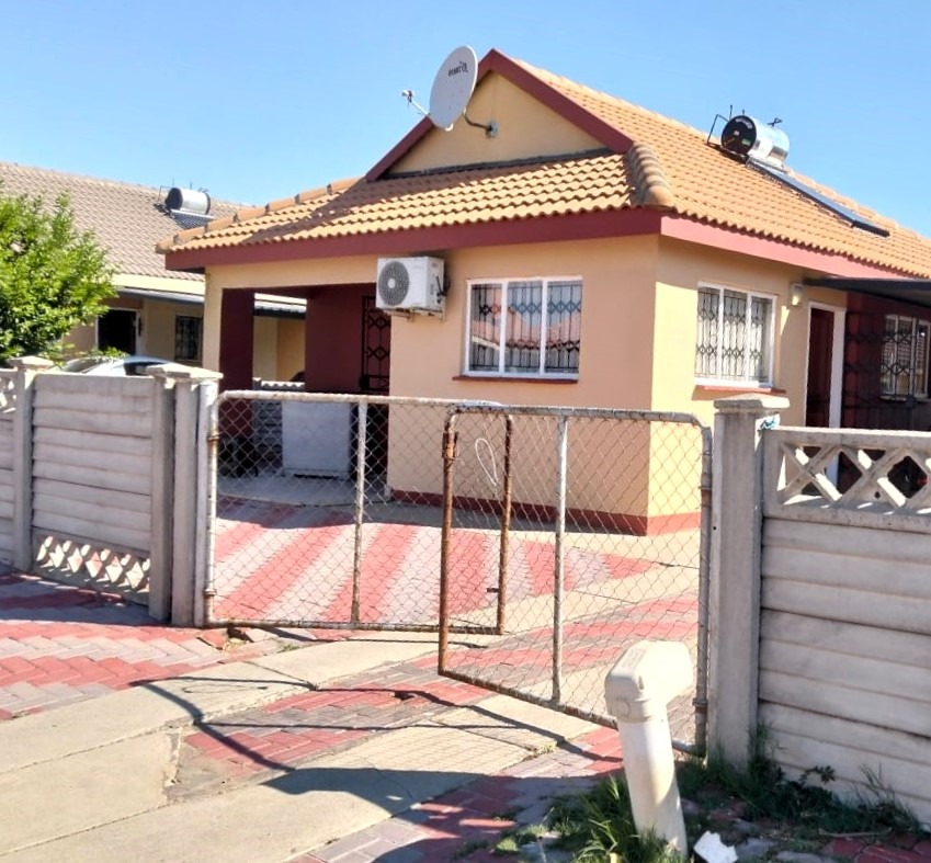 This charming 3-bedroom home is nestled within a secure estate in Freedom Park, Rustenburg. This single-story residence features a welcoming exterior with light painted walls and a tiled roof. Inside, discover a comfortable lounge and a functional kitchen equipped with light wood-look cabinetry, an electric stove and an extractor fan. The property boasts three bedrooms, including one with practical built-in wooden wardrobes and a well-appointed bathroom plus a separate guest toilet. Enjoy energy efficiency with a solar geyser and climate control from the air conditioning. The fully paved outdoor area offers low-maintenance living and ample parking for five vehicles, complemented by security bars and gated access.