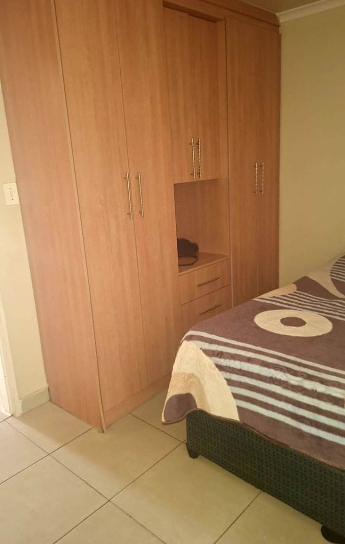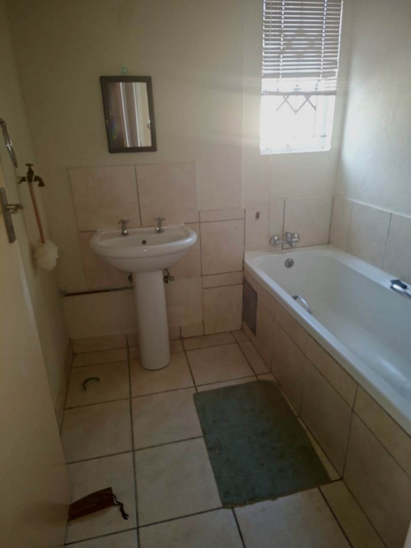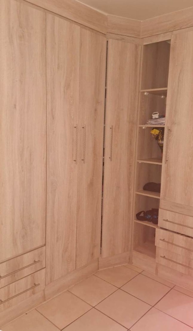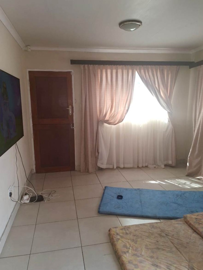 This charming 3-bedroom home is nestled within a secure estate in Freedom Park, Rustenburg. This single-story residence features a welcoming exterior with light painted walls and a tiled roof. Inside, discover a comfortable lounge and a functional kitchen equipped with light wood-look cabinetry, an electric stove and an extractor fan. The property boasts three bedrooms, including one with practical built-in wooden wardrobes and a well-appointed bathroom plus a separate guest toilet. Enjoy energy efficiency with a solar geyser and climate control from the air conditioning. The fully paved outdoor area offers low-maintenance living and ample parking for five vehicles, complemented by security bars and gated access.