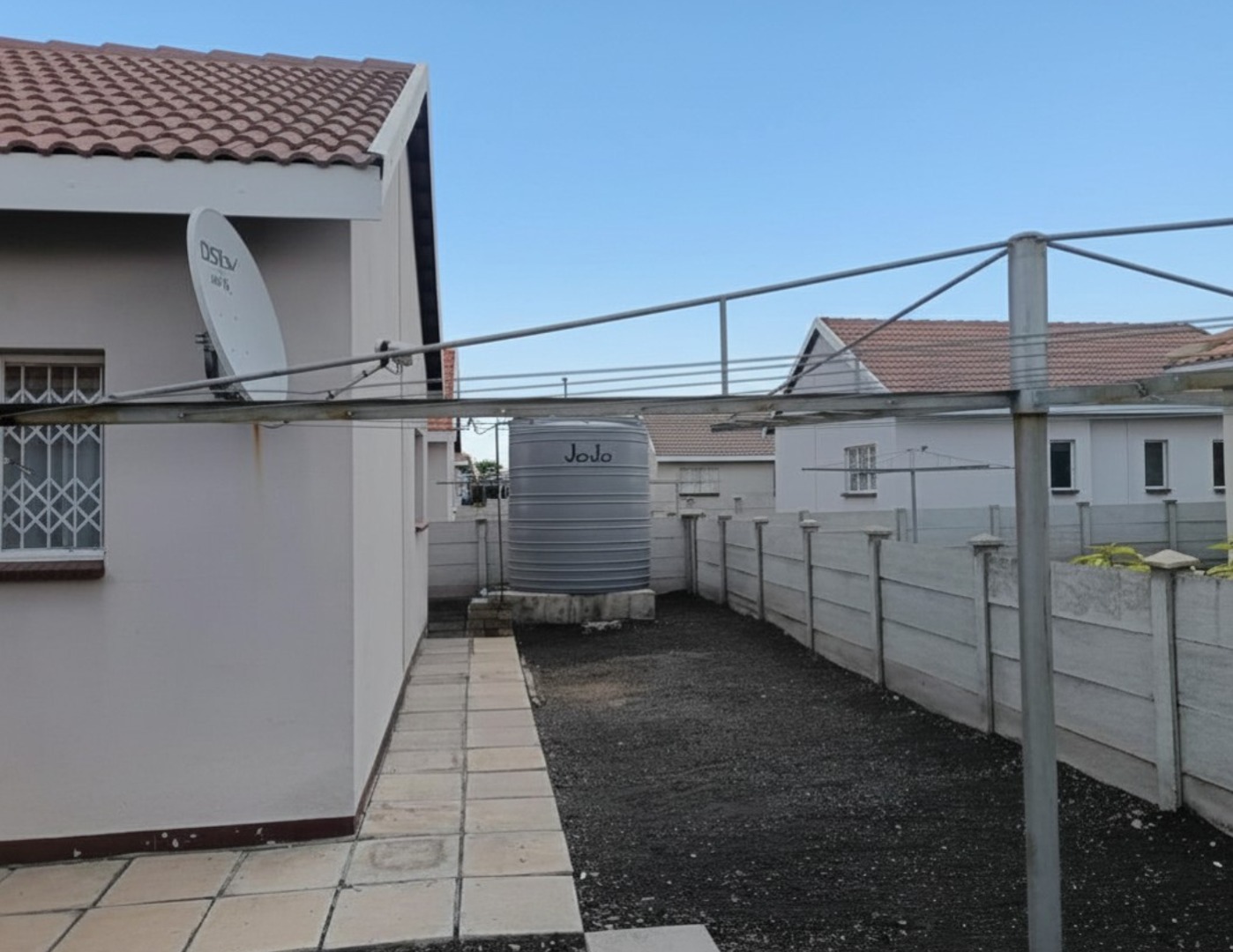 The 269m² yard includes a 5,250-liter JoJo tank, ensuring a reliable water supply.