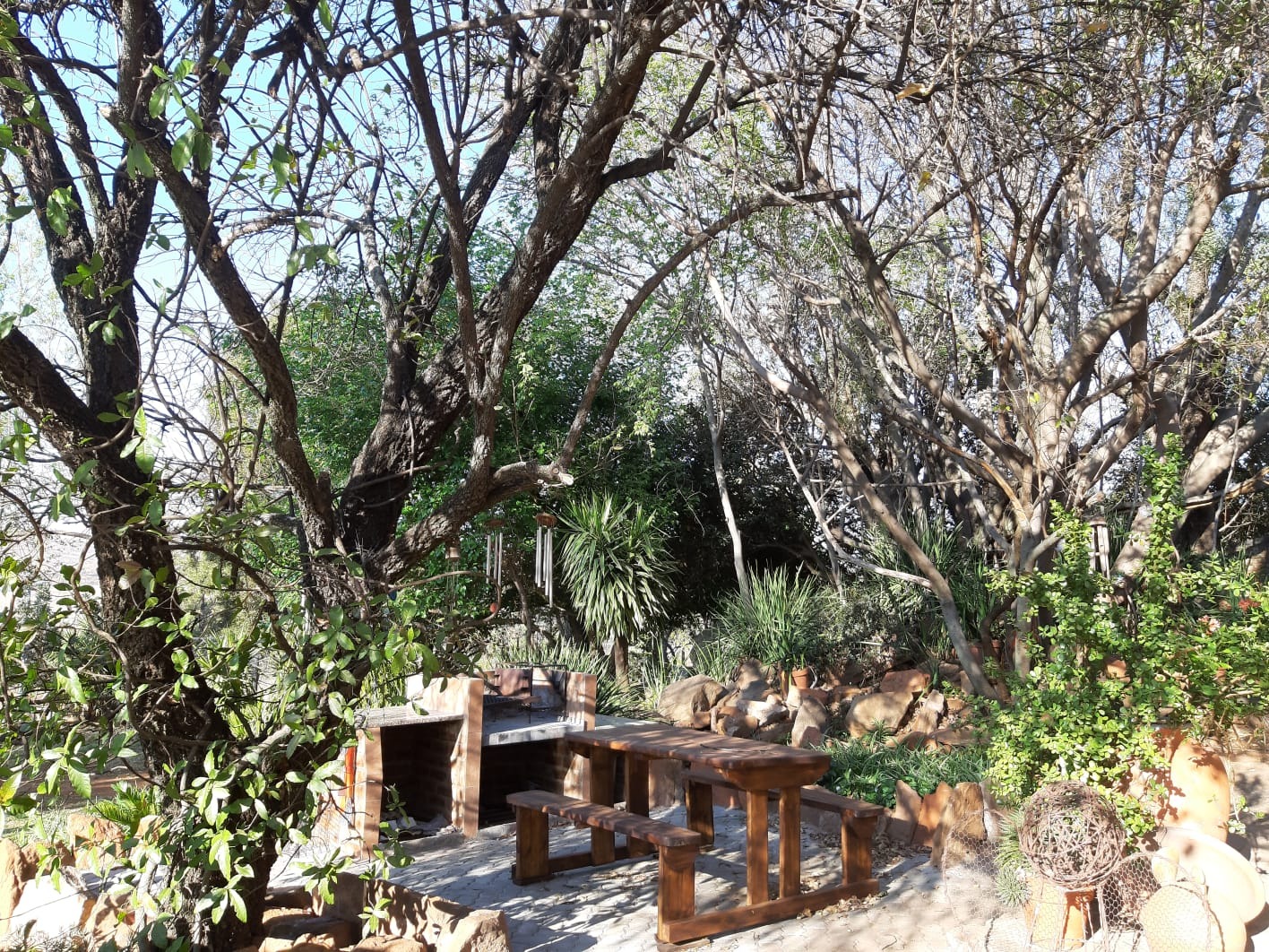 5 Furnished guest rooms, each with it's own kitchenette and bathroom nestles under huge shady trees.