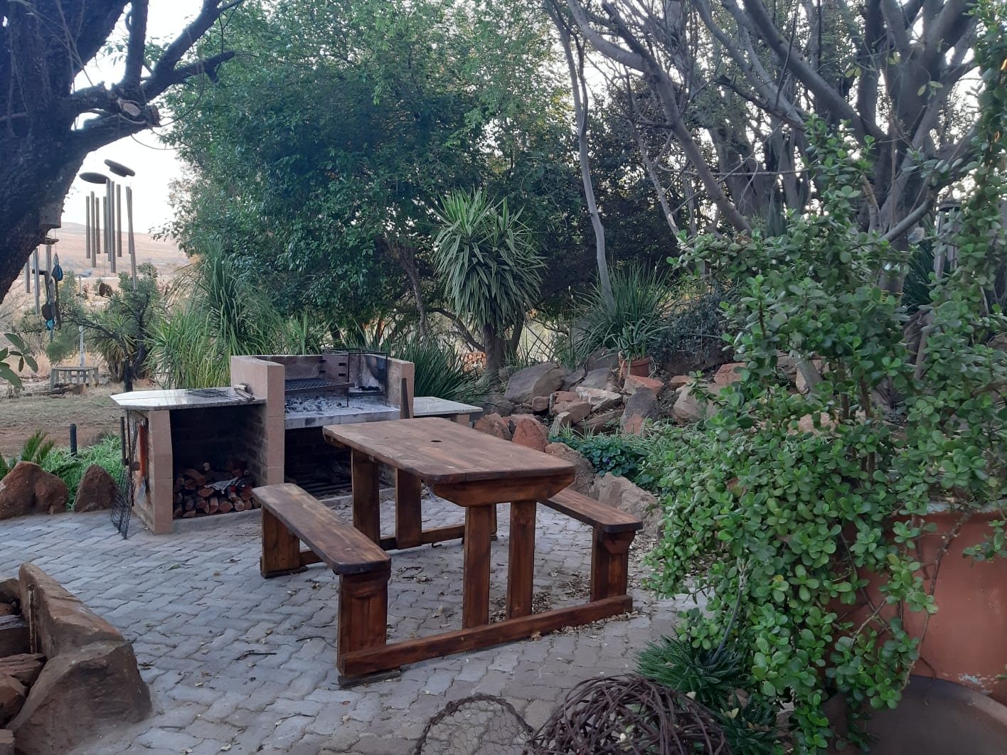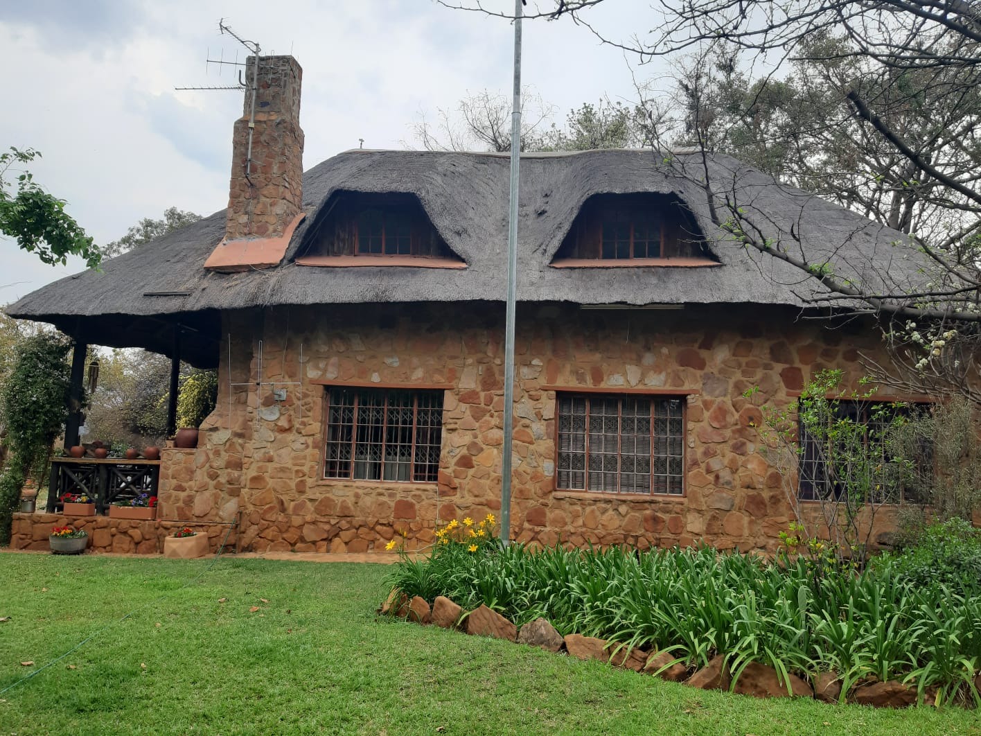 A thatch roof and a lovely established garden as well as a braai area add to the romantic atmosphere of this lovely home.
