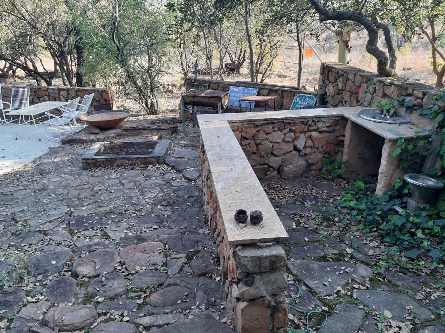 Extras are bird cages, a boma, Wendy house, a dam for ducks, a variety of wild trees and fruit trees.