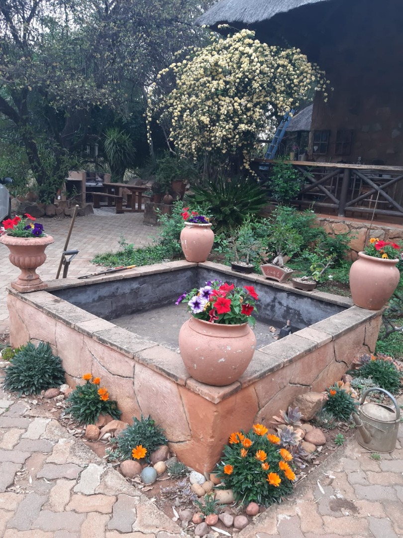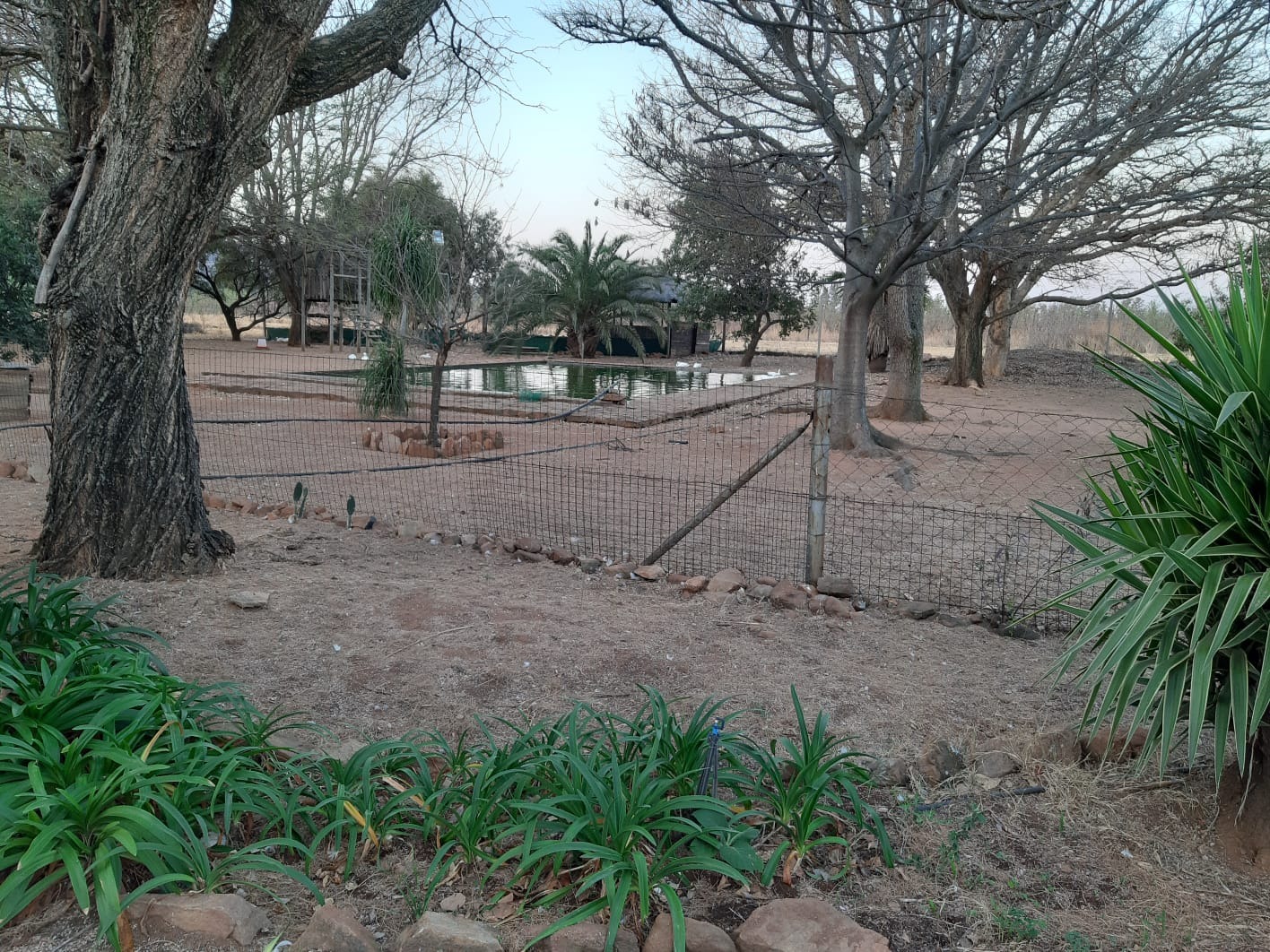 Extras are bird cages, a boma, Wendy house, a dam for ducks, a variety of wild trees and fruit trees.