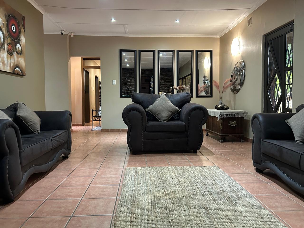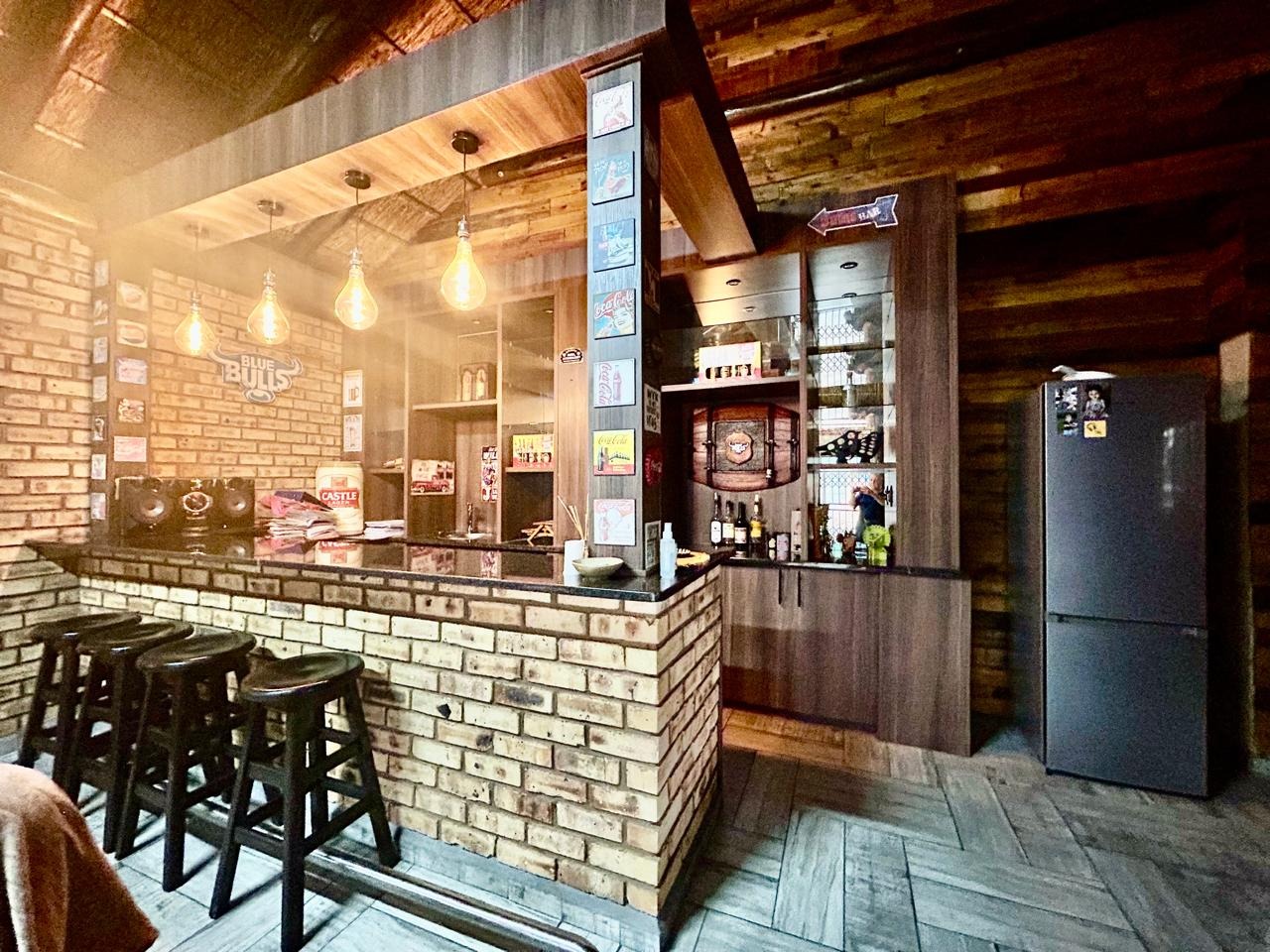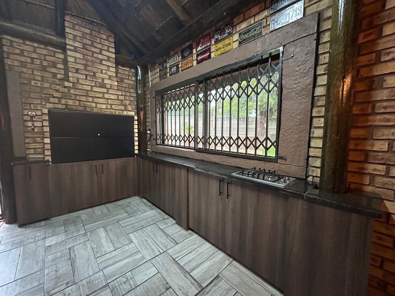 A standout feature is the very spacious entertainment area, fully fitted with a bar, built-in braai, and gas hob, opening seamlessly onto the swimming pool. The outdoor boma creates the ideal setting for relaxed gatherings and memorable evenings with family and friends.