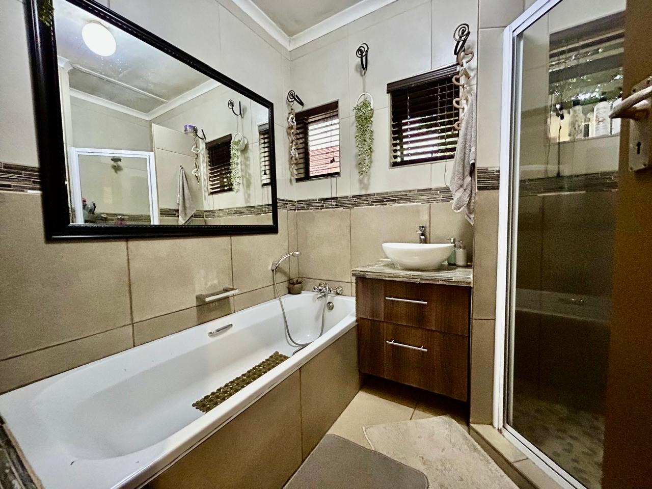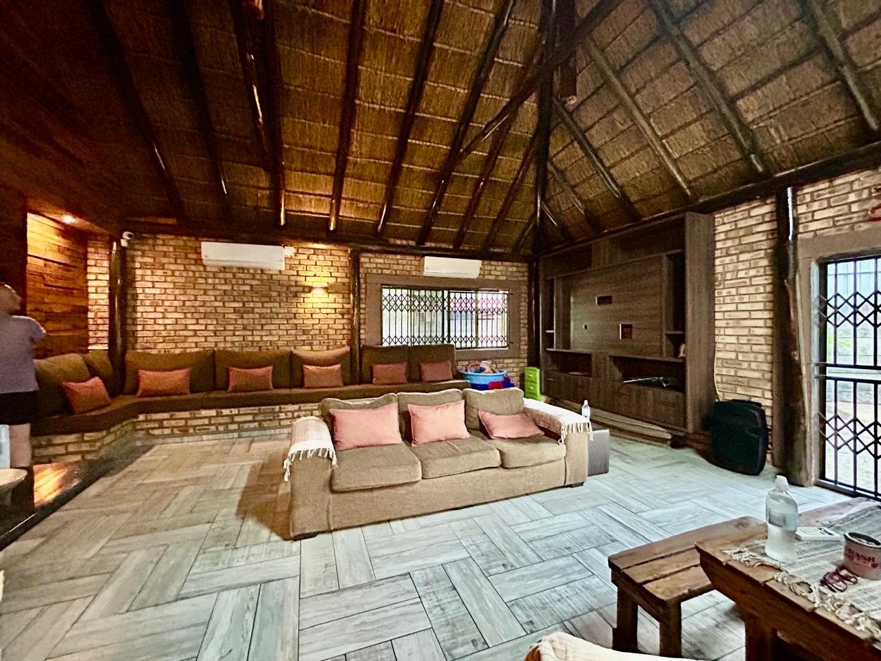 A standout feature is the very spacious entertainment area, fully fitted with a bar, built-in braai, and gas hob, opening seamlessly onto the swimming pool. The outdoor boma creates the ideal setting for relaxed gatherings and memorable evenings with family and friends.
