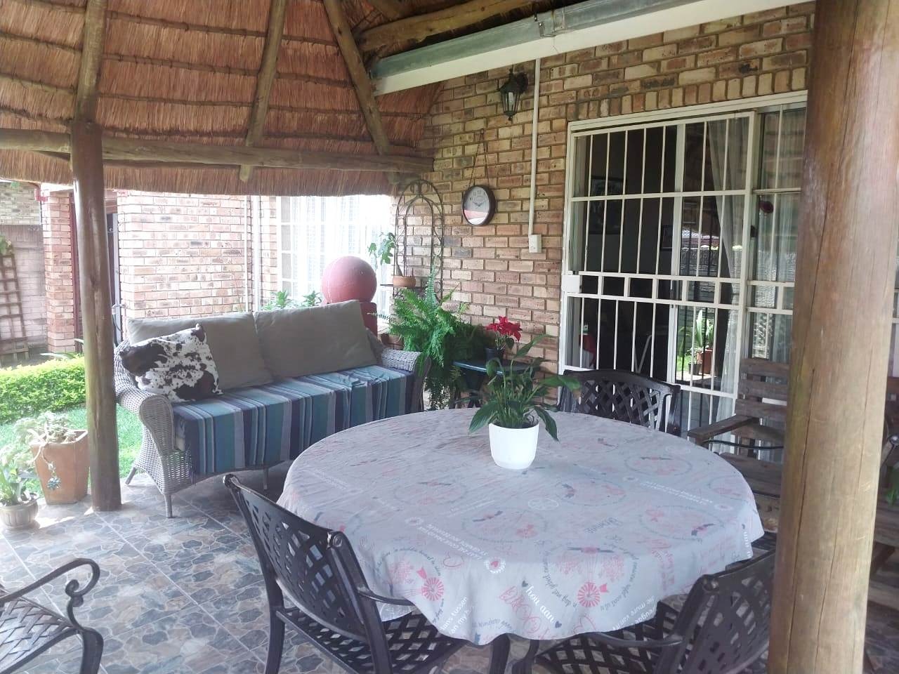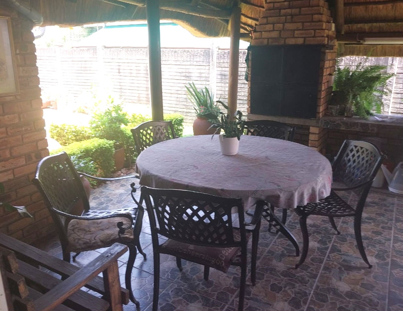 The outdoor area is a standout feature, designed for relaxed entertaining. A thatched lapa with built-in braai overlooks the sparkling swimming pool, all set within a neat, established garden that is easy to maintain yet beautifully presented.