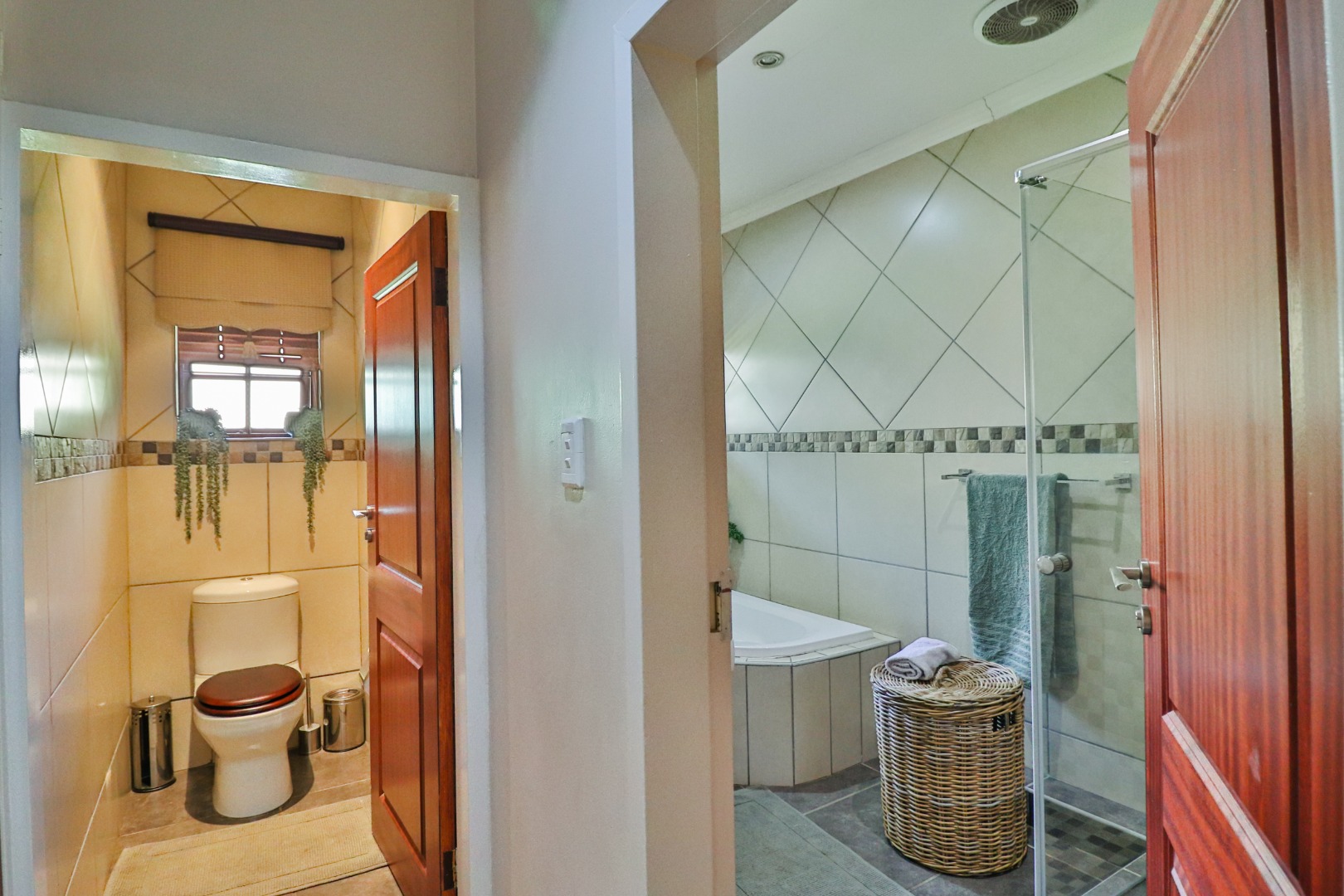 A full bathroom and separate toilet,