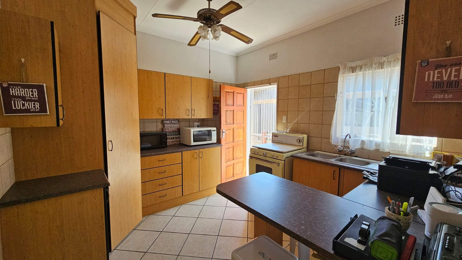 The main home features three spacious bedrooms, serviced by one full bathroom, along with a comfortable lounge and dining area that flow seamlessly through the home. The kitchen is well laid out, offering ample cupboard space and practical work surfaces.