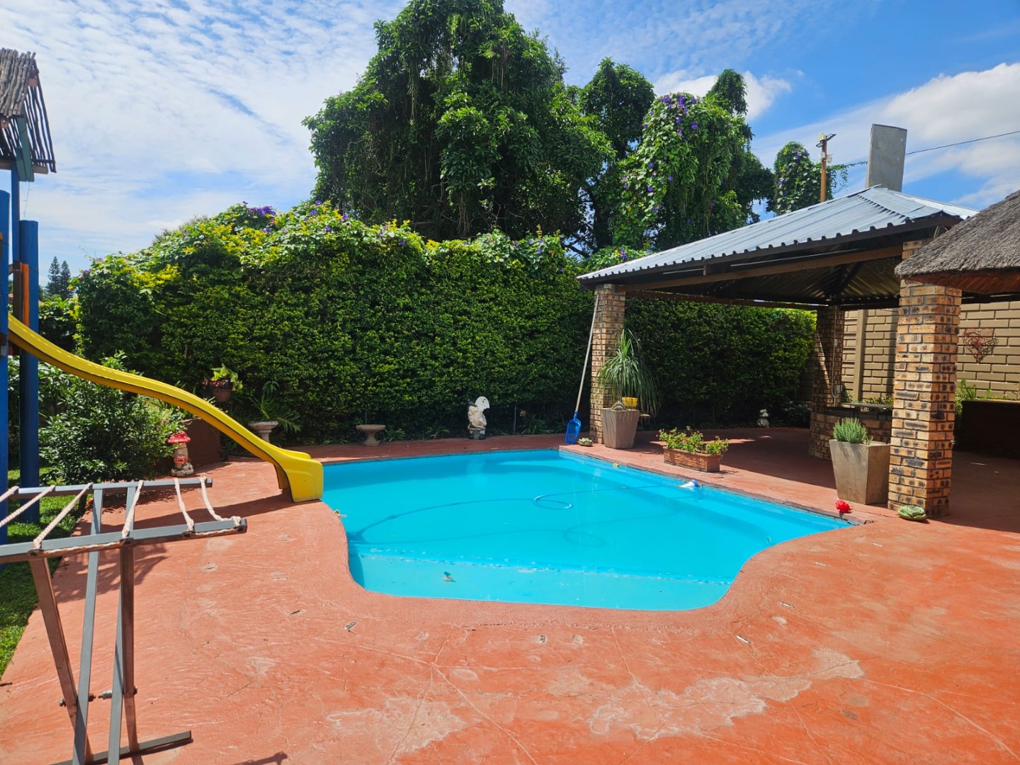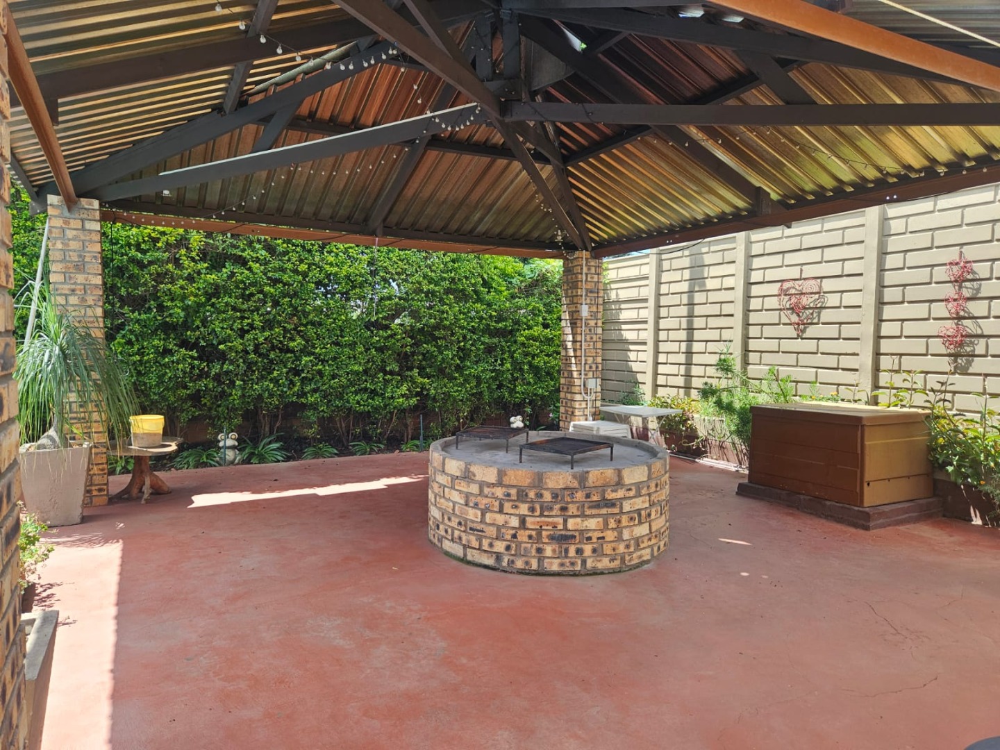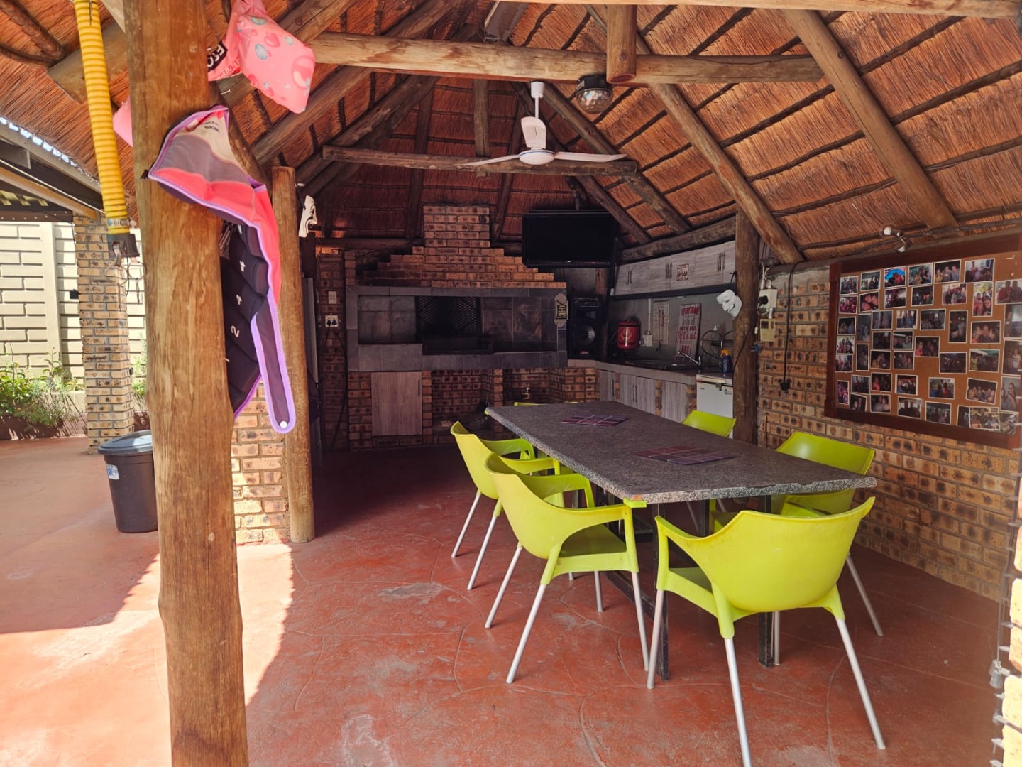 Covered patio with boma and lapa, complete with a built-in braai — perfect for hosting family and friends.