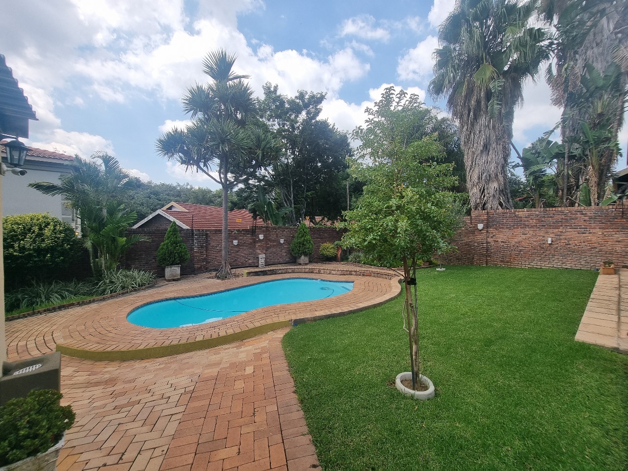 A sparkling swimming pool invites you to relax, with ample space for sun loungers in the open courtyard.