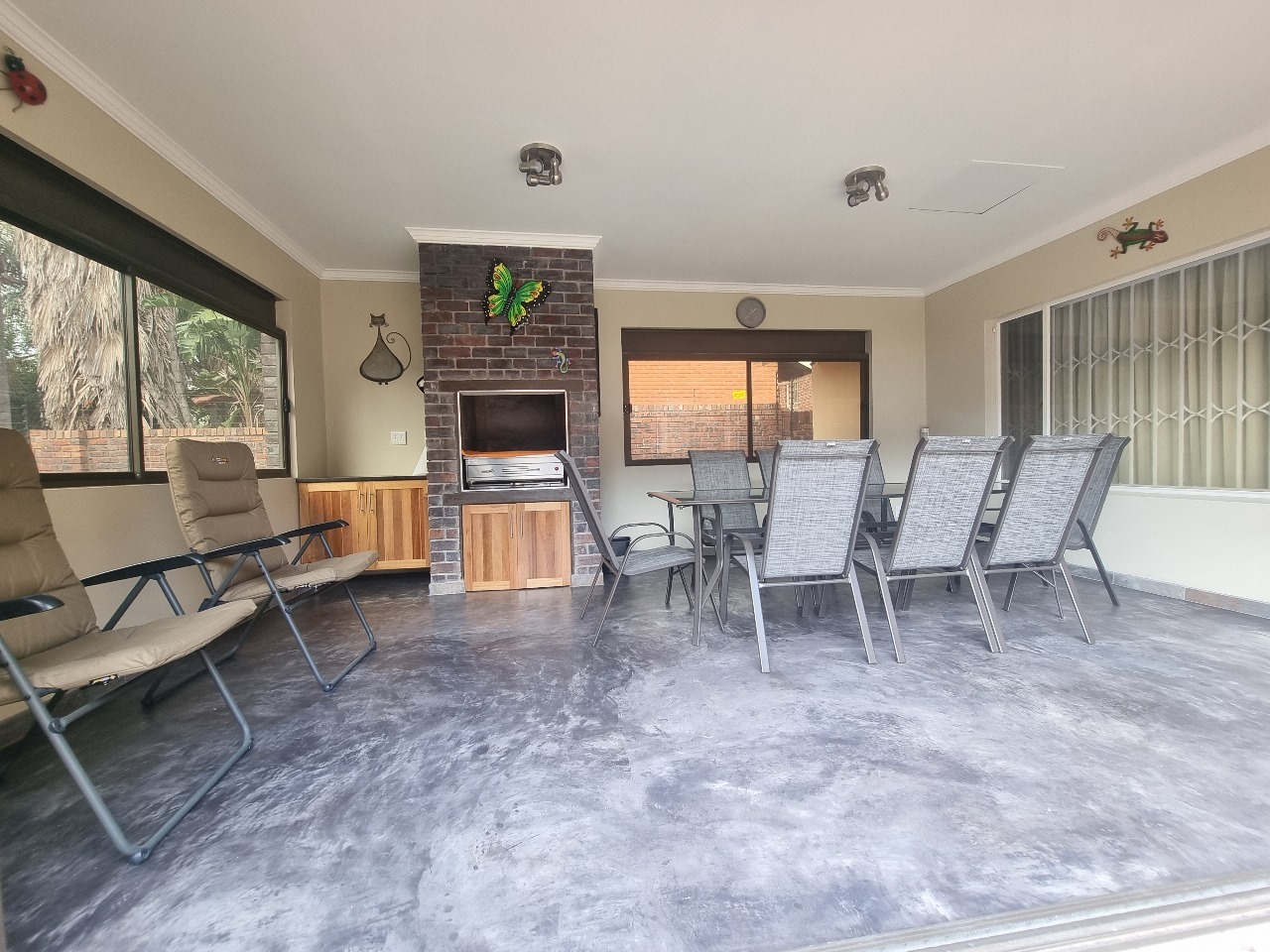 The separate entertainment area is fully equipped with a built-in gas braai, enclosed with stacker doors — ideal for hosting gatherings all year round.