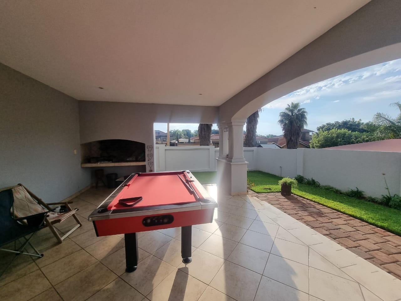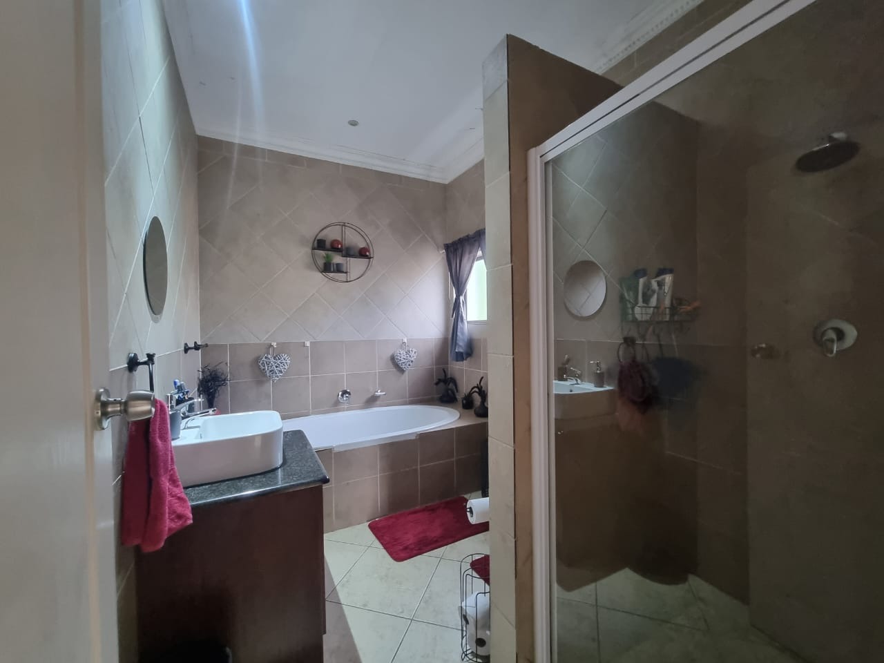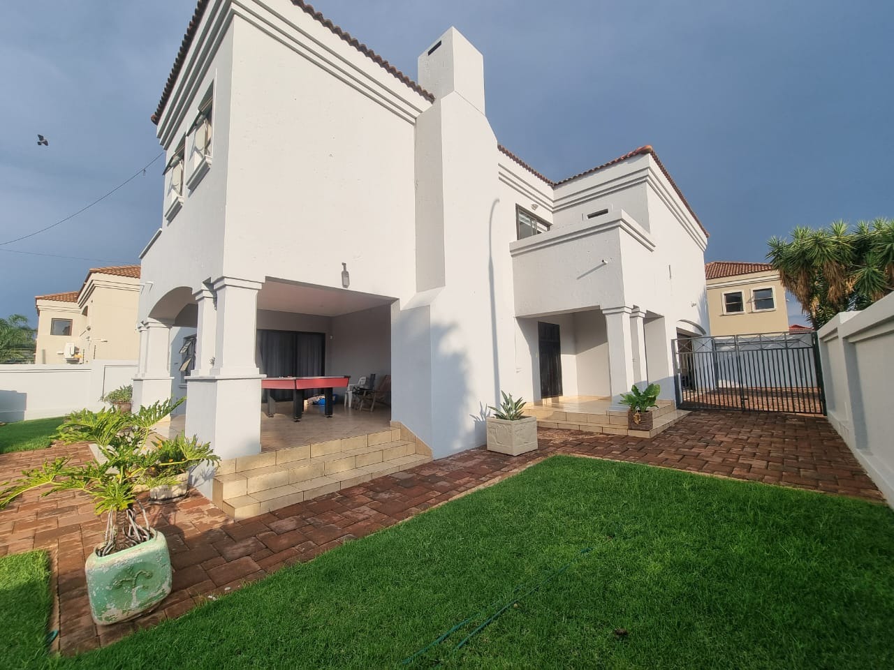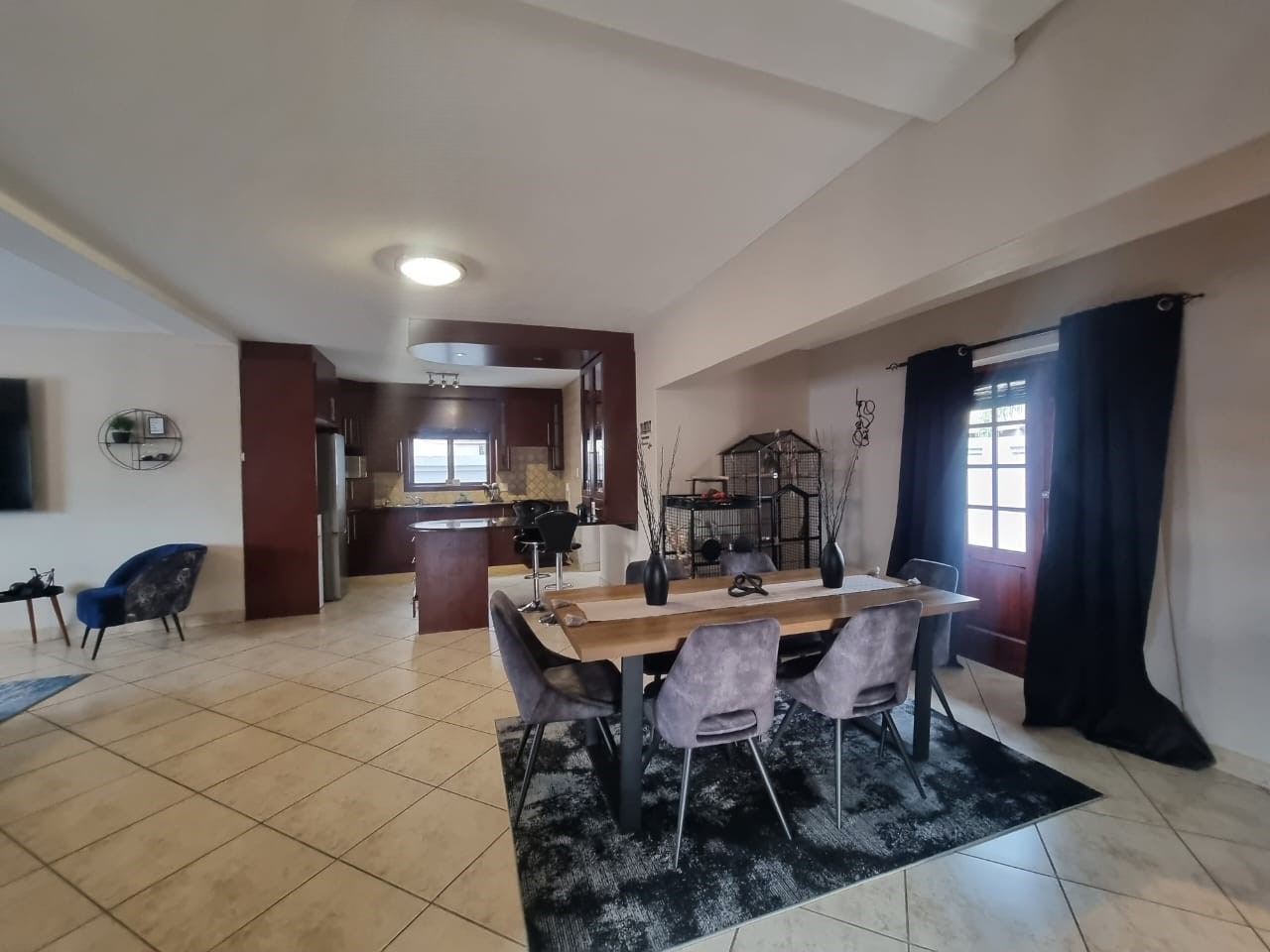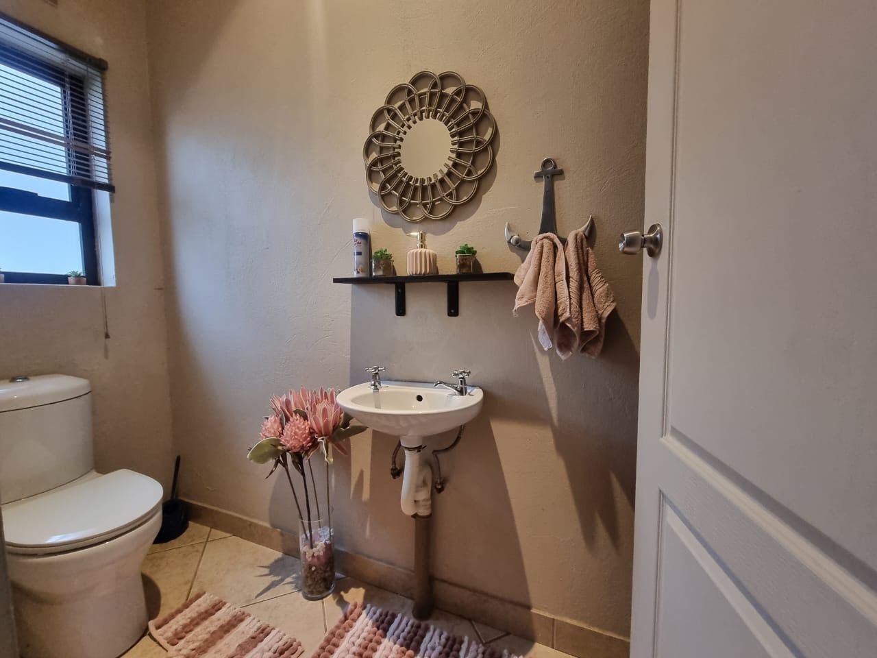 Discover this inviting four-bedroom family home, ideally situated in the sought-after Safari Gardens suburb of Rustenburg. Boasting a modern Mediterranean-style exterior with clean white finishes and terracotta roof tiles, the property presents an appealing curb appeal, complemented by a well-maintained garden, brick paving, and a secure gated entrance. The residence spans a generous 393 square metres, offering ample space for comfortable living. Step inside to an open-plan layout that seamlessly connects the spacious living areas, dining room, and kitchen. The interior features durable tiled flooring throughout, providing a practical and contemporary foundation. The kitchen is well-appointed with dark wood cabinetry, granite countertops, a breakfast bar, and an integrated display cabinet, catering to both functionality and style. A dedicated scullery and laundry area further enhance convenience. This home comprises four comfortable bedrooms, with two featuring private en-suite bathrooms, alongside an additional guest toilet, totalling 3.5 bathrooms. Natural light floods the living spaces, particularly in areas with large sliding glass doors that open onto a private balcony, offering an ideal spot for relaxation. An additional covered patio with a built-in braai provides an excellent setting for outdoor entertaining. Security is prioritised with a fully walled perimeter, an access gate, and a security gate. The property also includes a double garage and additional parking space for two vehicles, ensuring ample accommodation for residents and guests. Practical features such as water tanks and a well-maintained garden complete this attractive offering. Safari Gardens is a desirable residential area in Rustenburg, known for its family-friendly environment and convenient access to local amenities. This property offers a blend of comfort, security, and modern living within a vibrant community. Key Features: * Four spacious bedrooms * 3.5 bathrooms (two en-suite) * Open-plan living and dining areas * Modern kitchen with scullery * Double garage and two parking spaces * Covered patio with built-in braai * Private balcony * Secure access gate and walled perimeter * Well-maintained garden and paving * Water tanks included