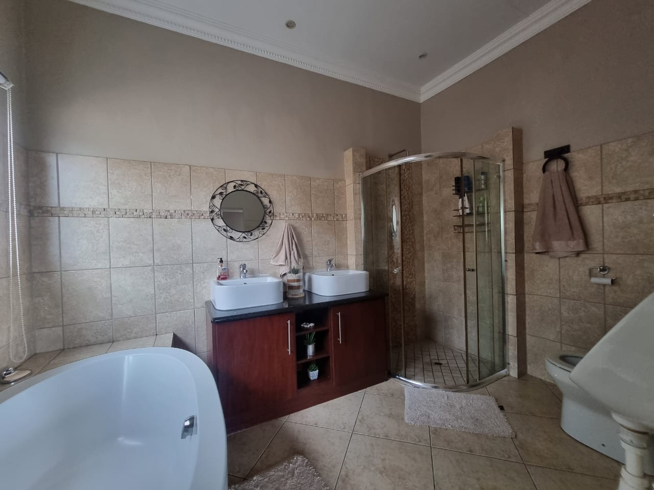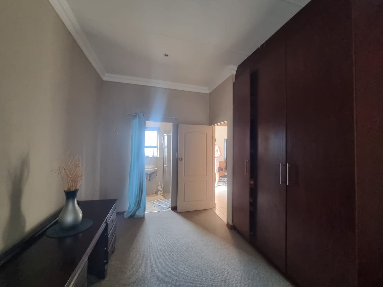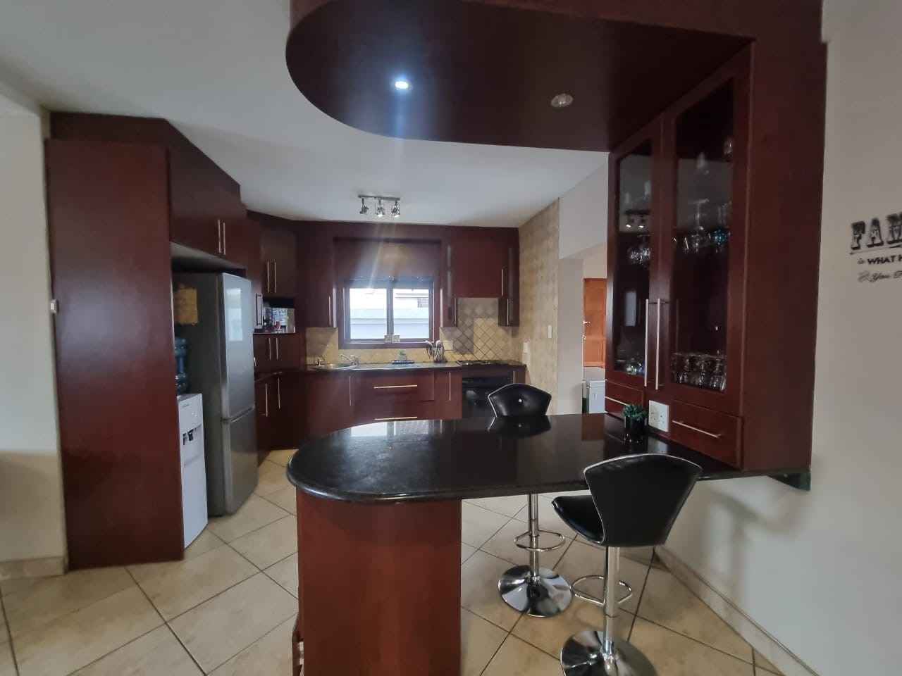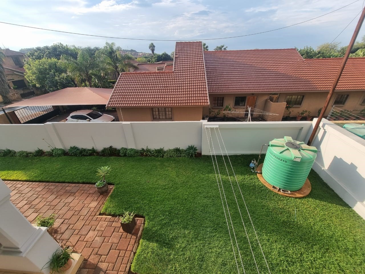 Discover this inviting four-bedroom family home, ideally situated in the sought-after Safari Gardens suburb of Rustenburg. Boasting a modern Mediterranean-style exterior with clean white finishes and terracotta roof tiles, the property presents an appealing curb appeal, complemented by a well-maintained garden, brick paving, and a secure gated entrance. The residence spans a generous 393 square metres, offering ample space for comfortable living. Step inside to an open-plan layout that seamlessly connects the spacious living areas, dining room, and kitchen. The interior features durable tiled flooring throughout, providing a practical and contemporary foundation. The kitchen is well-appointed with dark wood cabinetry, granite countertops, a breakfast bar, and an integrated display cabinet, catering to both functionality and style. A dedicated scullery and laundry area further enhance convenience. This home comprises four comfortable bedrooms, with two featuring private en-suite bathrooms, alongside an additional guest toilet, totalling 3.5 bathrooms. Natural light floods the living spaces, particularly in areas with large sliding glass doors that open onto a private balcony, offering an ideal spot for relaxation. An additional covered patio with a built-in braai provides an excellent setting for outdoor entertaining. Security is prioritised with a fully walled perimeter, an access gate, and a security gate. The property also includes a double garage and additional parking space for two vehicles, ensuring ample accommodation for residents and guests. Practical features such as water tanks and a well-maintained garden complete this attractive offering. Safari Gardens is a desirable residential area in Rustenburg, known for its family-friendly environment and convenient access to local amenities. This property offers a blend of comfort, security, and modern living within a vibrant community. Key Features: * Four spacious bedrooms * 3.5 bathrooms (two en-suite) * Open-plan living and dining areas * Modern kitchen with scullery * Double garage and two parking spaces * Covered patio with built-in braai * Private balcony * Secure access gate and walled perimeter * Well-maintained garden and paving * Water tanks included