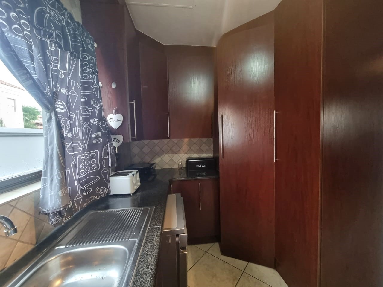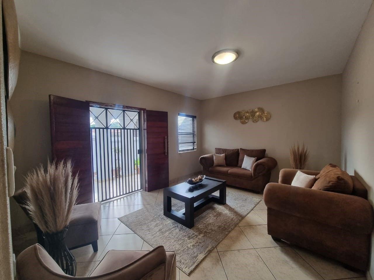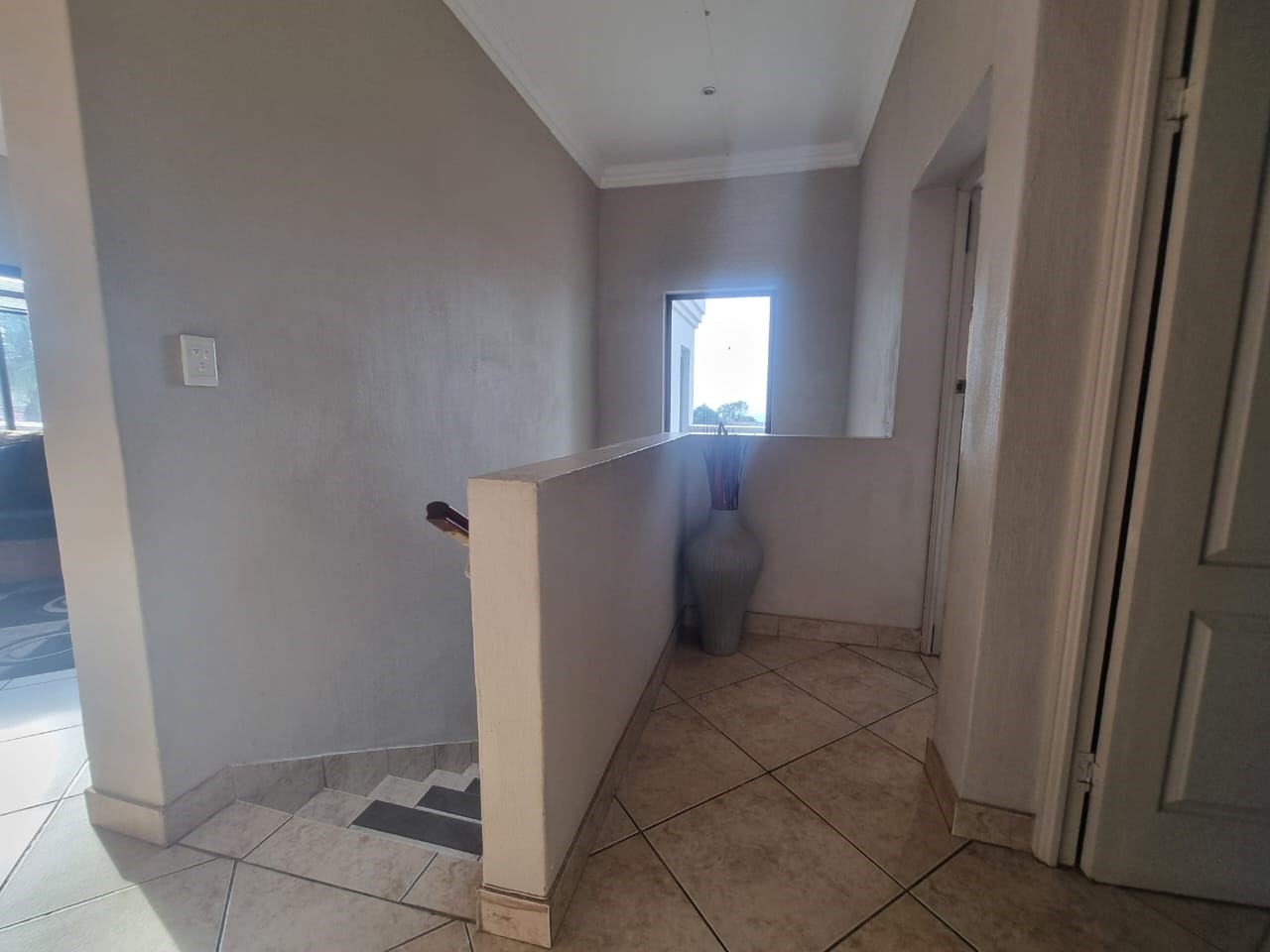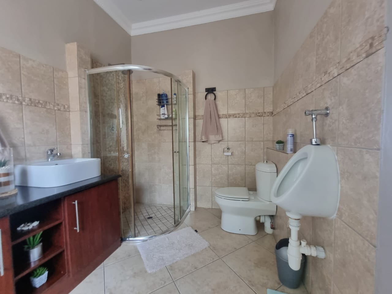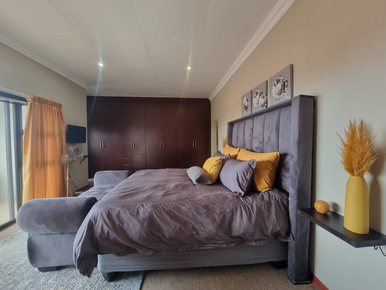 Discover this inviting four-bedroom family home, ideally situated in the sought-after Safari Gardens suburb of Rustenburg. Boasting a modern Mediterranean-style exterior with clean white finishes and terracotta roof tiles, the property presents an appealing curb appeal, complemented by a well-maintained garden, brick paving, and a secure gated entrance. The residence spans a generous 393 square metres, offering ample space for comfortable living. Step inside to an open-plan layout that seamlessly connects the spacious living areas, dining room, and kitchen. The interior features durable tiled flooring throughout, providing a practical and contemporary foundation. The kitchen is well-appointed with dark wood cabinetry, granite countertops, a breakfast bar, and an integrated display cabinet, catering to both functionality and style. A dedicated scullery and laundry area further enhance convenience. This home comprises four comfortable bedrooms, with two featuring private en-suite bathrooms, alongside an additional guest toilet, totalling 3.5 bathrooms. Natural light floods the living spaces, particularly in areas with large sliding glass doors that open onto a private balcony, offering an ideal spot for relaxation. An additional covered patio with a built-in braai provides an excellent setting for outdoor entertaining. Security is prioritised with a fully walled perimeter, an access gate, and a security gate. The property also includes a double garage and additional parking space for two vehicles, ensuring ample accommodation for residents and guests. Practical features such as water tanks and a well-maintained garden complete this attractive offering. Safari Gardens is a desirable residential area in Rustenburg, known for its family-friendly environment and convenient access to local amenities. This property offers a blend of comfort, security, and modern living within a vibrant community. Key Features: * Four spacious bedrooms * 3.5 bathrooms (two en-suite) * Open-plan living and dining areas * Modern kitchen with scullery * Double garage and two parking spaces * Covered patio with built-in braai * Private balcony * Secure access gate and walled perimeter * Well-maintained garden and paving * Water tanks included