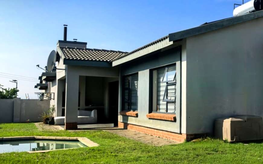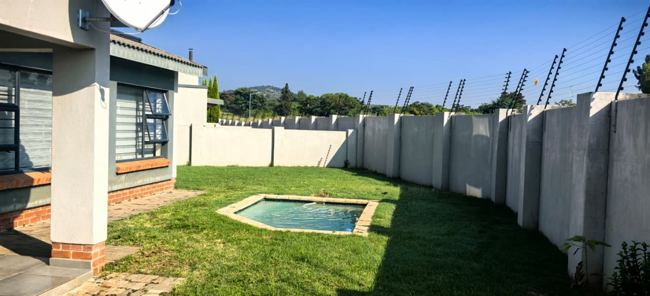 Patio with built-in braai and pool...