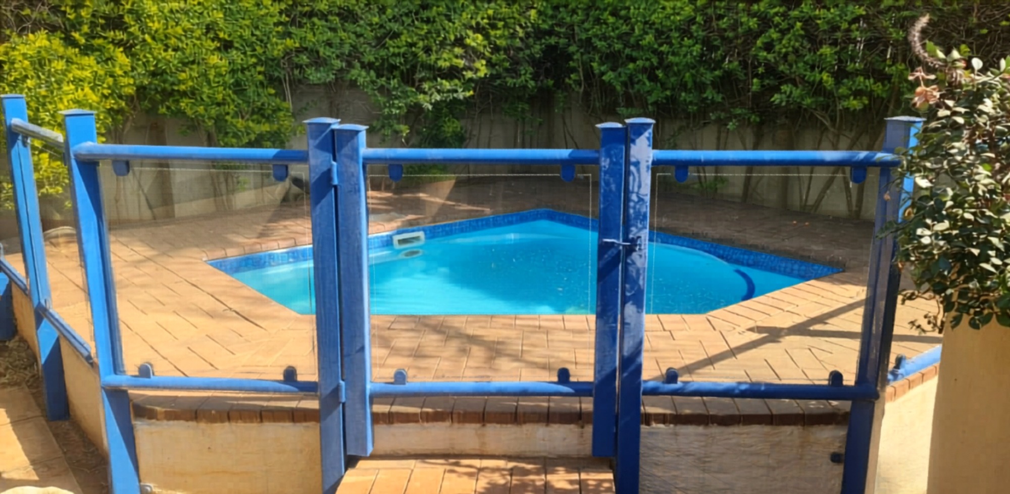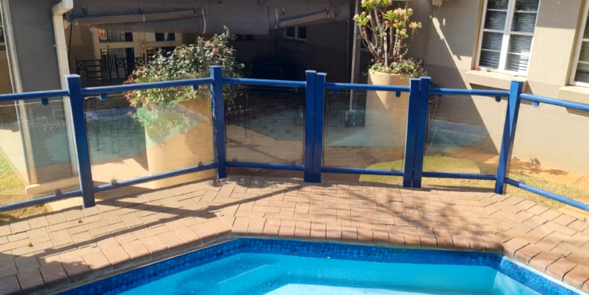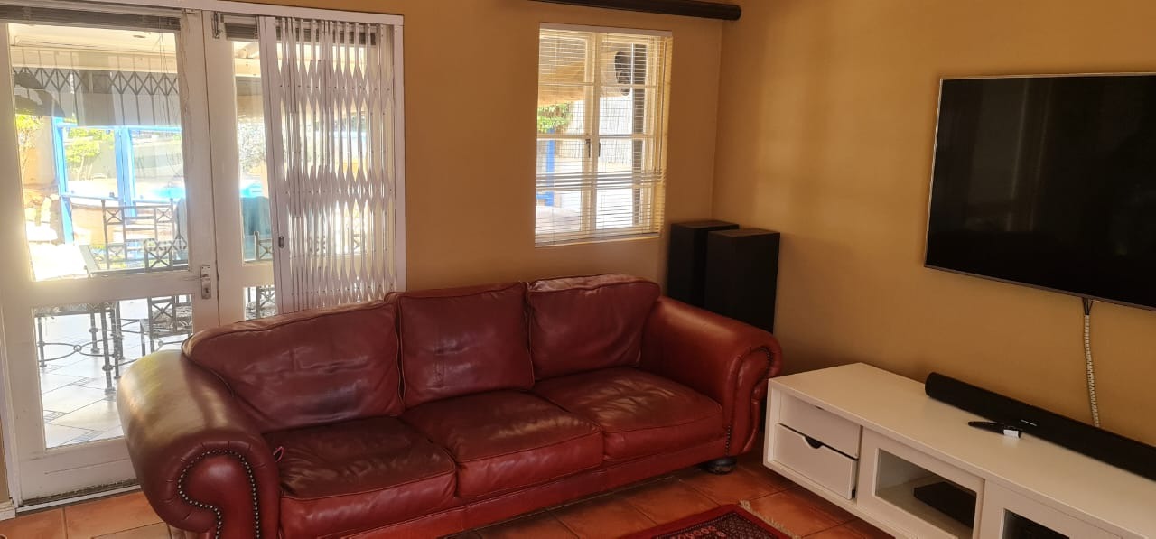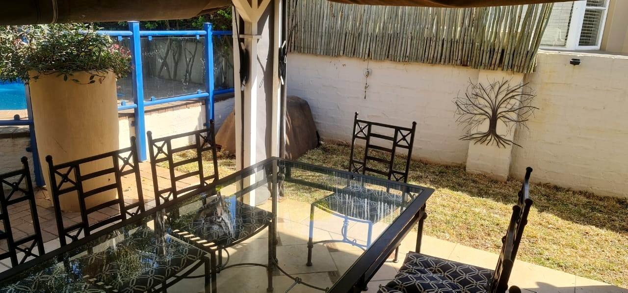 An inviting patio with a built-in braai overlooks the pool, making it ideal for entertaining.