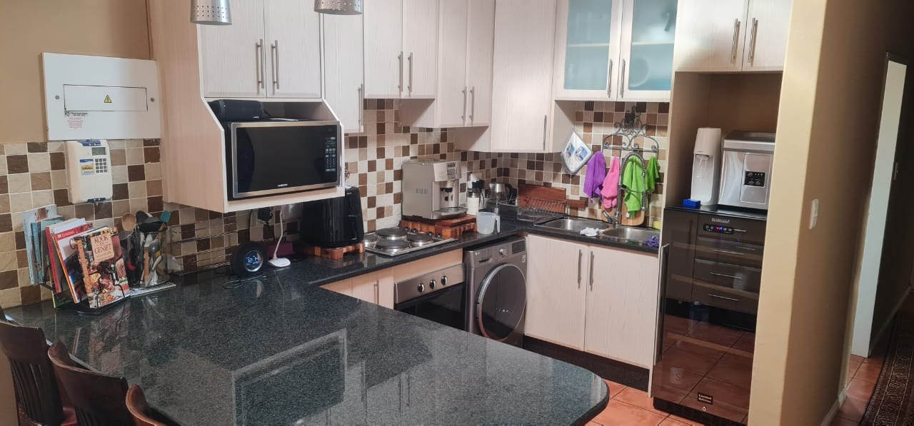 Inside, you’ll find three bedrooms with built-in cupboards, including a main en-suite, as well as a second bathroom. The open-plan living areas flow seamlessly into a modern kitchen, creating a welcoming and functional space.