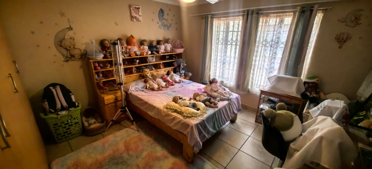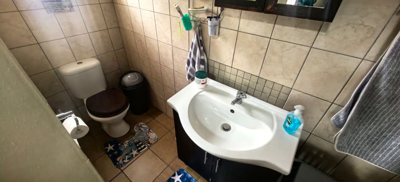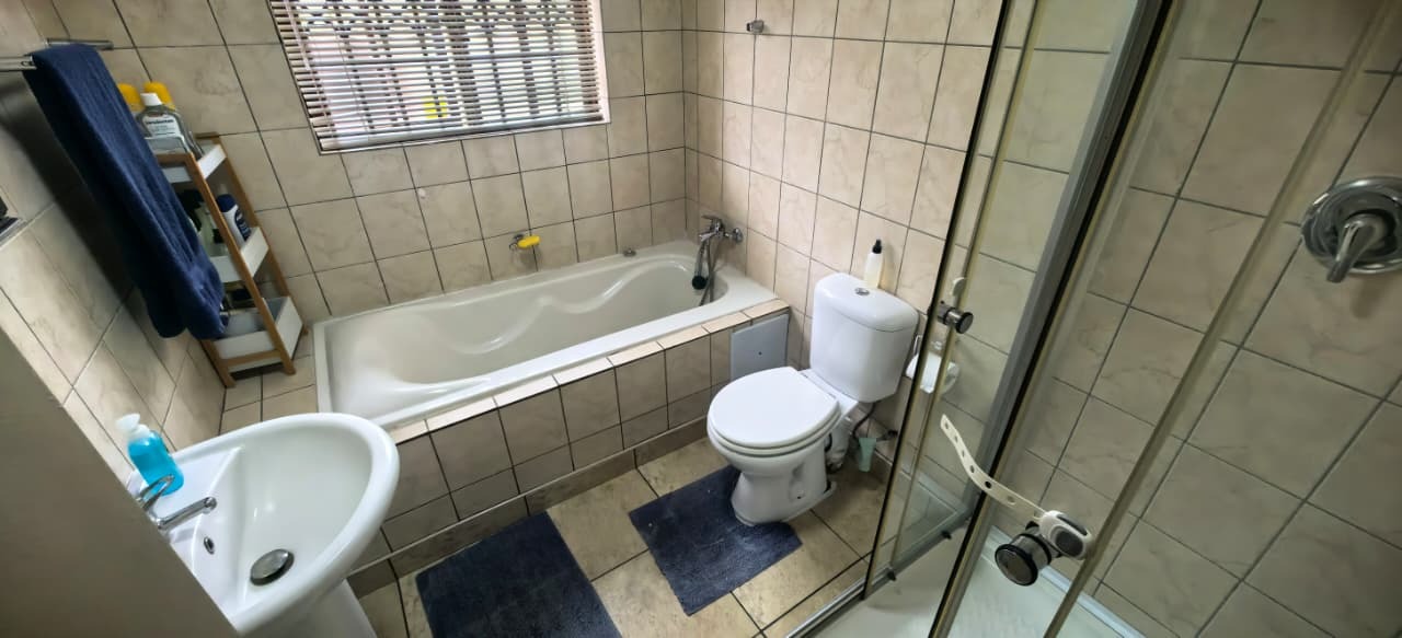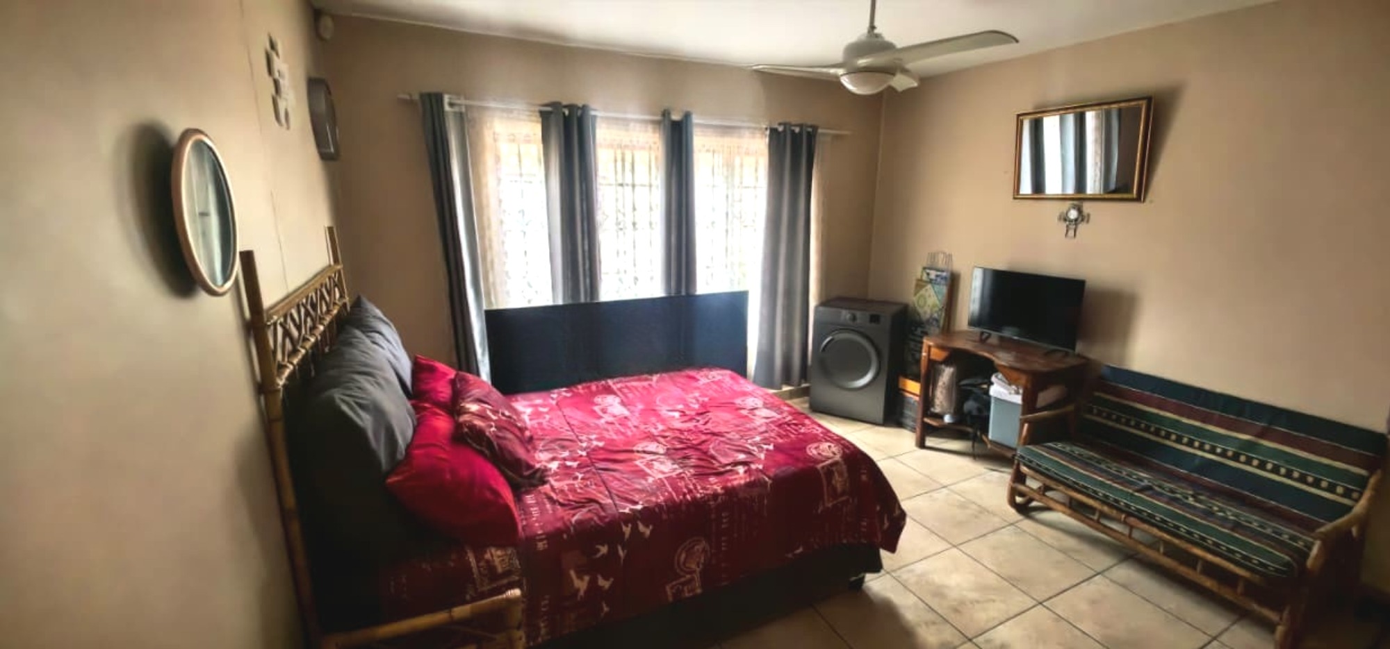 Main bedroom upstairs, air-conditioned with ample cupboard space and en-suite bathroom. . .