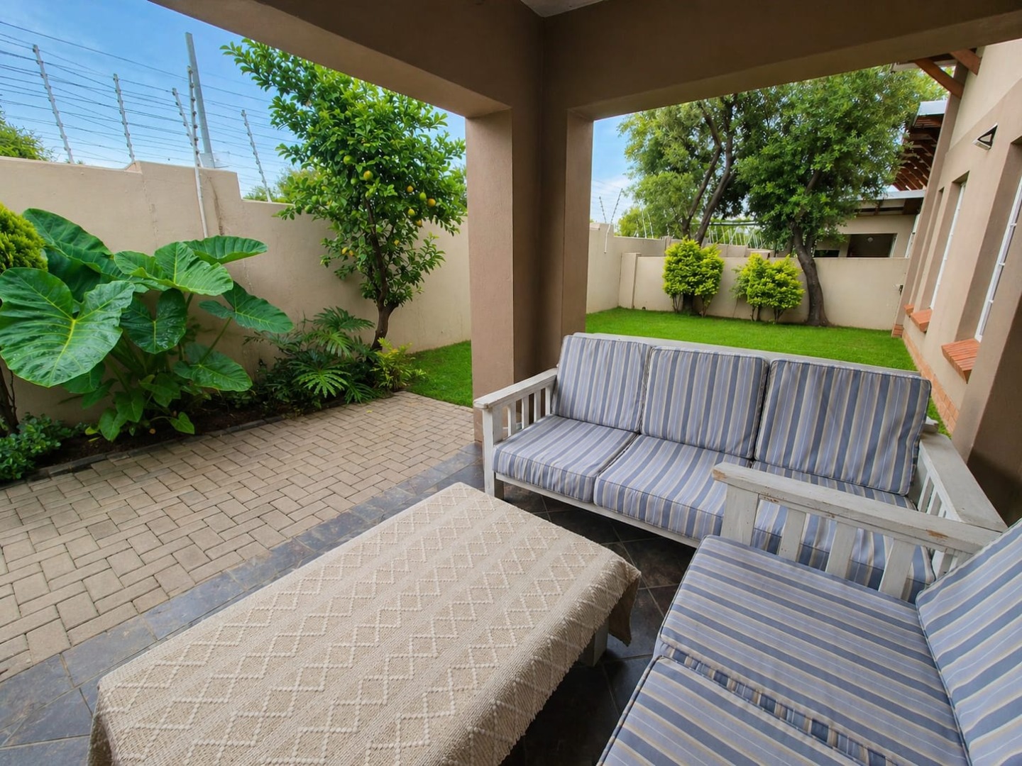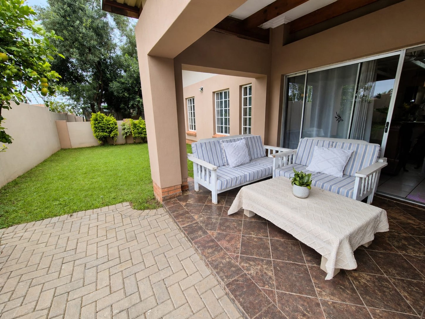 Covered patio with built-in braai...