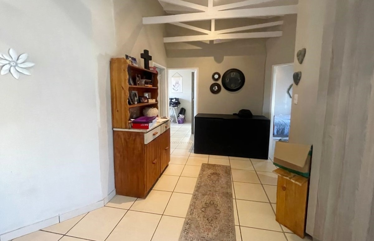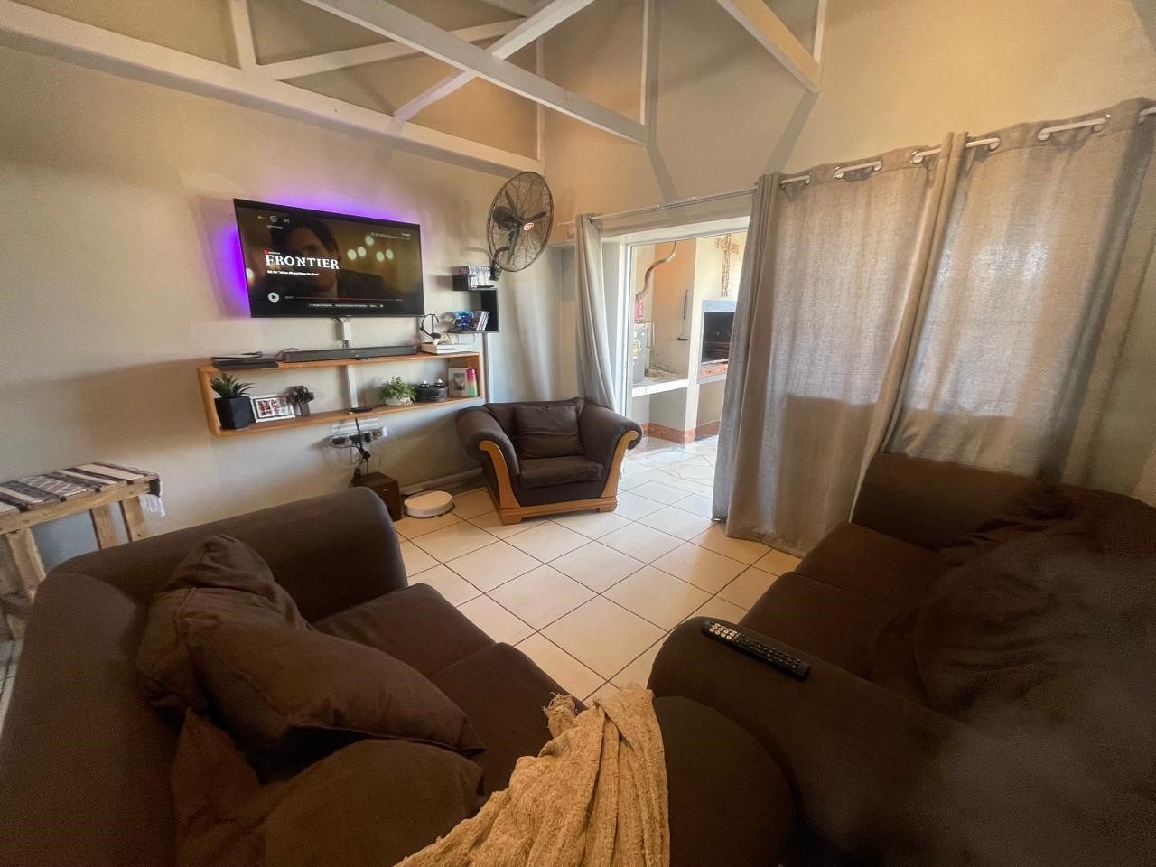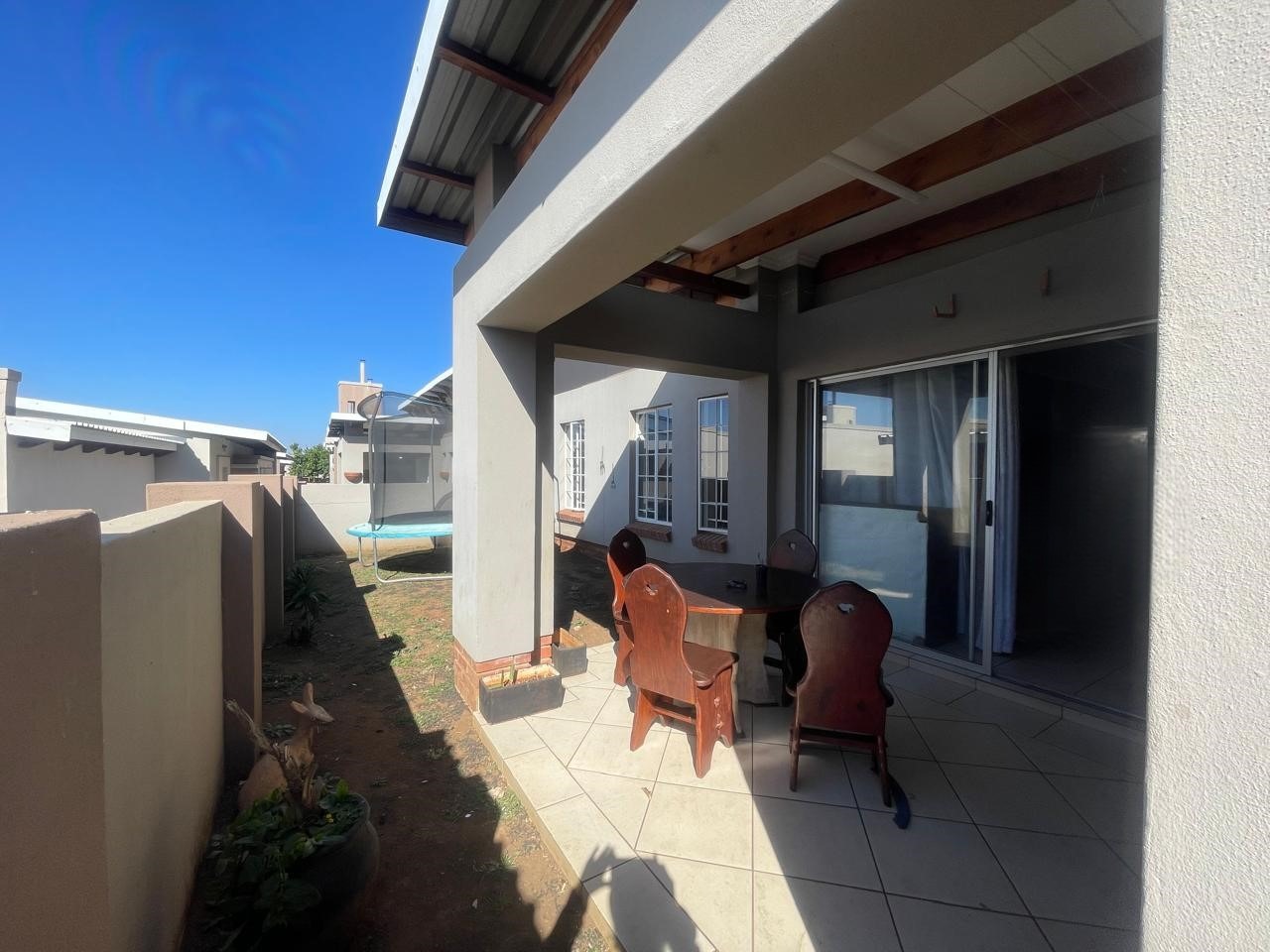 Covered patio with built-in braai overlooking a private, low-maintenance garden.
