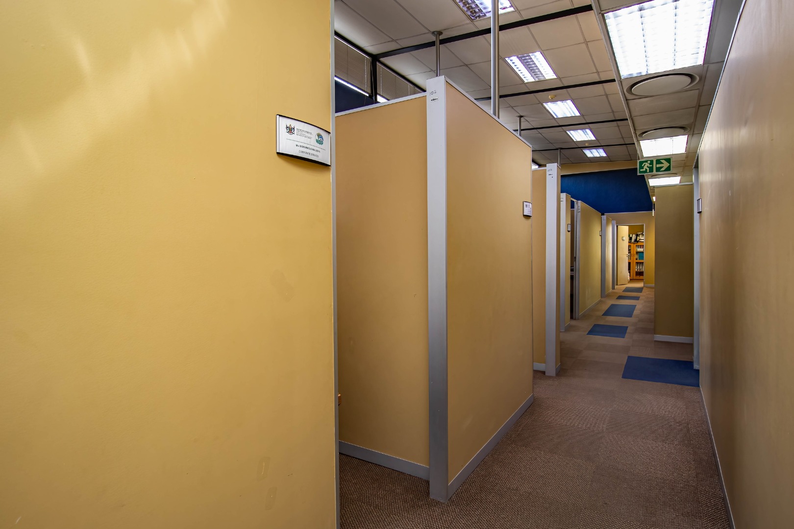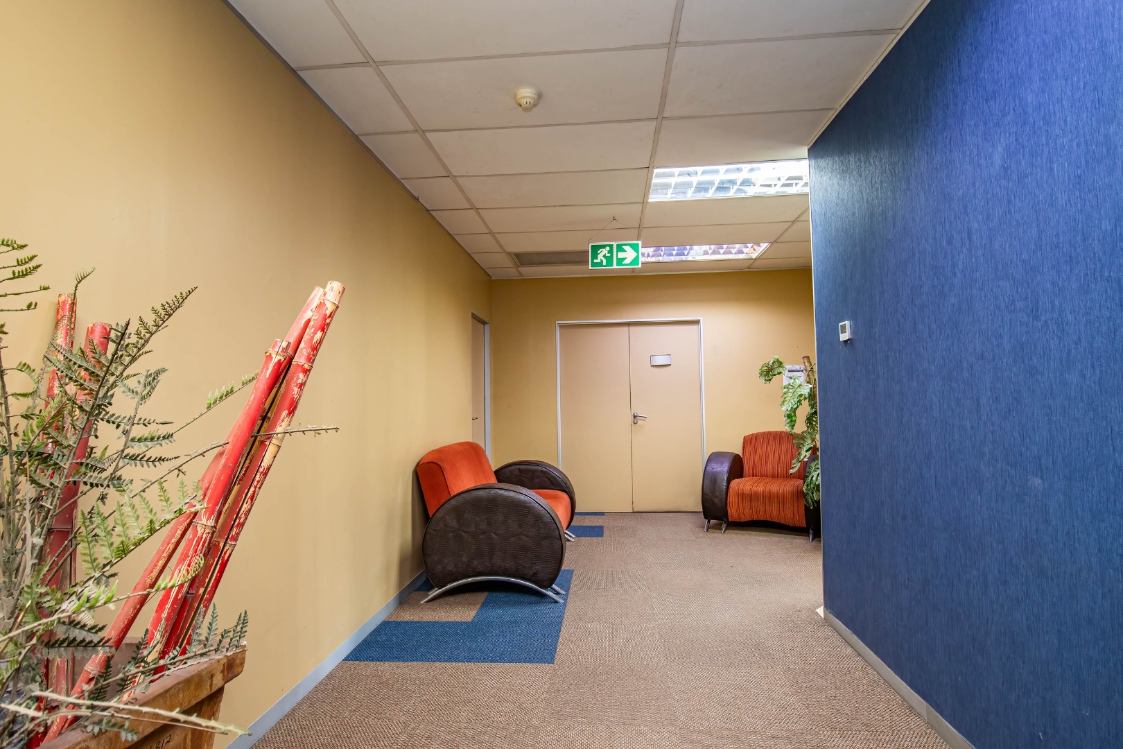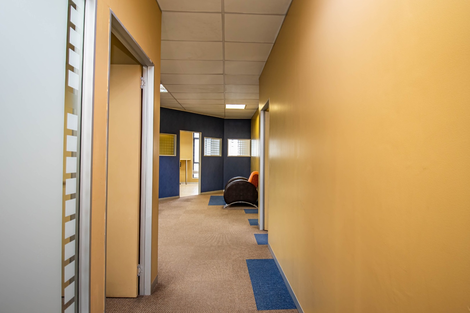 Upstairs with 12 offices, a training facility with boardrooms and kitchen, additional extra 9 offices with own entrance, kitchen and bathrooms.