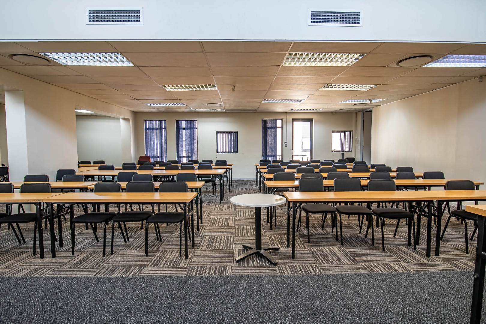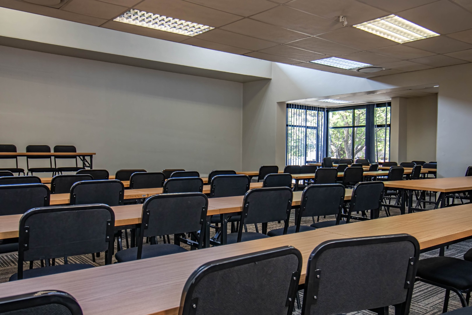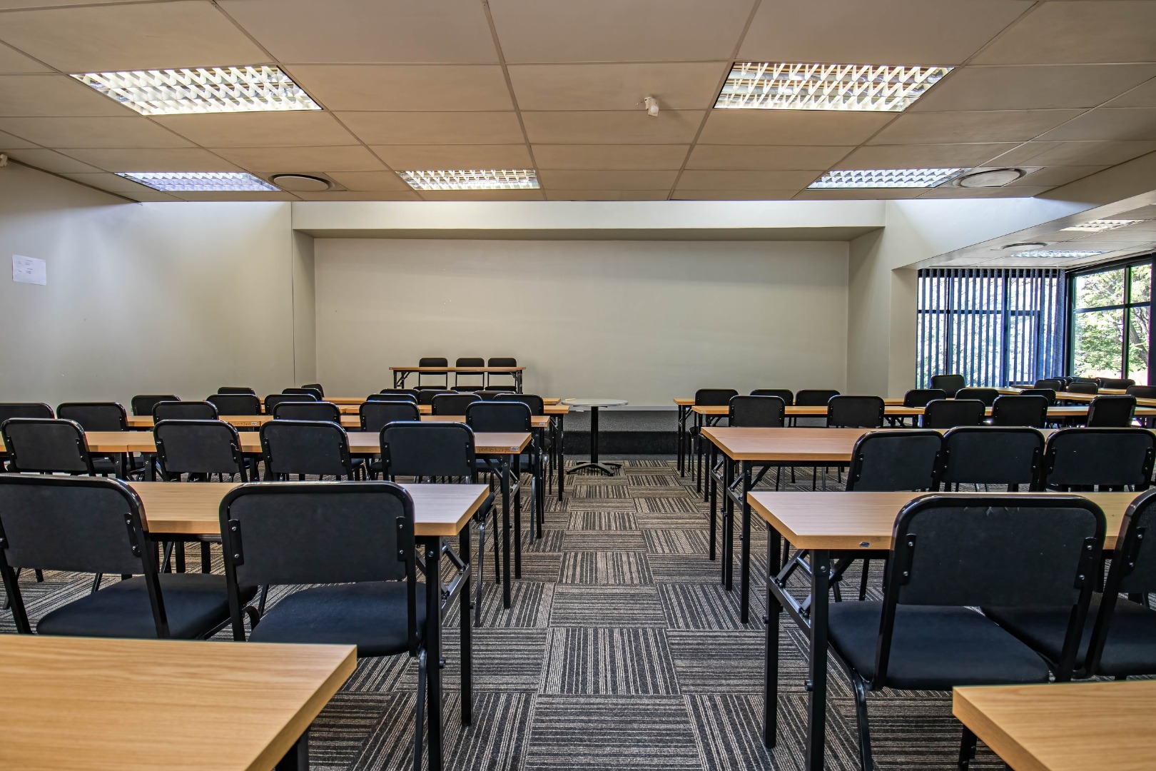 Upstairs with 12 offices, a training facility with boardrooms and kitchen, additional extra 9 offices with own entrance, kitchen and bathrooms.
