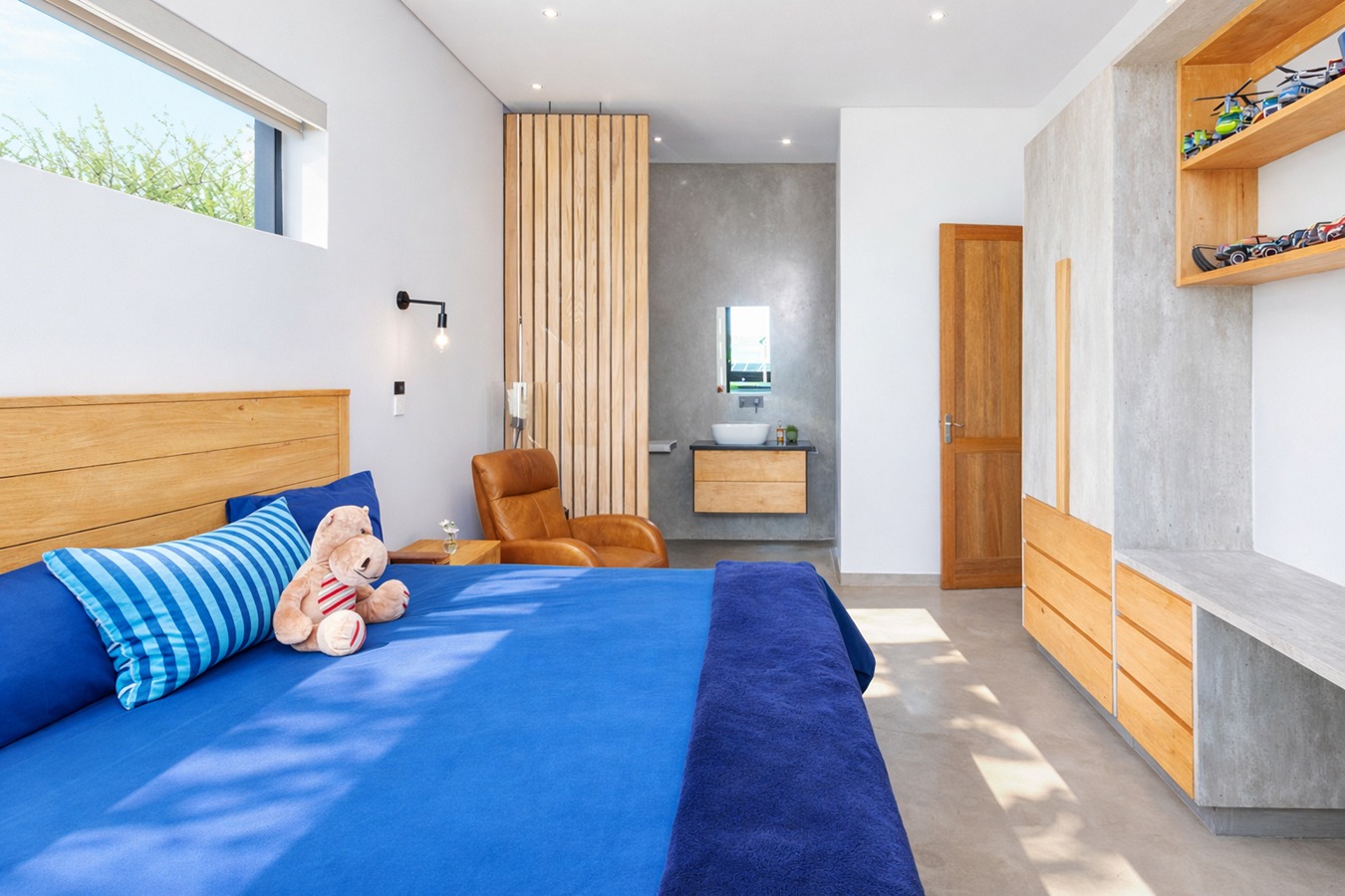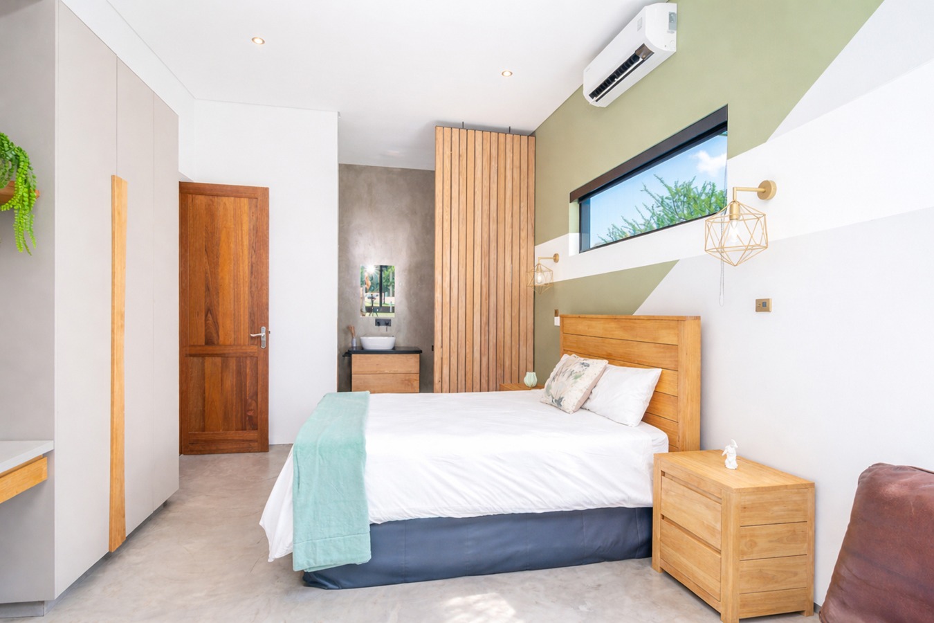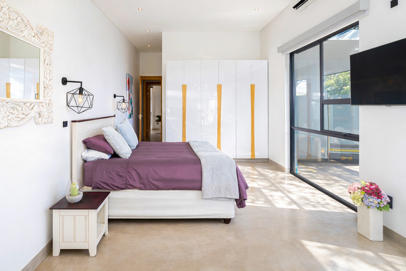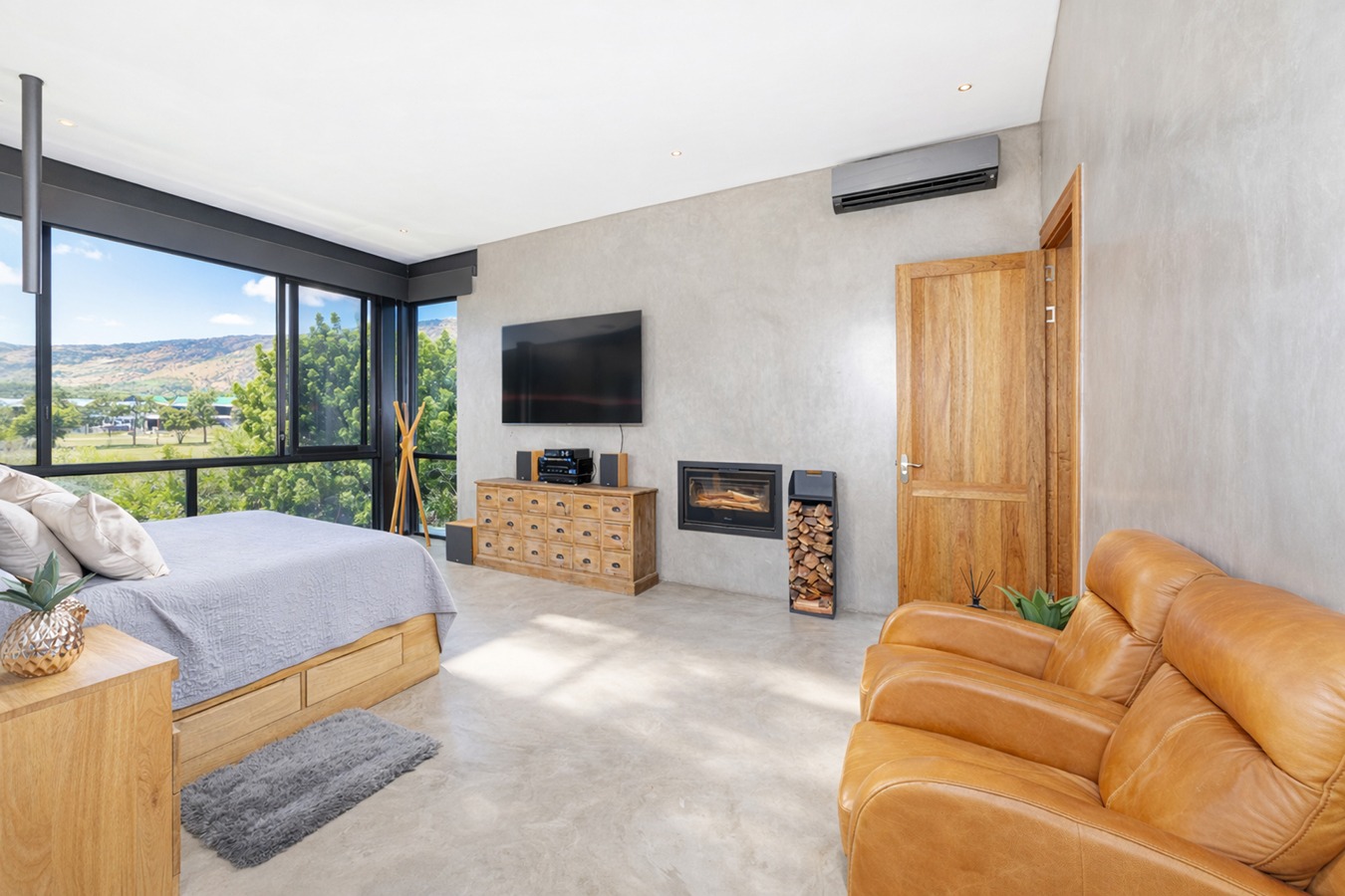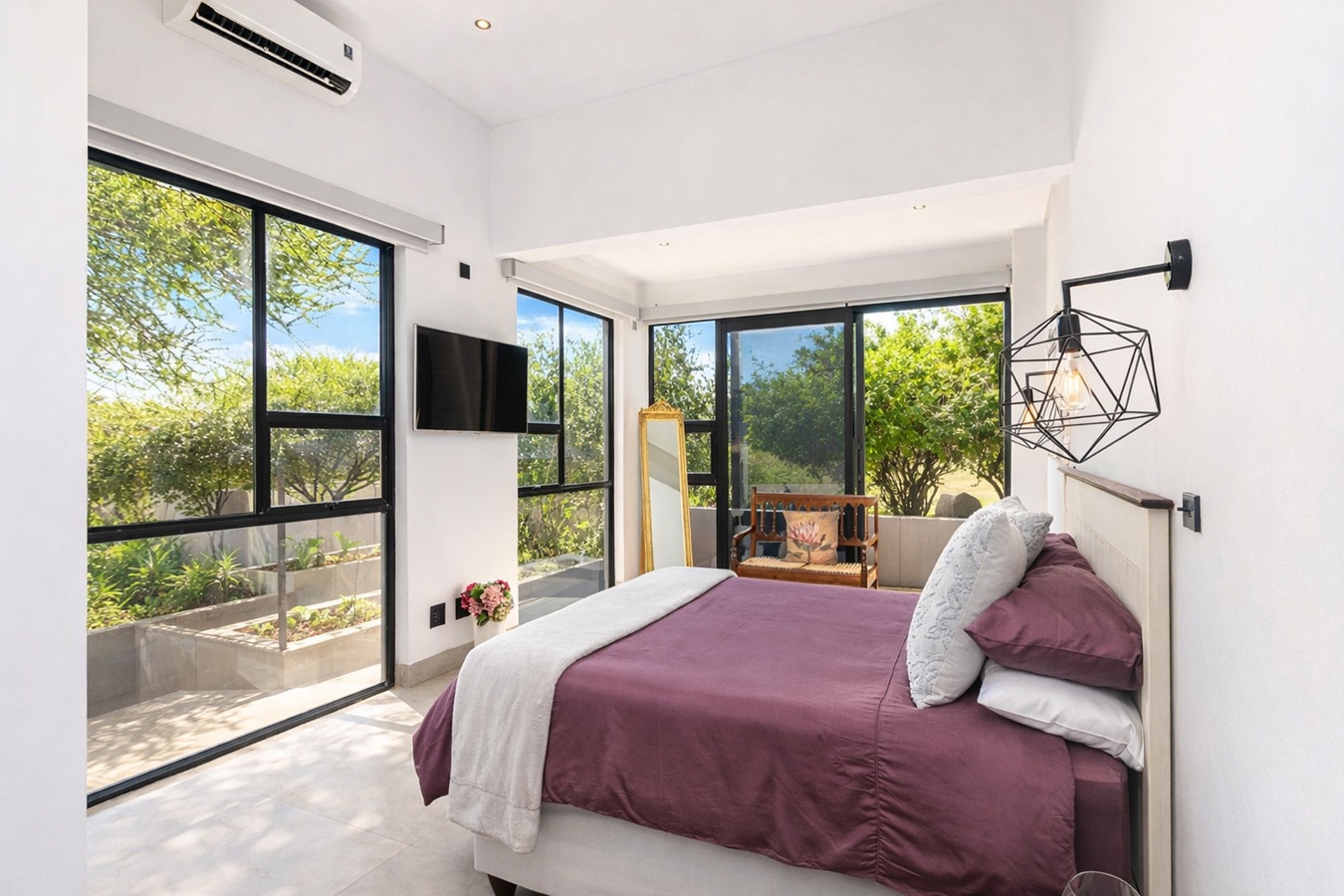 Private guest bedroom with en-suite bathroom and sliding doors opening onto a secluded stoep.