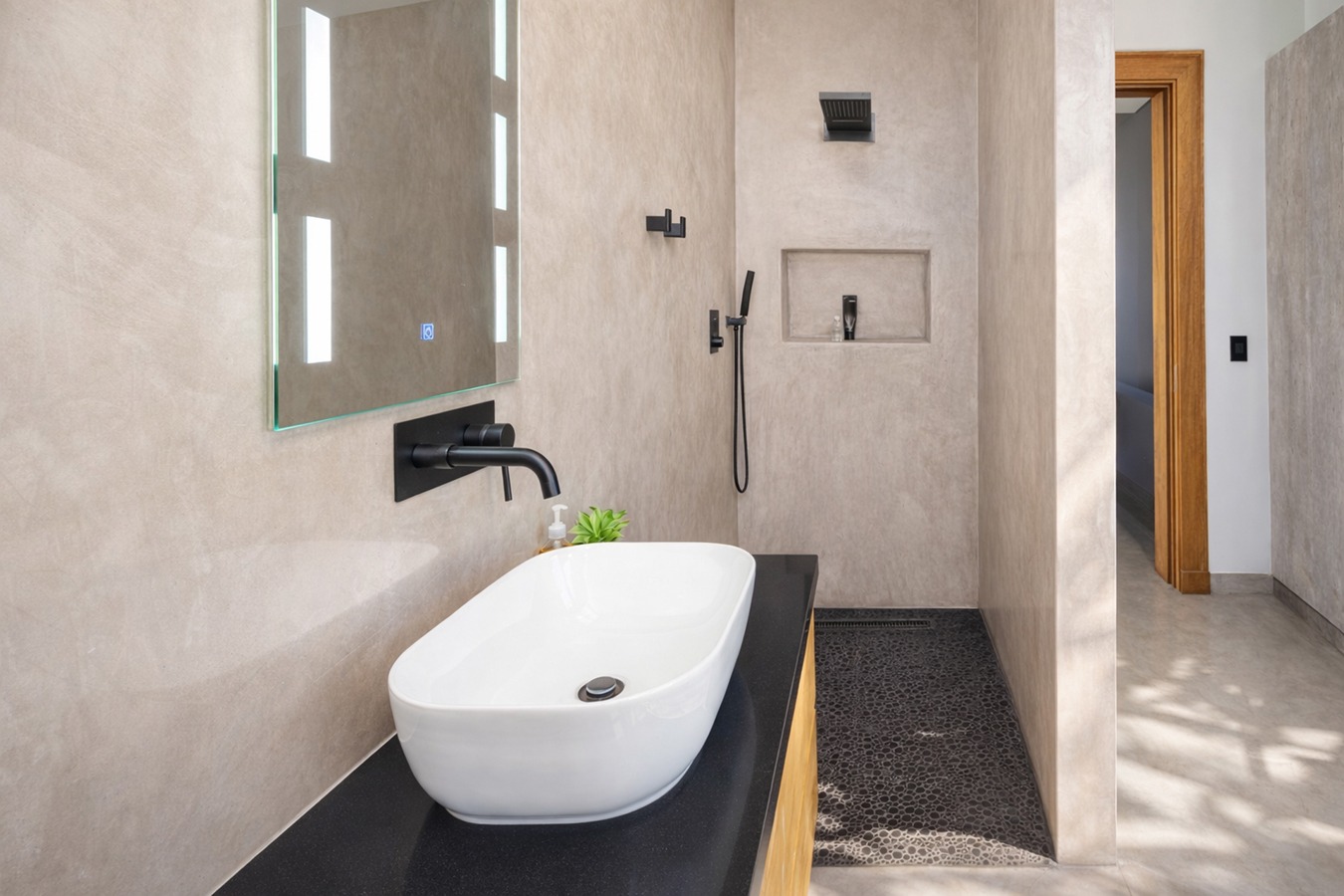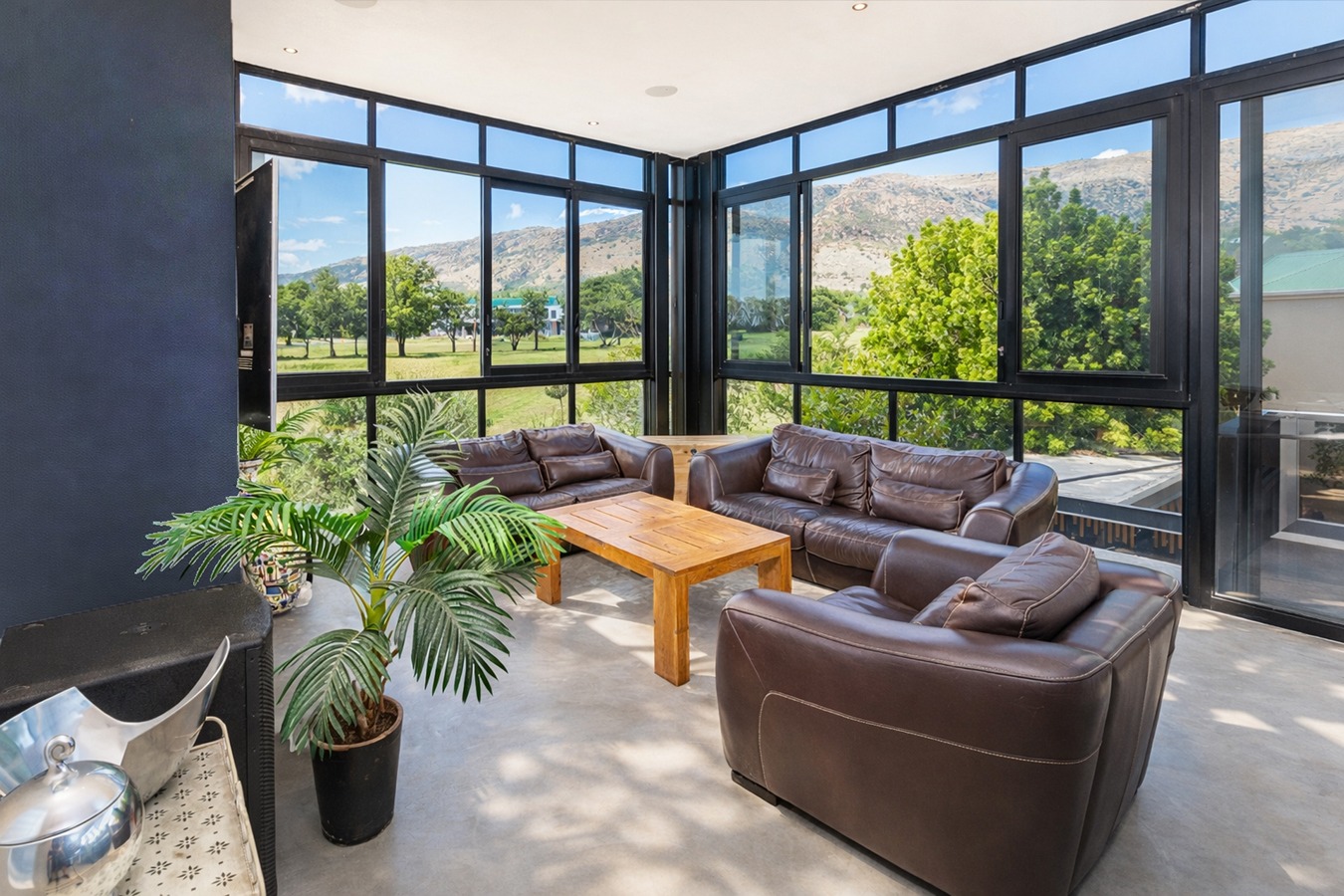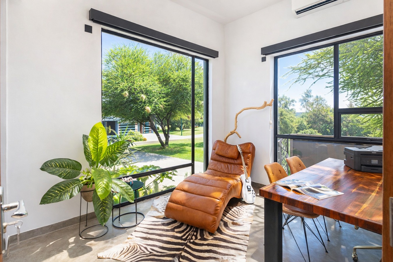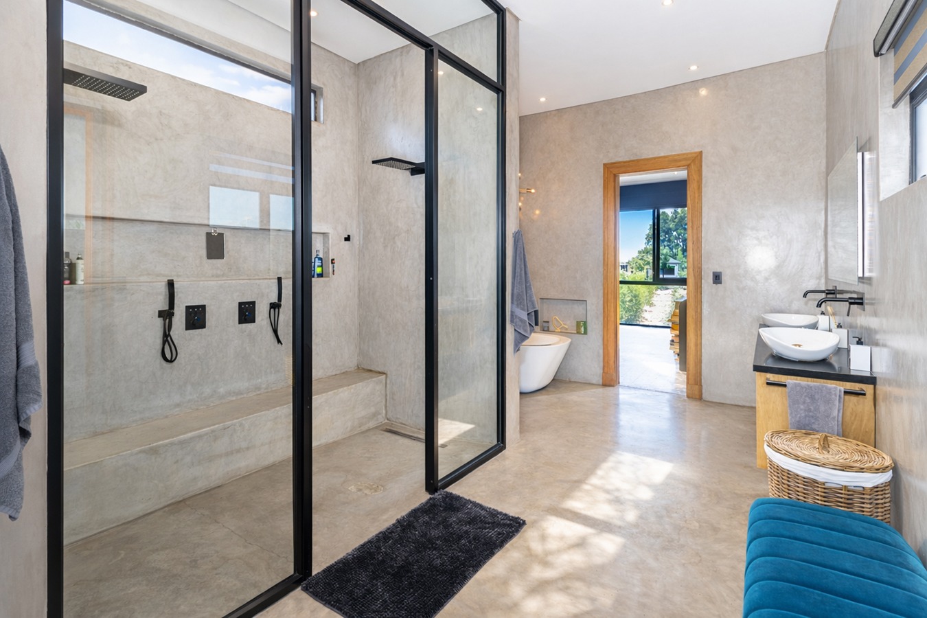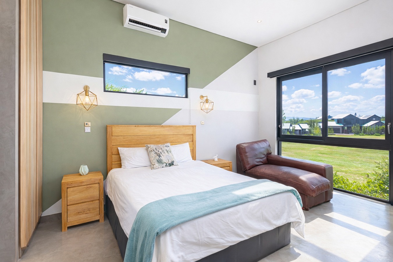 Private guest bedroom with en-suite bathroom and sliding doors opening onto a secluded stoep.