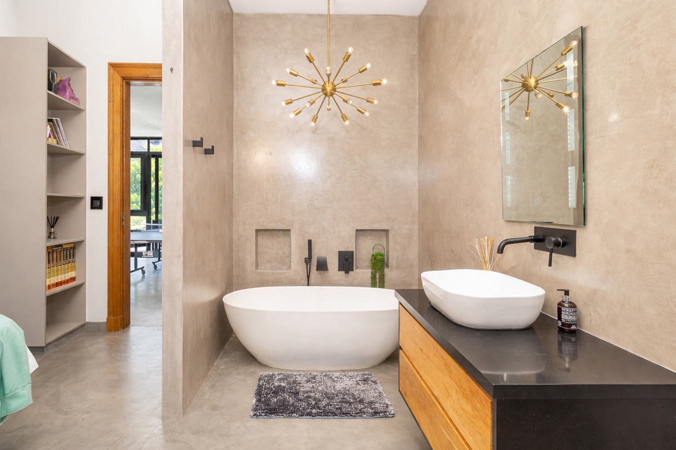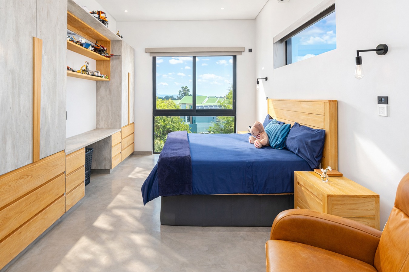 The luxurious main suite is a sanctuary of comfort, complete with a walk-in closet, elegant en-suite bathroom, and a private study area.