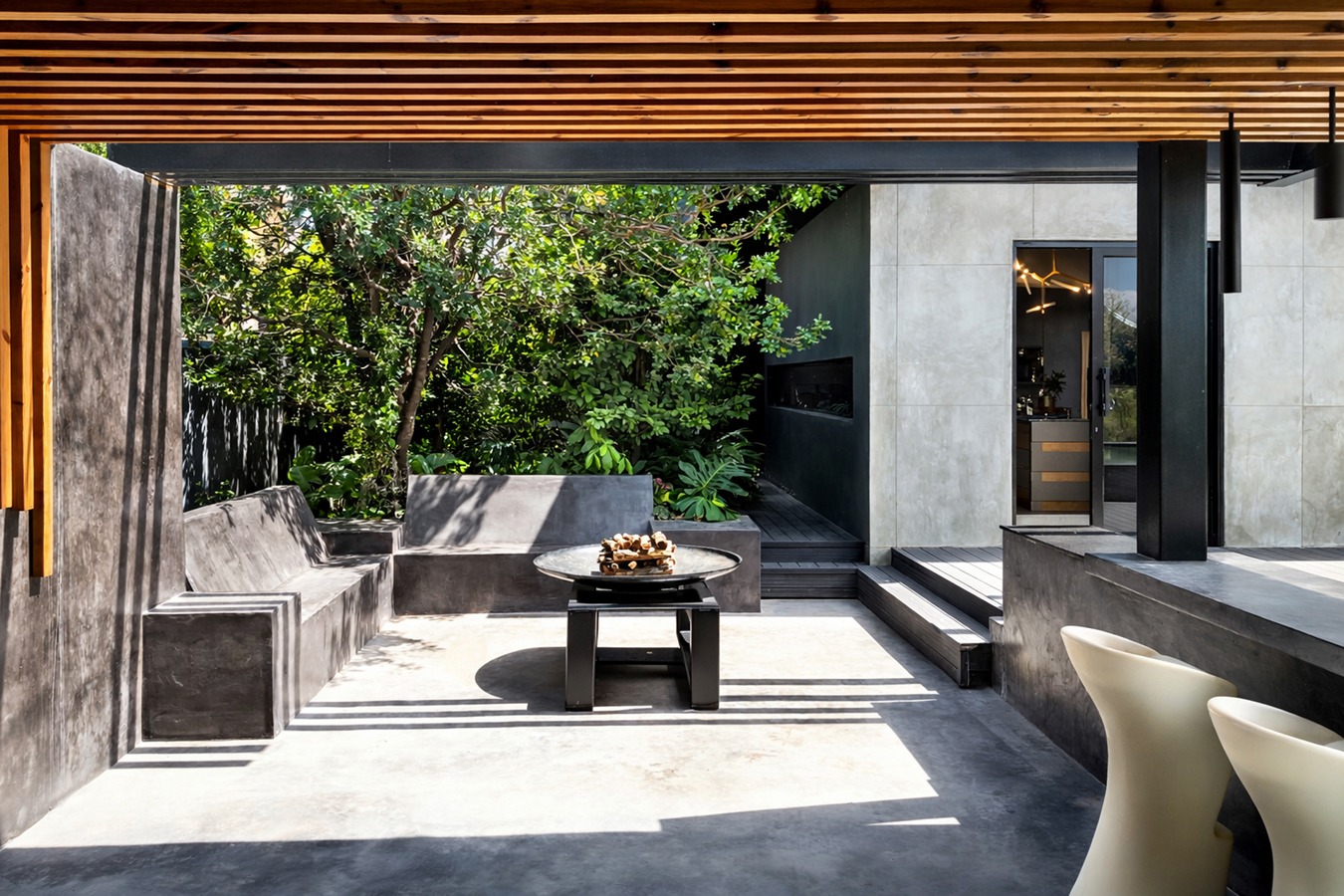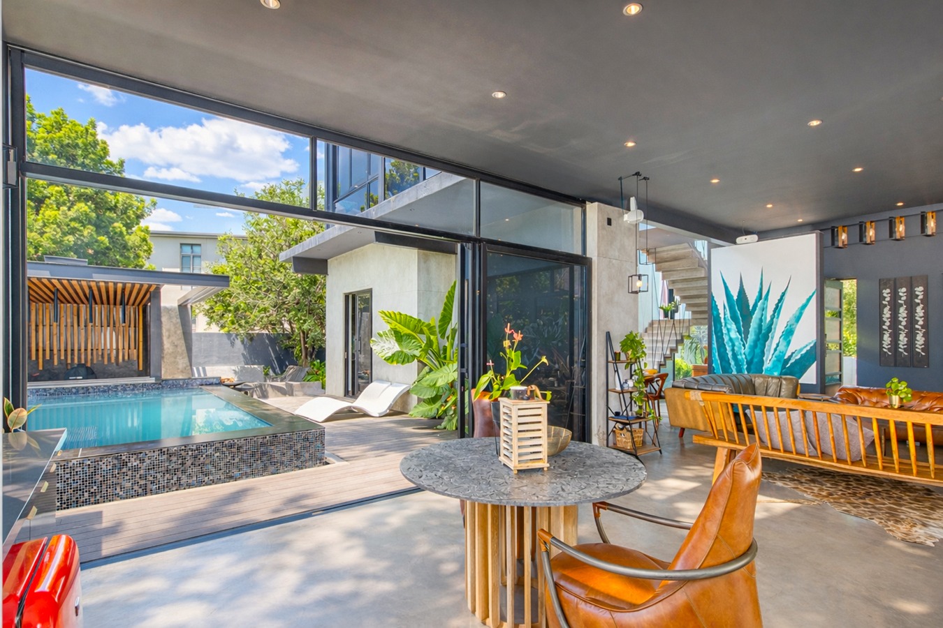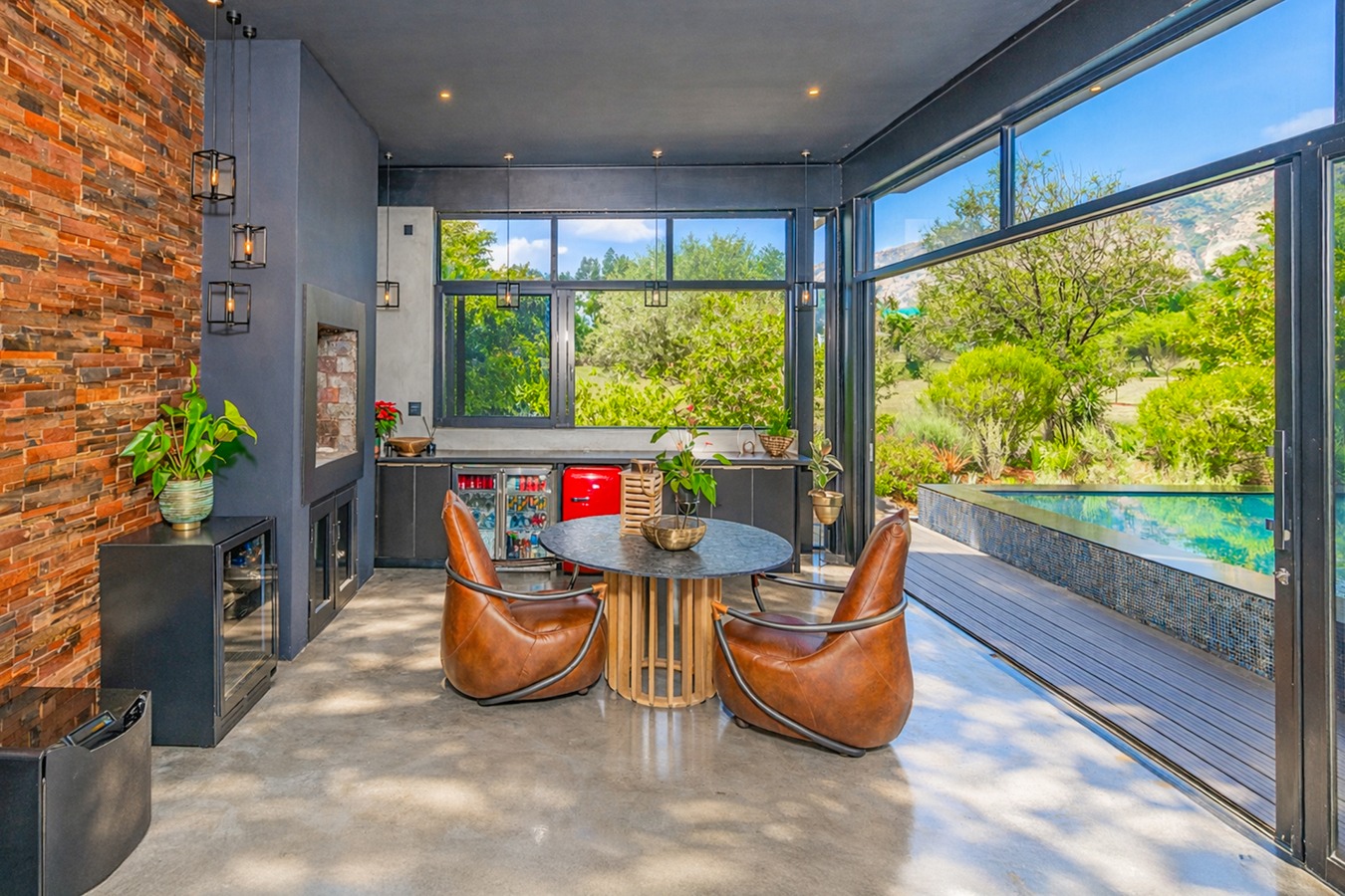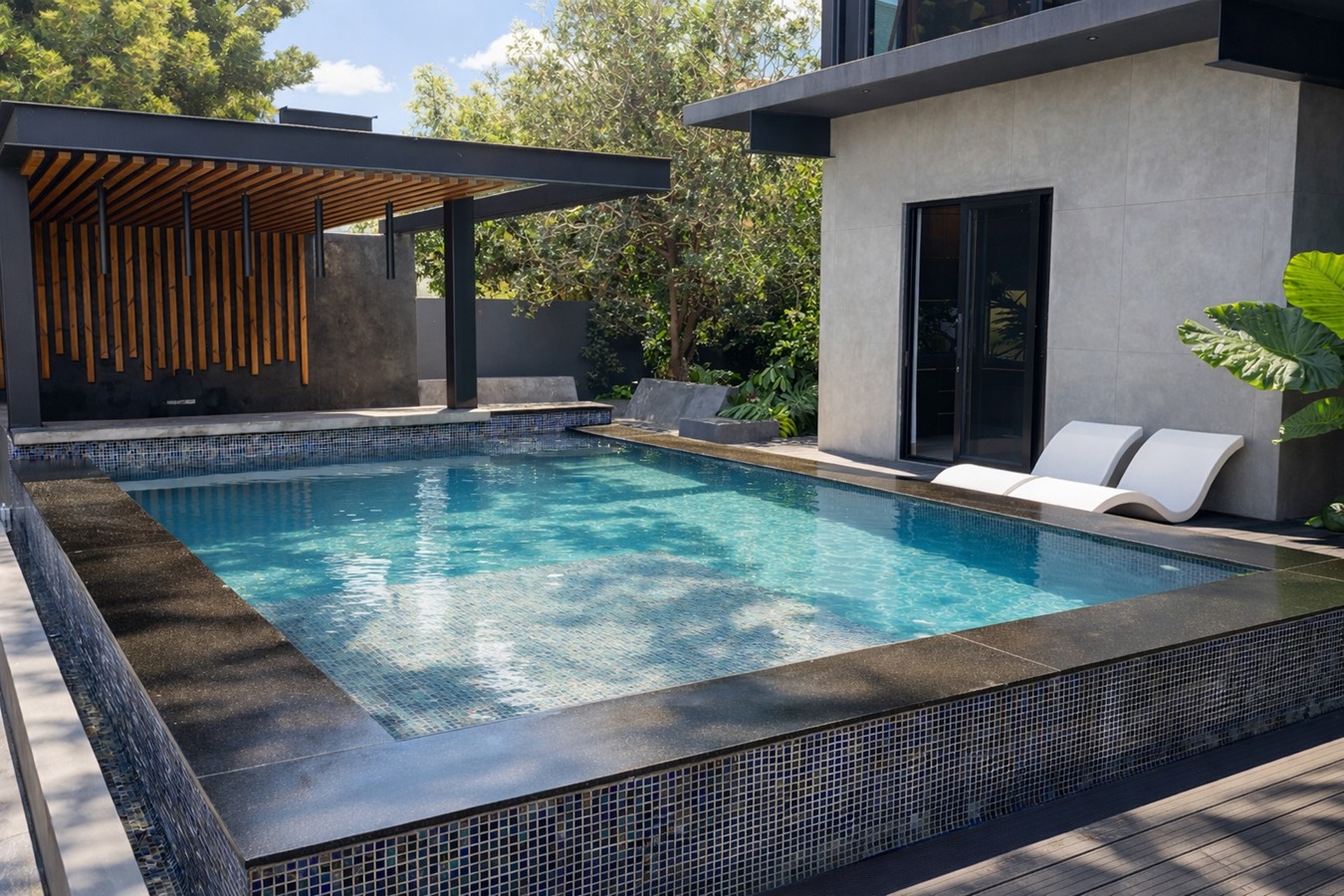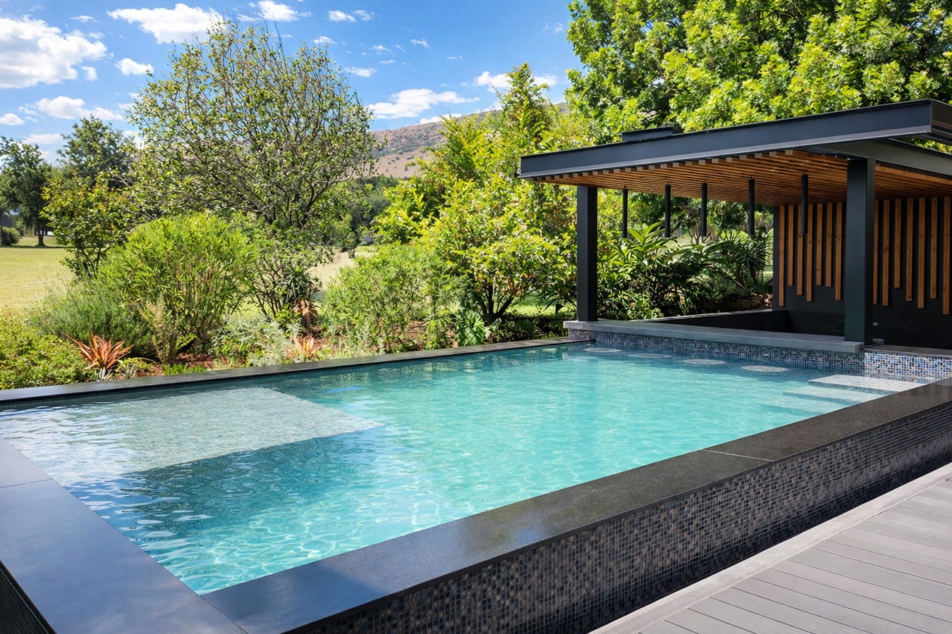 Sparkling pool with built-in bar stools for effortless hosting...