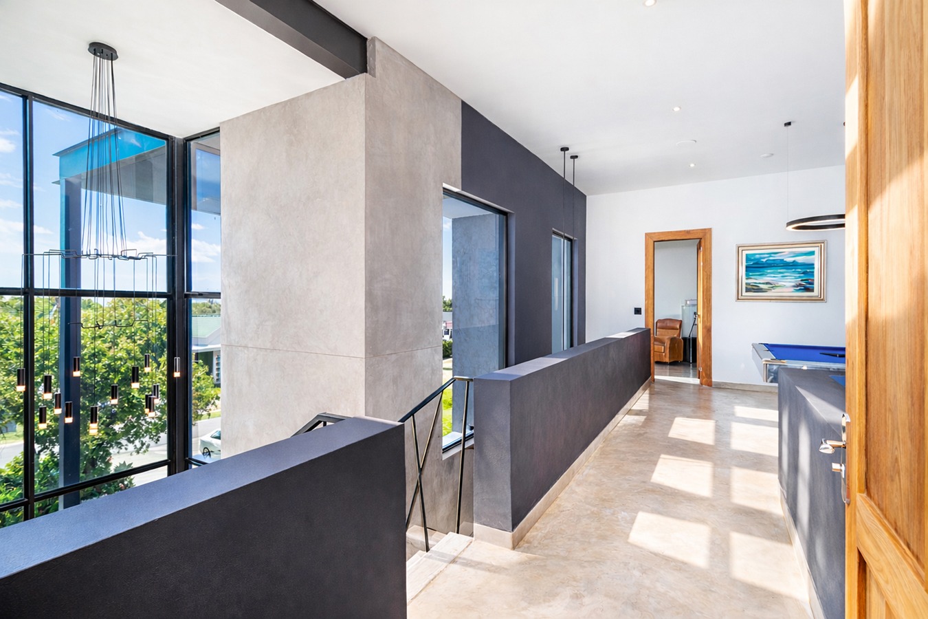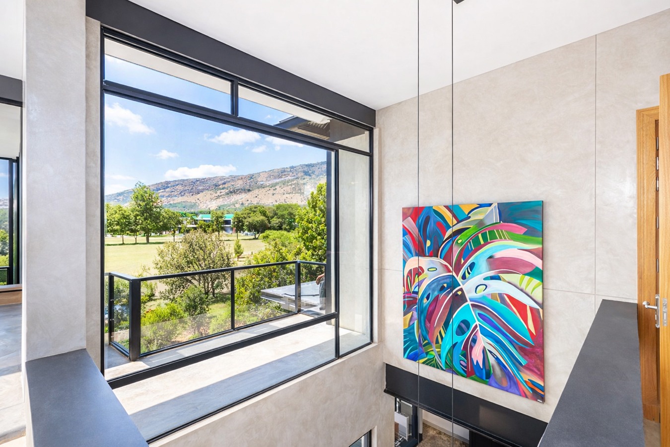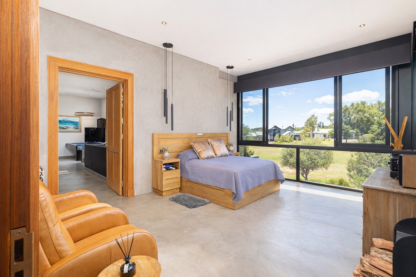Upstairs offers a spacious pyjama lounge and entertainment area that opens onto a large balcony with folding doors and breathtaking views. Two generously sized bedrooms each feature en-suite bathrooms.