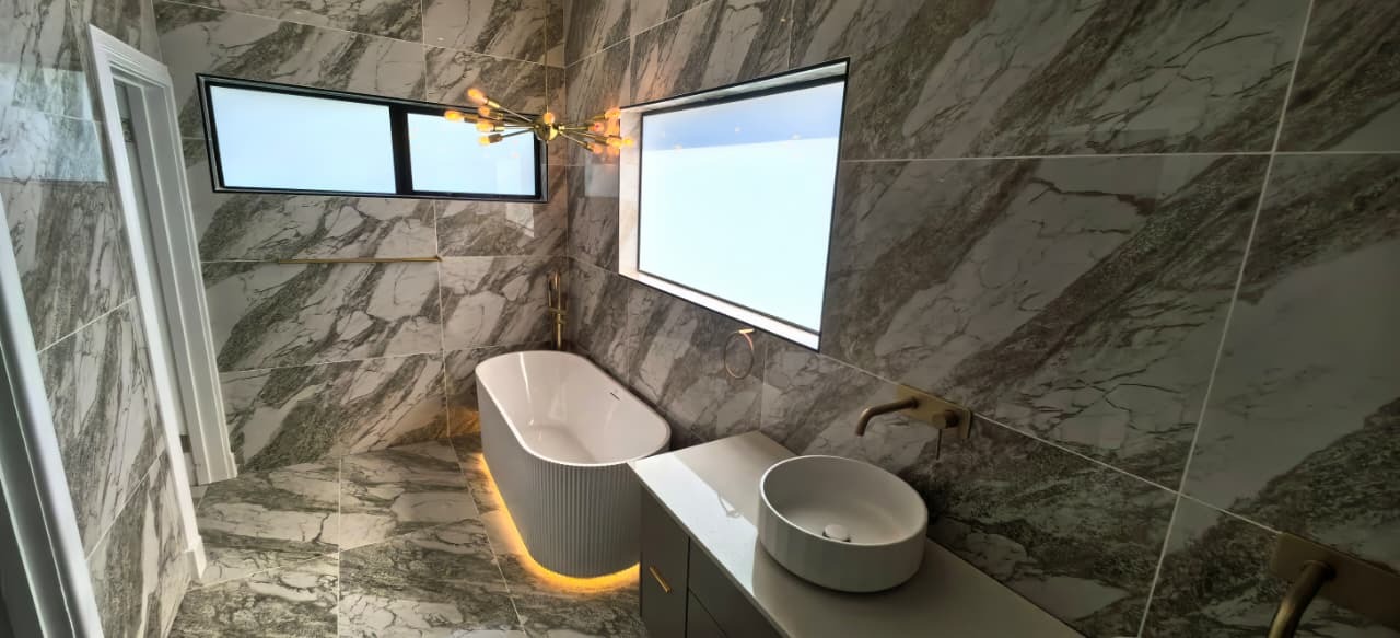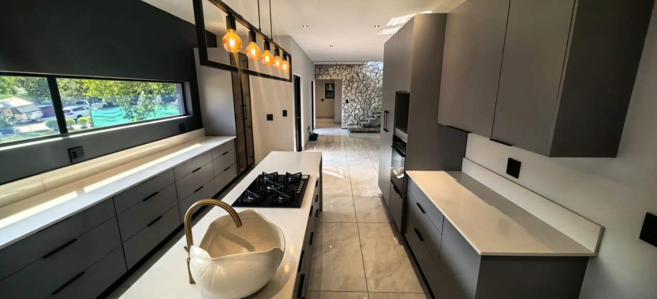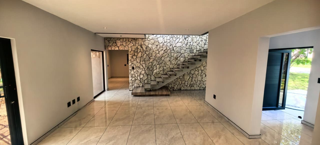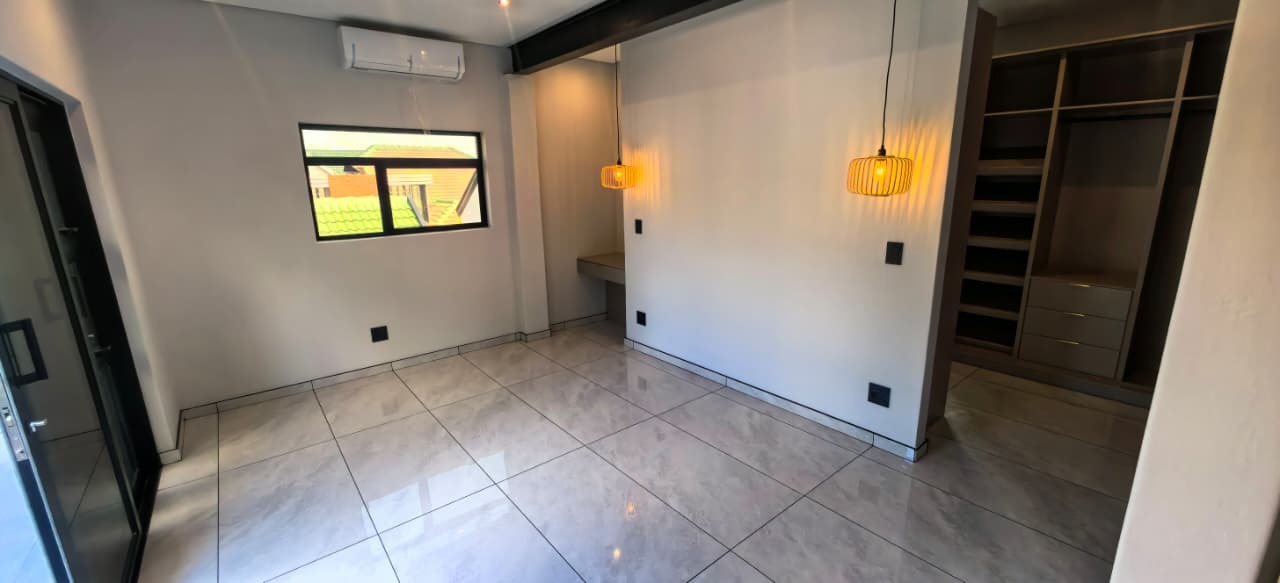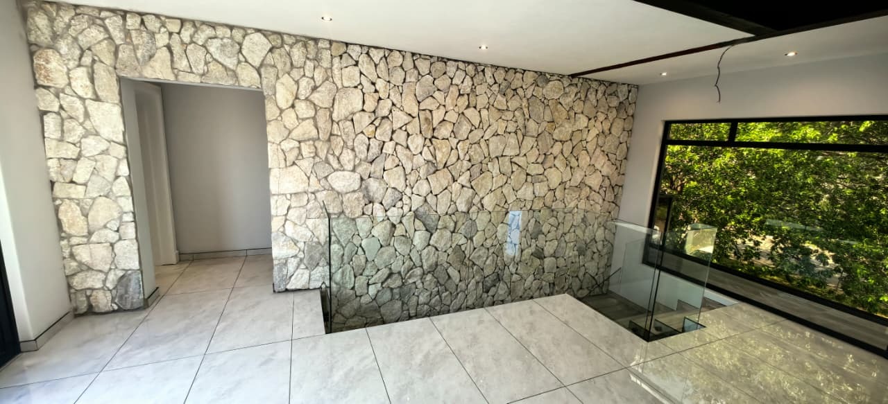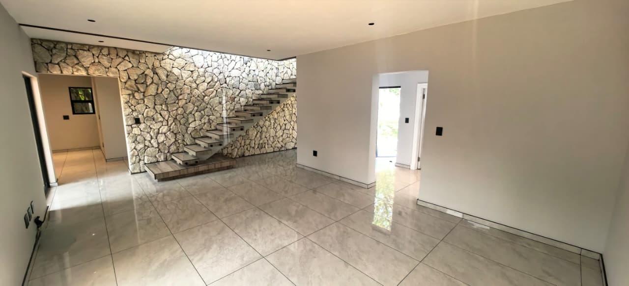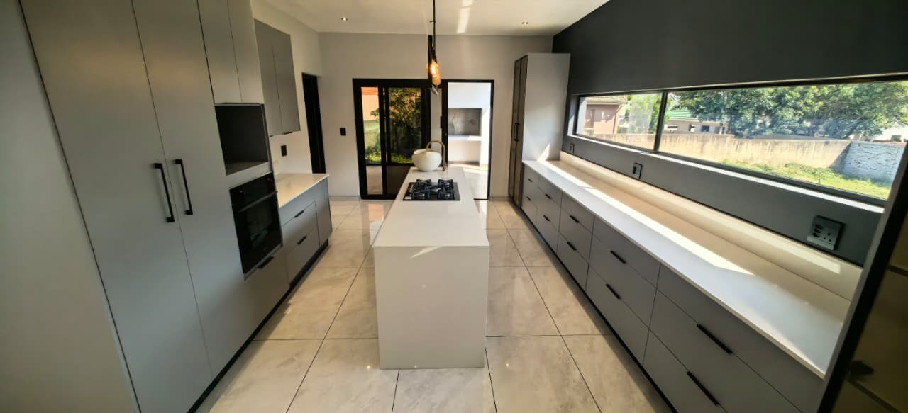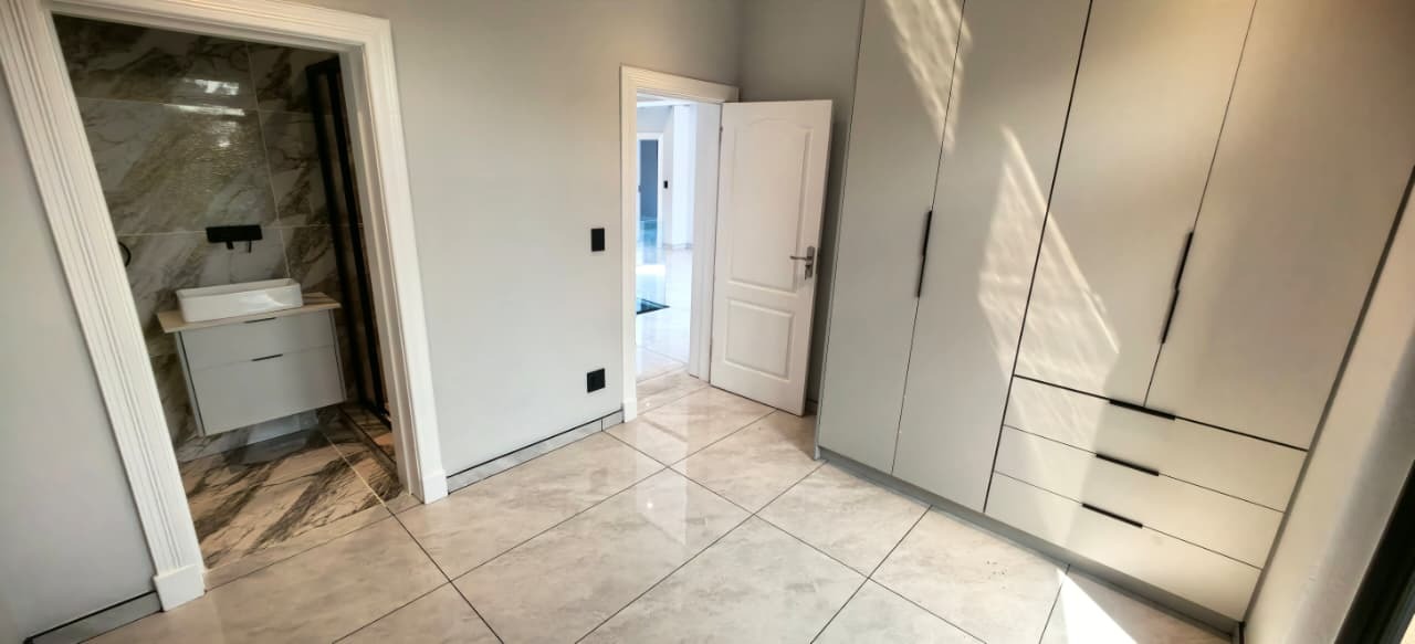 Downstairs, the home welcomes you with spacious open-plan living areas and an ultra-modern kitchen designed for both style and functionality. A guest bedroom with it's own en-suite bathroom, an additional guest bathroom and a beautiful entertainment area with a built-in braai alongside the sparkling pool making this the ideal setting for hosting friends and family.