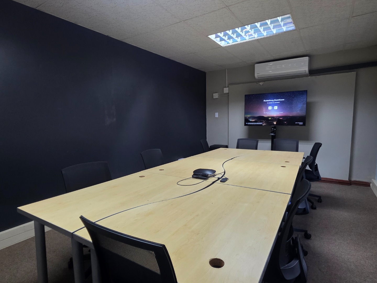 This exceptional commercial rental opportunity is ideally situated in the bustling Rustenburg Central, offering a versatile and functional environment. The property features a well-designed layout that includes multiple private office spaces, adaptable open-plan work areas, and dedicated meeting rooms. These spaces are complemented by a modern kitchenette, equipped with wood-grain cabinetry, granite-look countertops, and a double stainless steel sink, providing essential facilities for staff. Two well-maintained bathrooms further enhance the convenience of this commercial offering.